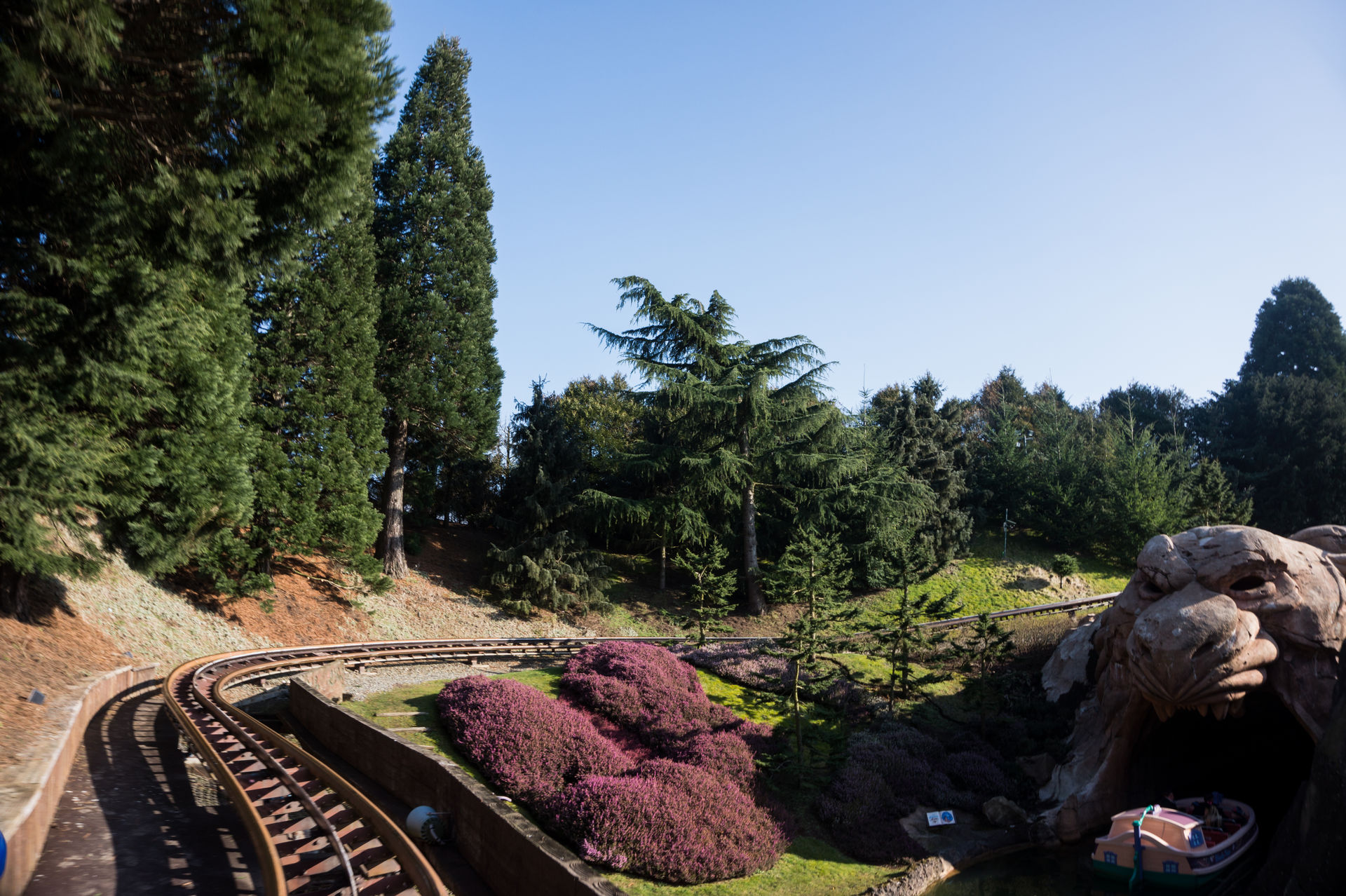 Etwas oberhalb dieser Attraktion verläuft die Strecke des kleinen Zirkuszuges Casey Jr., bekannt aus den Disneyfilm Dumbo, welcher hier im Gegensatz zur Originalversion aus Anaheim als Achterbahn fungiert. Während Casey am Anfang noch „I think I can“ schnauft zeigt er doch relativ schnell seine wahre Stärke und gibt über den, flach am Terrain anliegenden, Streckenparcours ordentlich Gas. Gerade im hinteren Teil des Zuges überrascht einen die unscheinbare Streckenführung doch sehr, vor allem wenn man sie rückwärts, in der letzten Reihe sitzend, absolviert.