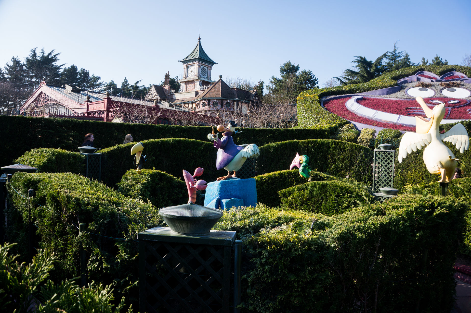 Nicht ganz so psychodelisch wie im Pleasure Beach Blackpool zeigt sich der Einfluss von Alice im Wunderland in Paris. Mit den extrem schwergängigen Teetassen Mad Hatters Tea Cups und dem schicken Labyrinth hat man es auch gar nicht so leicht gegen einen Drogentrip par excellence und dem Kuckuckswalzer.