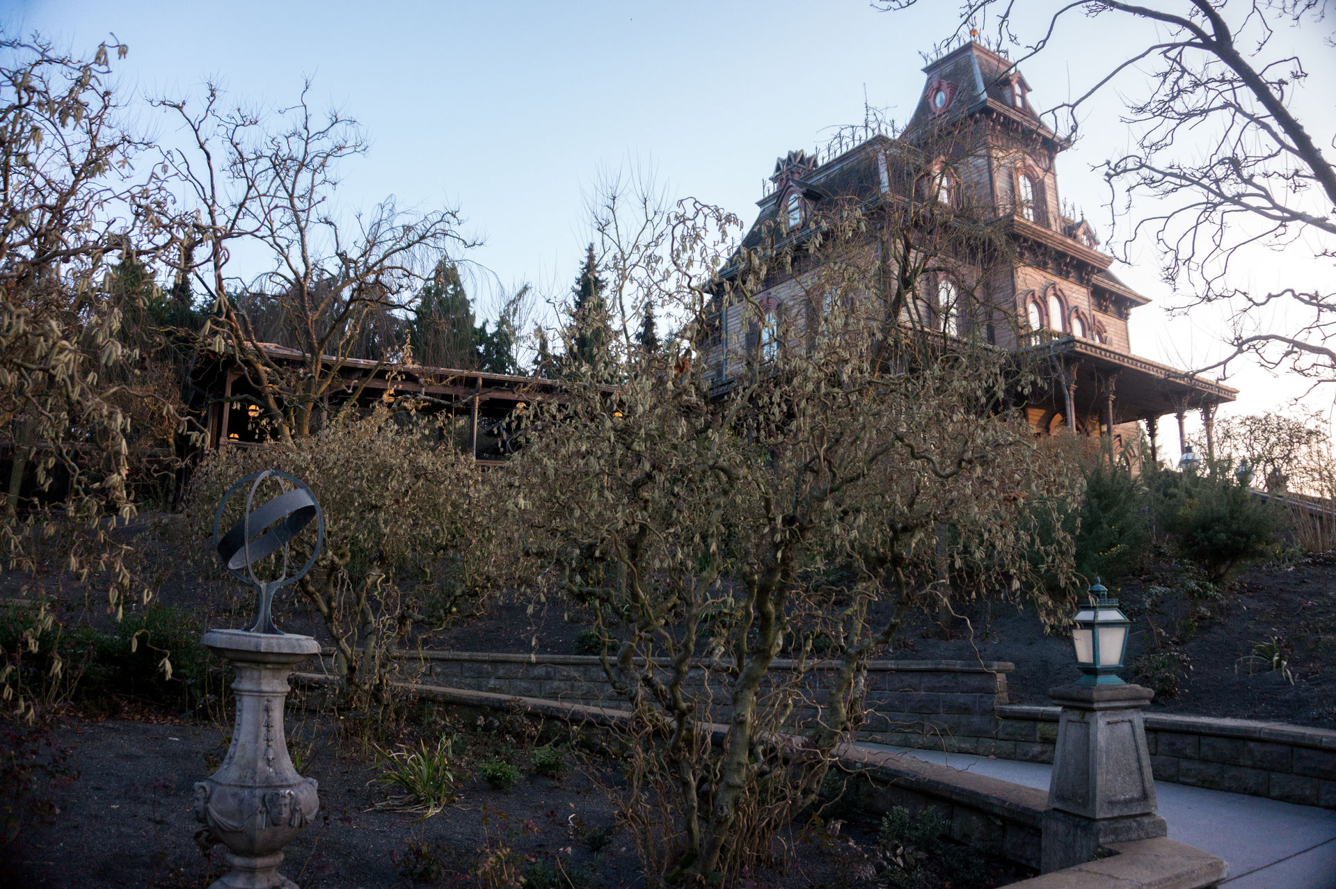 Etwas leichter hat es hingegen das alte verlassene Herrenhaus am Rand des Frontierlands, denn seinen morbiden Charakter wird es so schnell nicht verlieren. Begrüßt von äußerst eleganten Damen geht es eine Etage in das Reich der Toten. In den Schicksalswagen Platz genommen geht es, untermalt von schaurig schöner Musik, auf Erkundungsreise durch das verfluchte Anwesen und seiner Geschichte.