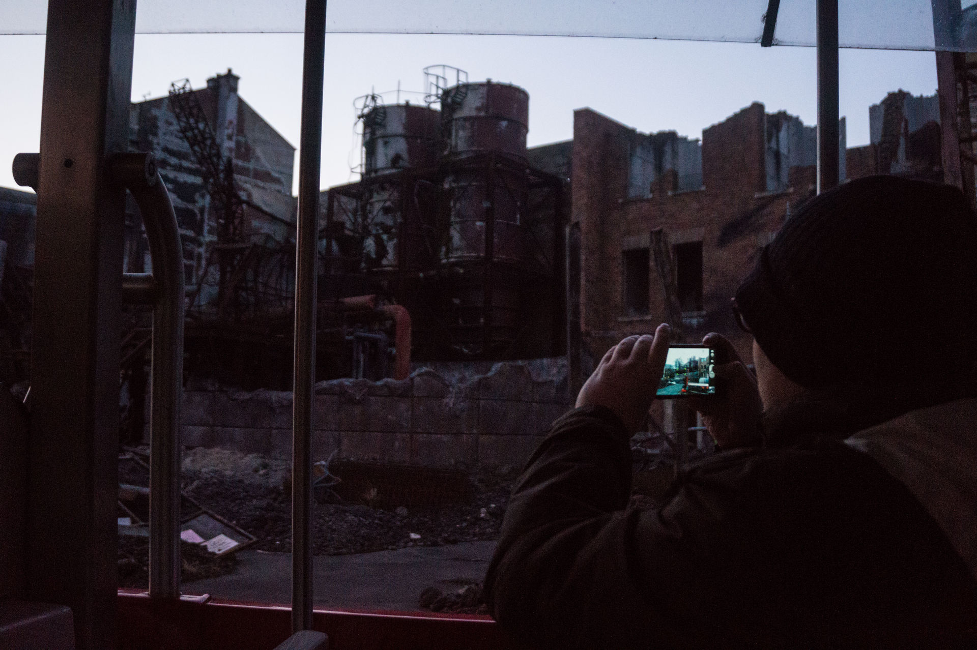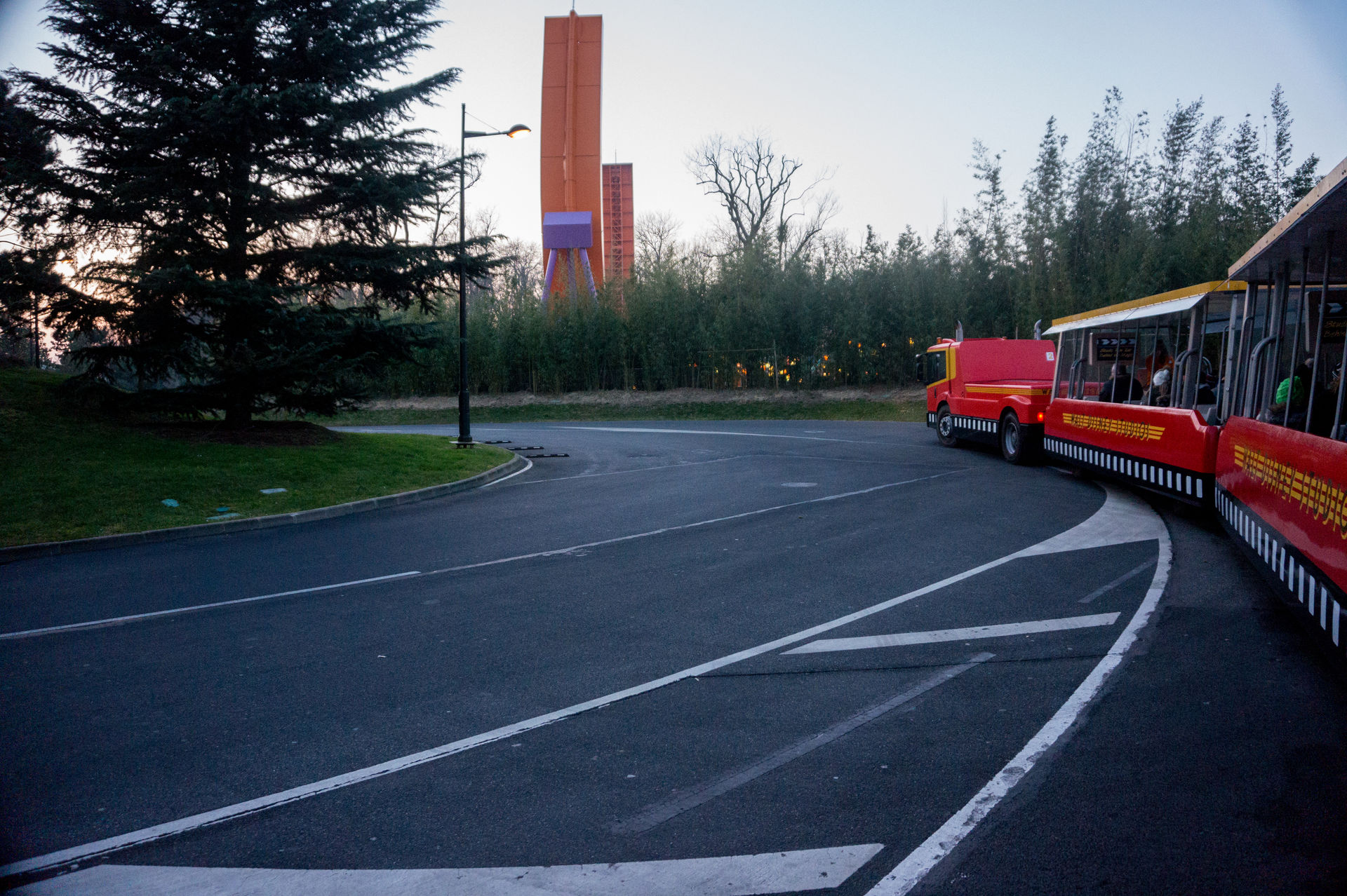 Aus der Ferne betrachtet bietet die Tour ein weiteres Gimmick, denn die Kulisse inklusive Hollywoodschriftzug sieht beeindruckend groß aus, tatsächlich besteht das Gebilde aus mehreren kleineren Einzelfragmenten, die durch die räumliche Trennung zueinander erst die dazu benötigte Tiefe hervorrufen.