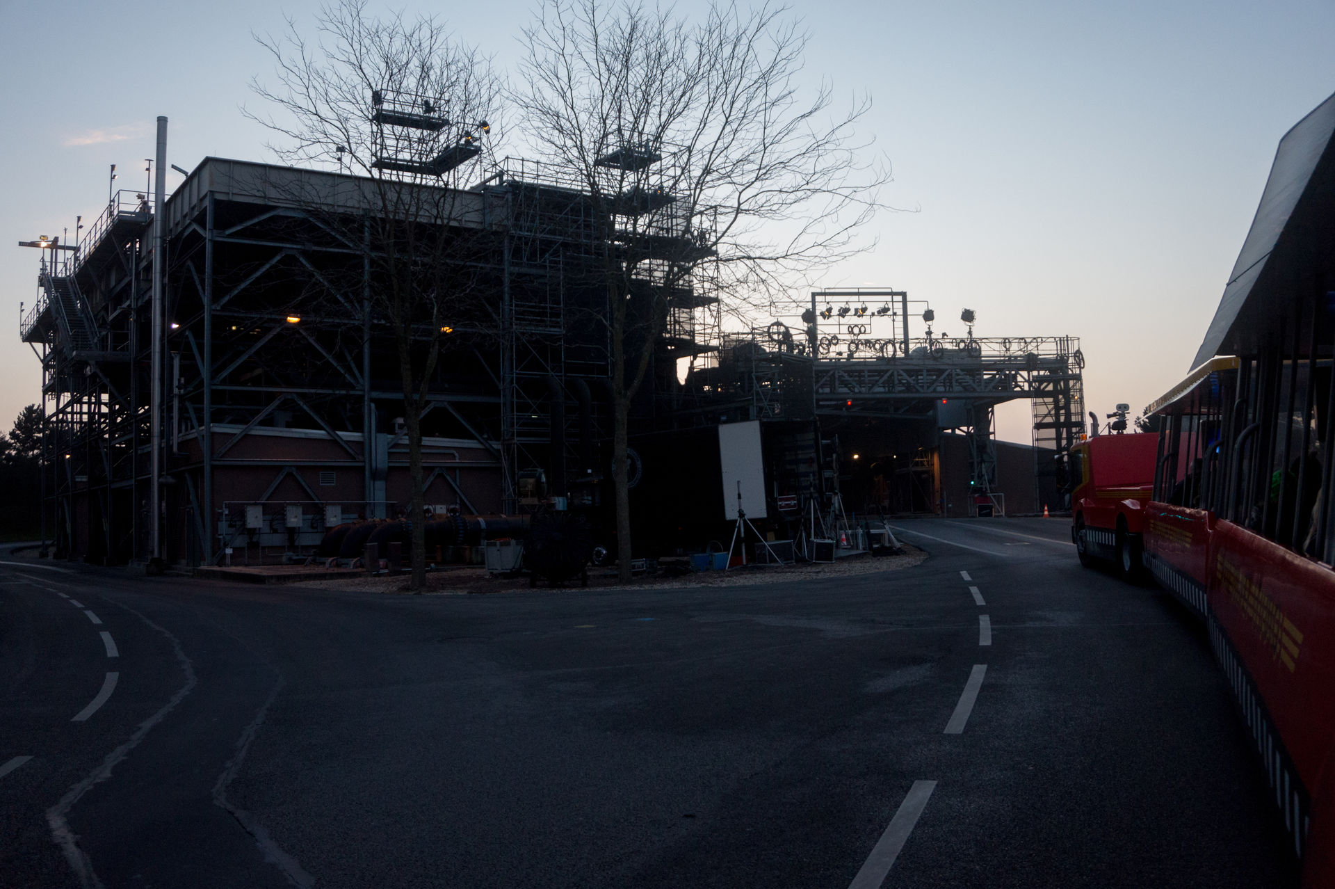 Auch wenn die Studio Tram Tour nebenan keine wirkliche Show ist, so ist das was während des ersten Zwischenstopps passiert wirklich sehenswert und zugleich interessant. Bereits auf der Einfahrt in die Katastrophenschlucht fallen einem die riesigen Pumpen auf, welche die benötigte Wassermenge befördern. Was nun folgt ist in erster Linie sehr imposant, zumindest aus technischer Sicht, denn die Wagen werden über bewegliche Bodenplatten ein wenig hin und her geschüttelt, es bricht verdammt viel Feuer aus, welches dann mit deutlich mehr Wasser gelöscht wird. Ein sicherlich nicht ganz günstiges Vergnügen, welches leider als einziges Highlight der Tour zu nennen ist, denn danach geht es den ganzen Weg vorbei an den Requisiten eher unbekannter Filme zurück. Auf dem Weg zur anderen Wende fährt man an dem Set von Herrschaft des Feuers entlang und wird nochmals mit ein wenig Feuer unterhalten, wäre der Film erfolgreich gewesen, wäre die Szene sicherlich deutlich eindrucksvoller, da bekannter. Es folgt der Rückweg zum Bahnhof.