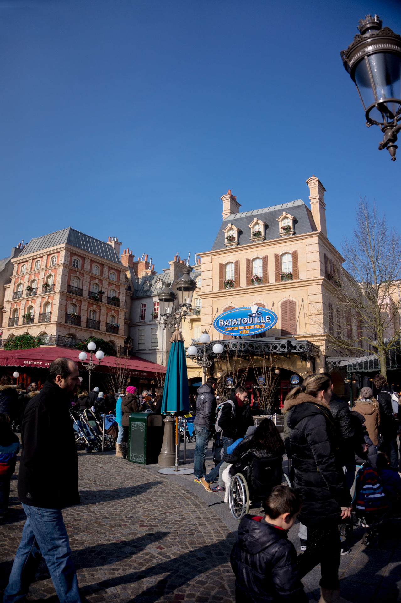 Während das Toy Story Playland nicht sonderlich durch seine Fahrgeschäfte auffallen kann, so besticht der seit dem letzten Jahr vorhandene Bereich umso mehr durch seine Attraktion, denn wir befinden uns in Paris, der Stadt der Liebe und vor allem der Ratten. Auch wenn Paris wirklich nicht die sauberste Stadt ist geht es hier hauptsächlich um die Ratte Rémy und seiner Familie, bekannt aus dem Pixar Film Ratatouille. Dieser klingt zwar nach Ratte und Pfui, ist aber ein mehr als gelungener Animationsfilm und hat mit Ratatouille L’Aventure Totalement Toquée de Remy eine durchaus würdige Themenfahrt spendiert bekommen.