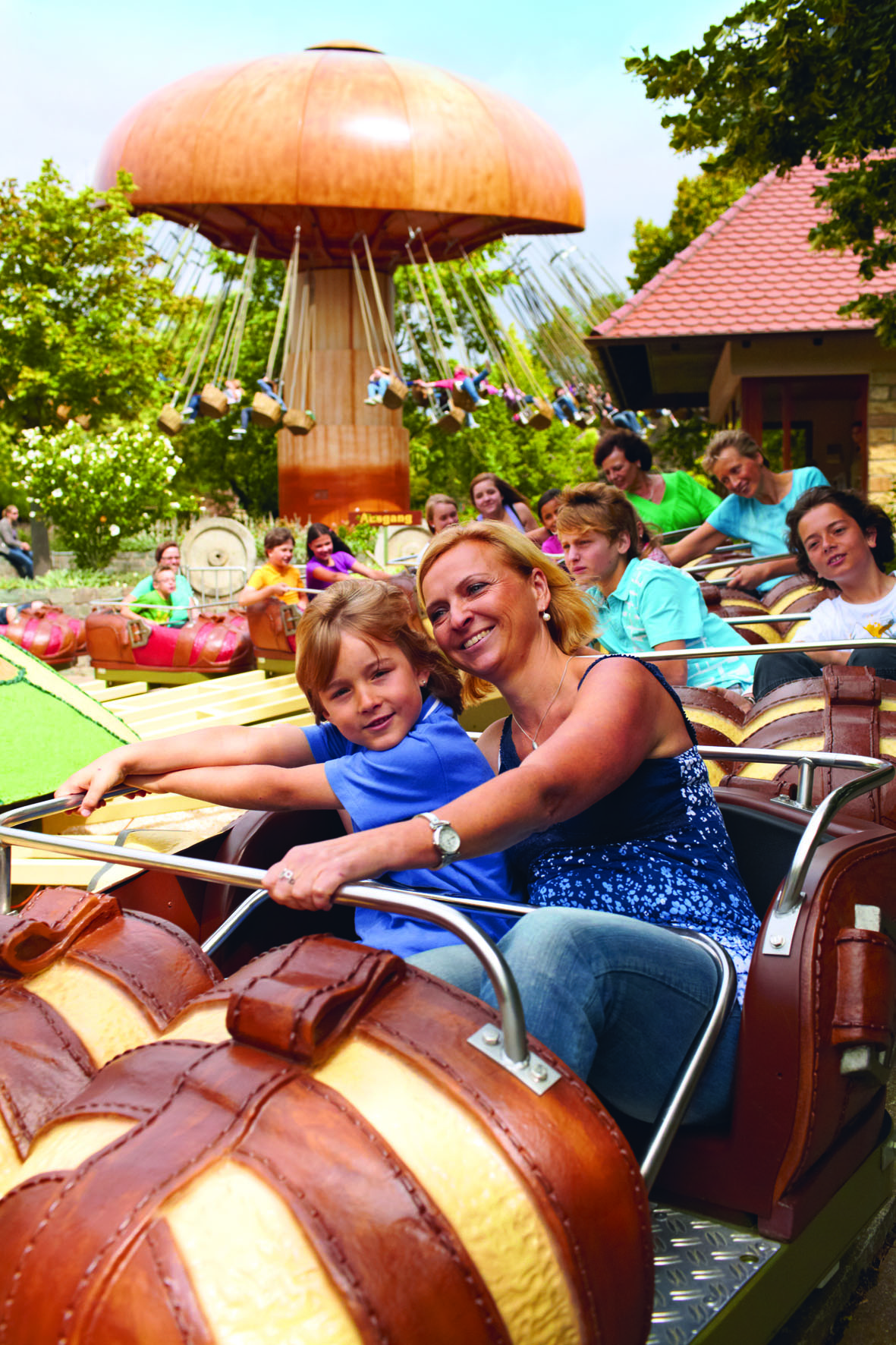 In Tripsdrill können die Besucher in zwei völlig unterschiedliche Welten eintauchen: den Erlebnispark mit über 100 originellen Attraktionen und das Wildparadies mit rund 40 verschiedenen Tierarten. Wer in die neue Katapult-Achterbahn „Karacho“ einsteigt, wird für seinen Mut belohnt: Der Start von 0 auf 100 km/h in nur 1,6 Sekunden, Dunkelfahrten und vier unterschiedliche Überschläge sorgen für Nervenkitzel pur! Ein gigantisches Erlebnis ist auch die Fahrt durch die gewaltige Sägemühle der Holzachterbahn „Mammut“. Der Erlebnispark Tripsdrill zeichnet sich durch einen abwechslungsreichen Angebotsmix für alle Alters- und Zielgruppen aus: rasante Achterbahnen, spritzige Wasserfahrten, gemütliche Attraktionen und speziell für Kinder gestaltete Spiellandschaften wie beispielsweise das neue Gaudi-Viertel mit Kinderfreifallturm. Zudem lädt der liebevoll gestaltete Park am Fuße des rebenbewachsenen Michaelsbergs zum Schlendern, Träumen und Verweilen ein.