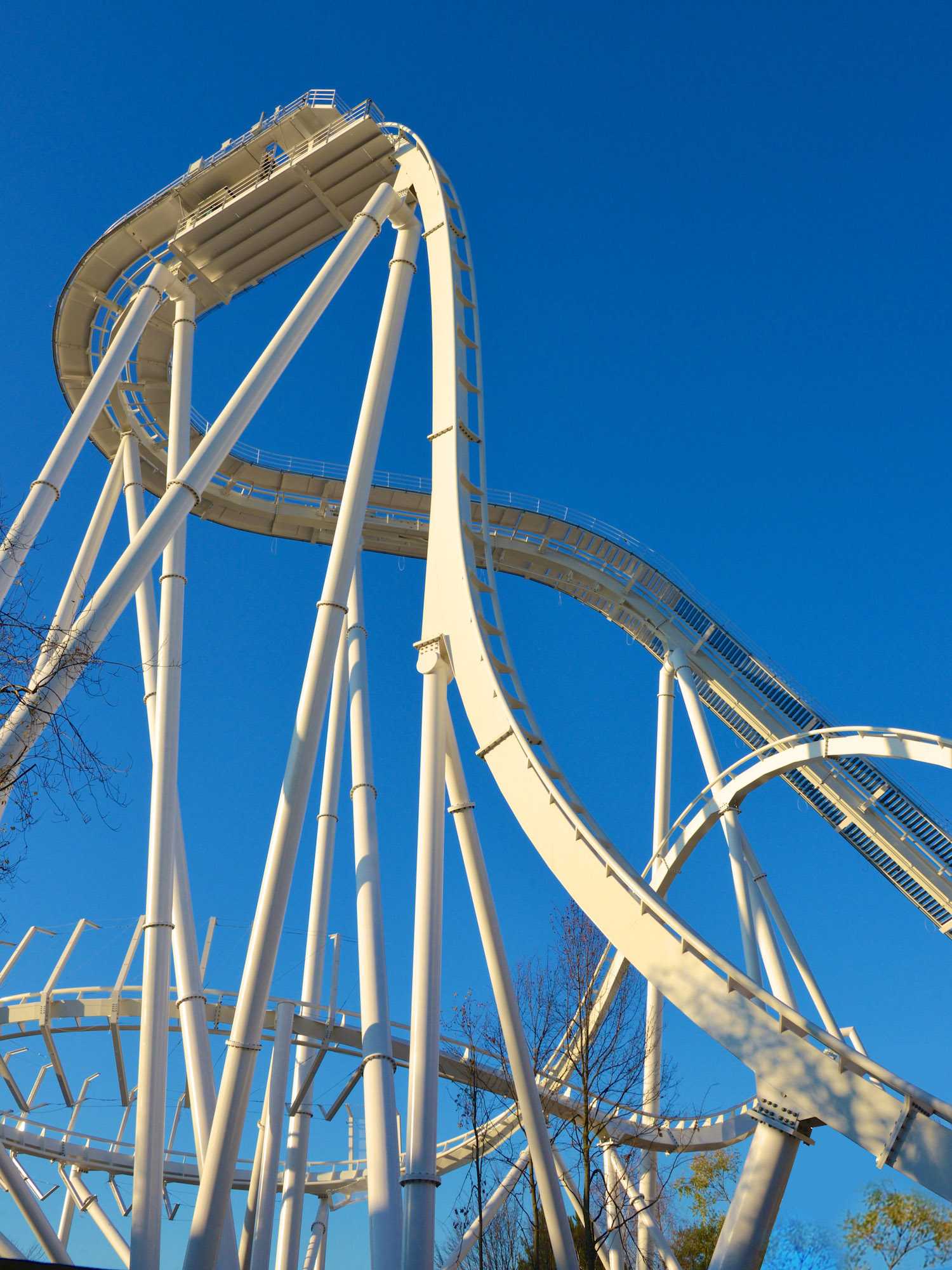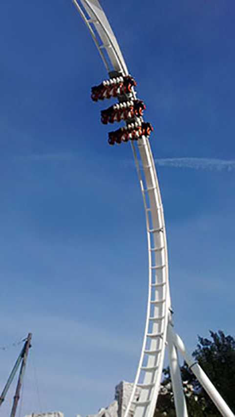 die neue Achterbahn mit vertikaler Talfahrt erster Dive Coaster in Italien und zugleich der längste in Europa