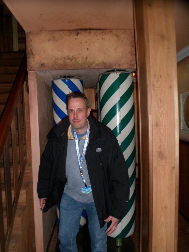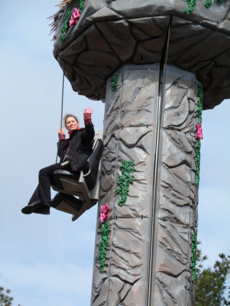 Aber der Park hatte für mich ja noch mehr zu bieten, weil ich den neuen Themenbereich noch nicht kannte und auch den Wirbelwind noch nicht gefahren bin. Snoop wollte aber erst mal die Schiffschaukel fahren und ich glaube er war sich nicht bewusst, dass kaum ein Onrider in dieses Ding locker reinpasst. In normaler Sitzposition waren meine Knie nicht in dem zur Verfügung gestellten Platz zwischen Sitz und Bügel unterzubringen und ich honkte breitbeinig auf der Bank rum, während Sonic neben mir das Glück hatte seine Beine komplett neben dem Gestänge unterbringen zu können. Die Fahrt war dennoch amüsant und ich schaffte es auch auszusteigen ohne irgendwo gegenzustoßen. Auf dem Weg zum Count sah ich dann diese kleinen Hoppelpferdchen und hörte mich in diesem Moment schon selbst quietschen, dass ich damit fahren muss. Also ab auf Pferdchen und schwupps wieder ein dickes Grinsen im Gesicht.