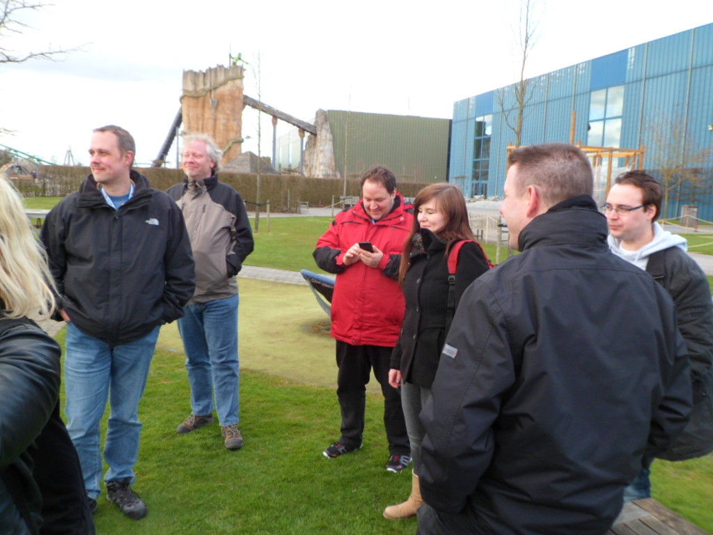 Am Park angekommen wartete der Rest der Meute schon am Eingang und nach der Begrüßung wurde sich kurz zu Gutscheingruppen zusammengeschlossen um den Eintrittspreis zu reduzieren.