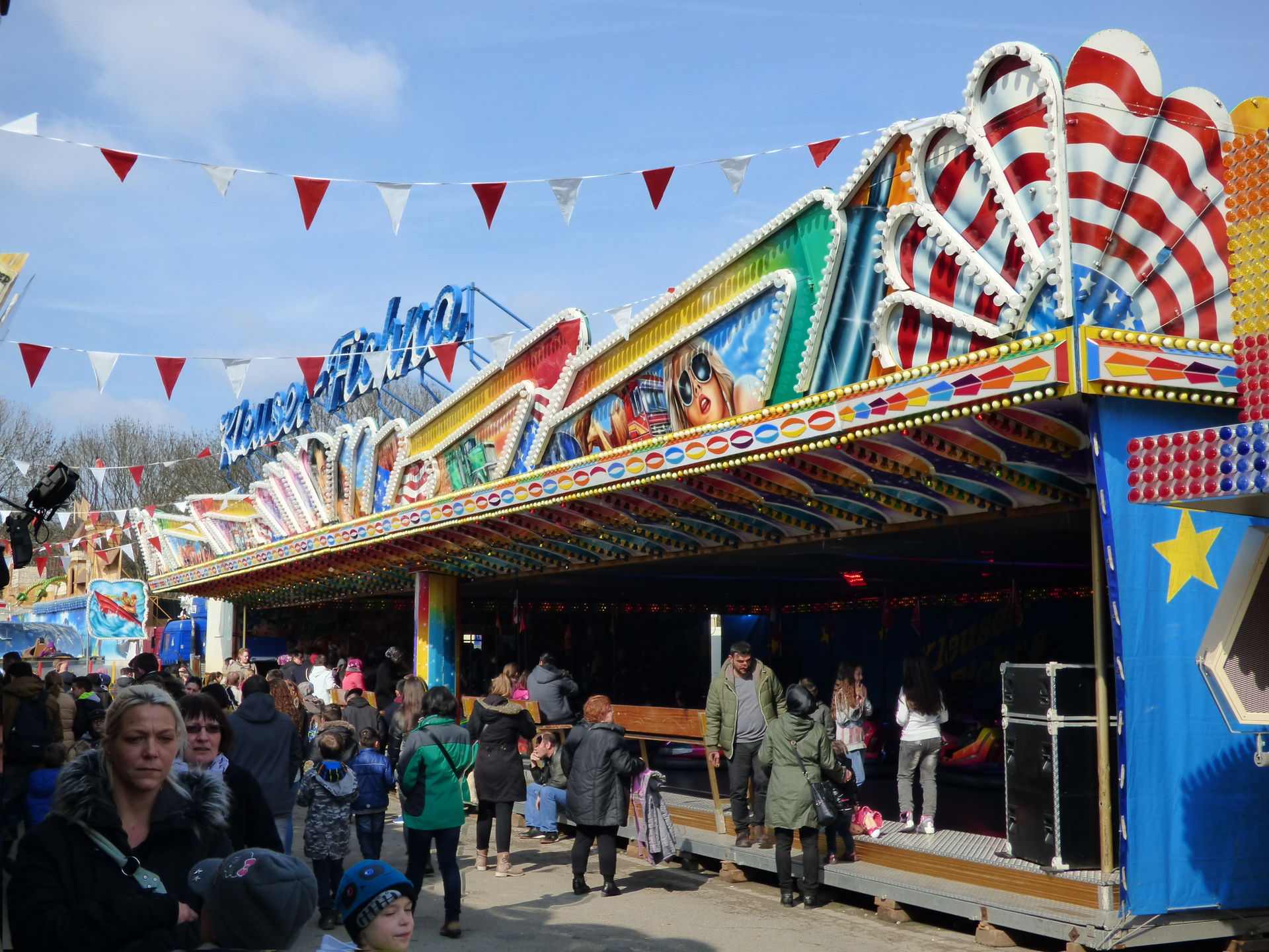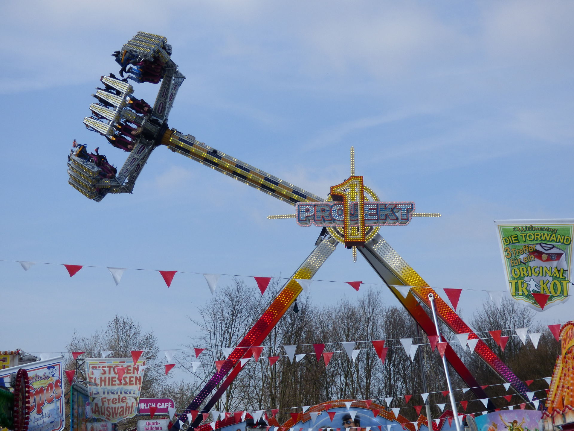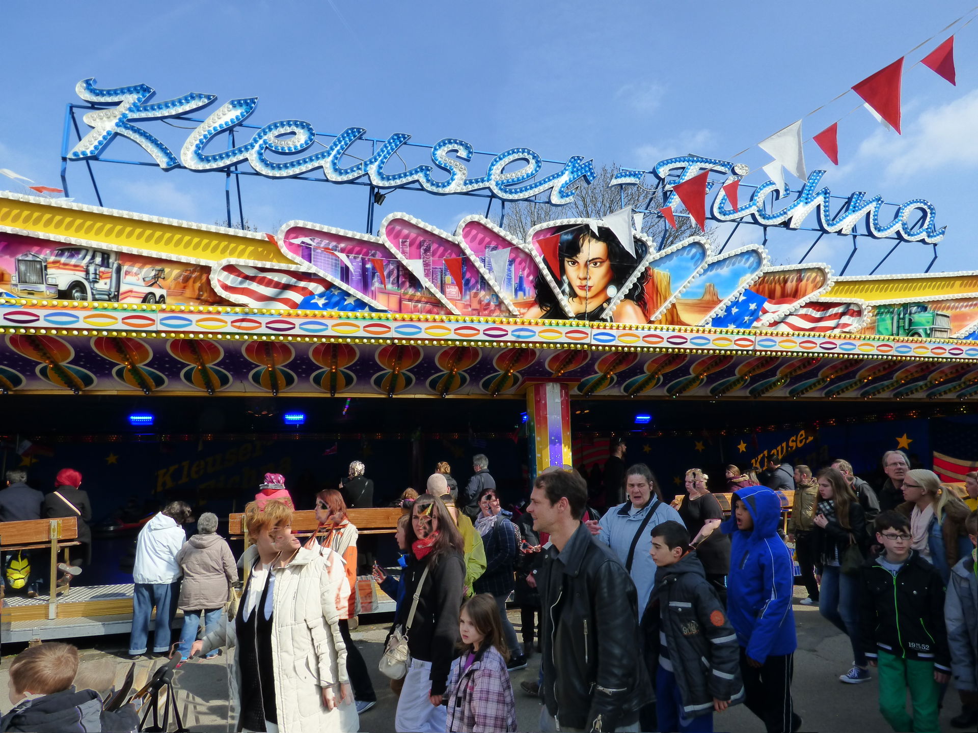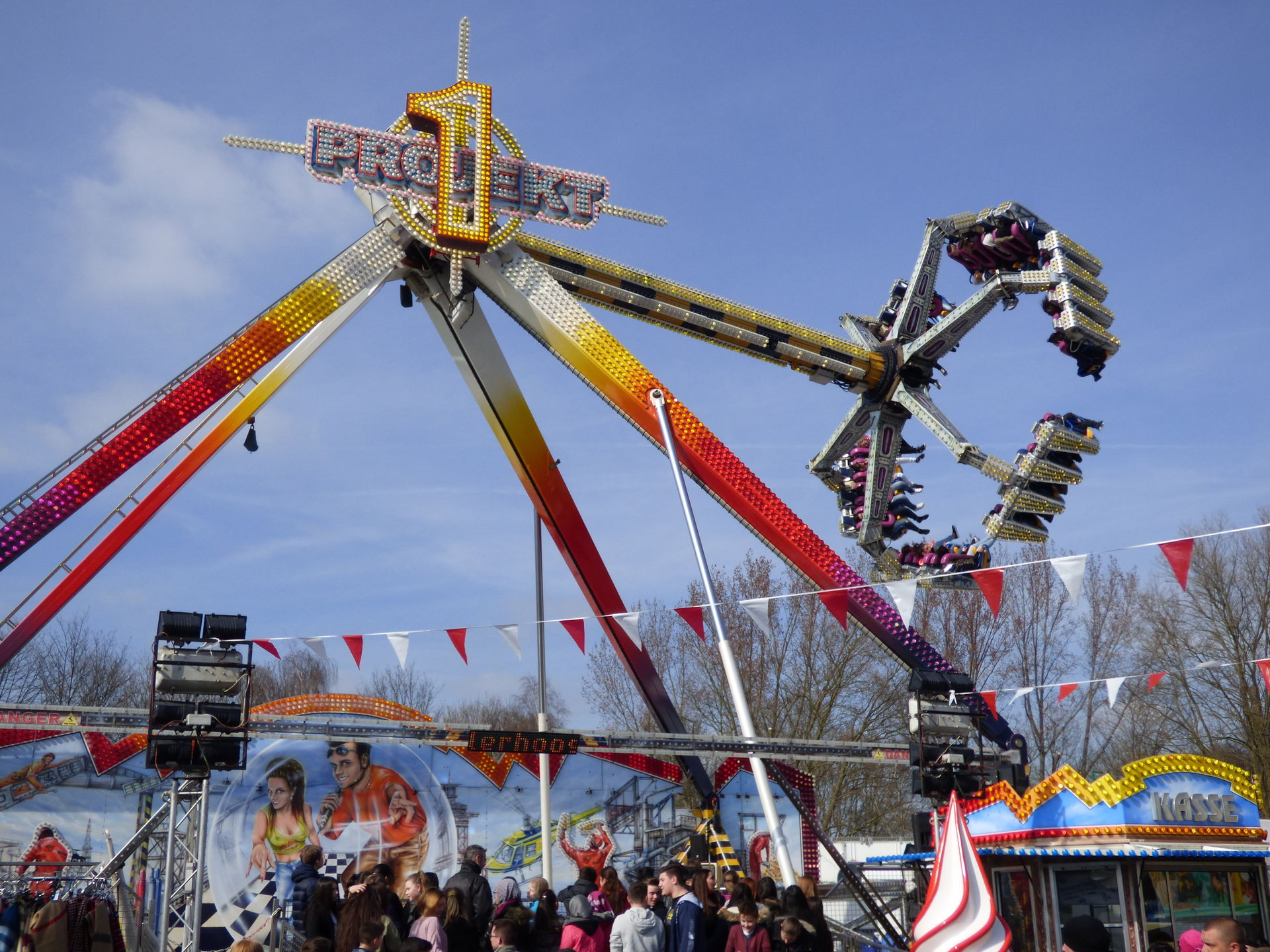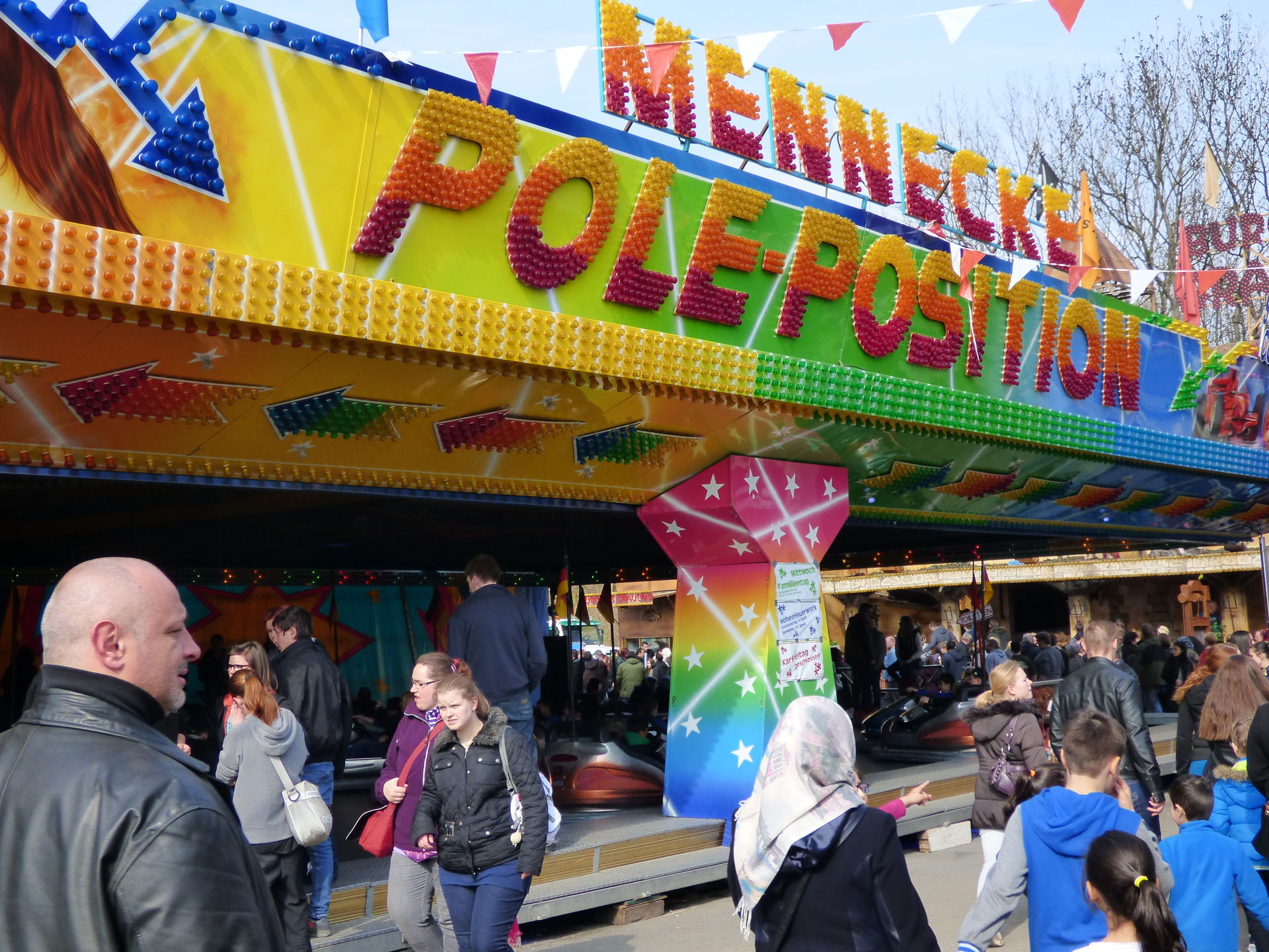 Projekt 1 einen Zwischenstopp auf der Osterkirmes. Letzterer war im Laufe des Tages völlig überlaufen und demenstprechend kurz war auch die Fahrtzeit. Hinzu staute sich vor dem Geschäft der Besucherstrom ziemlich heftig weil hier wartenden Fahrgäste an der Kasser, Schaulustige und andere Besucher nicht mehr aneinander vorbei kamen. Faszinierend.
