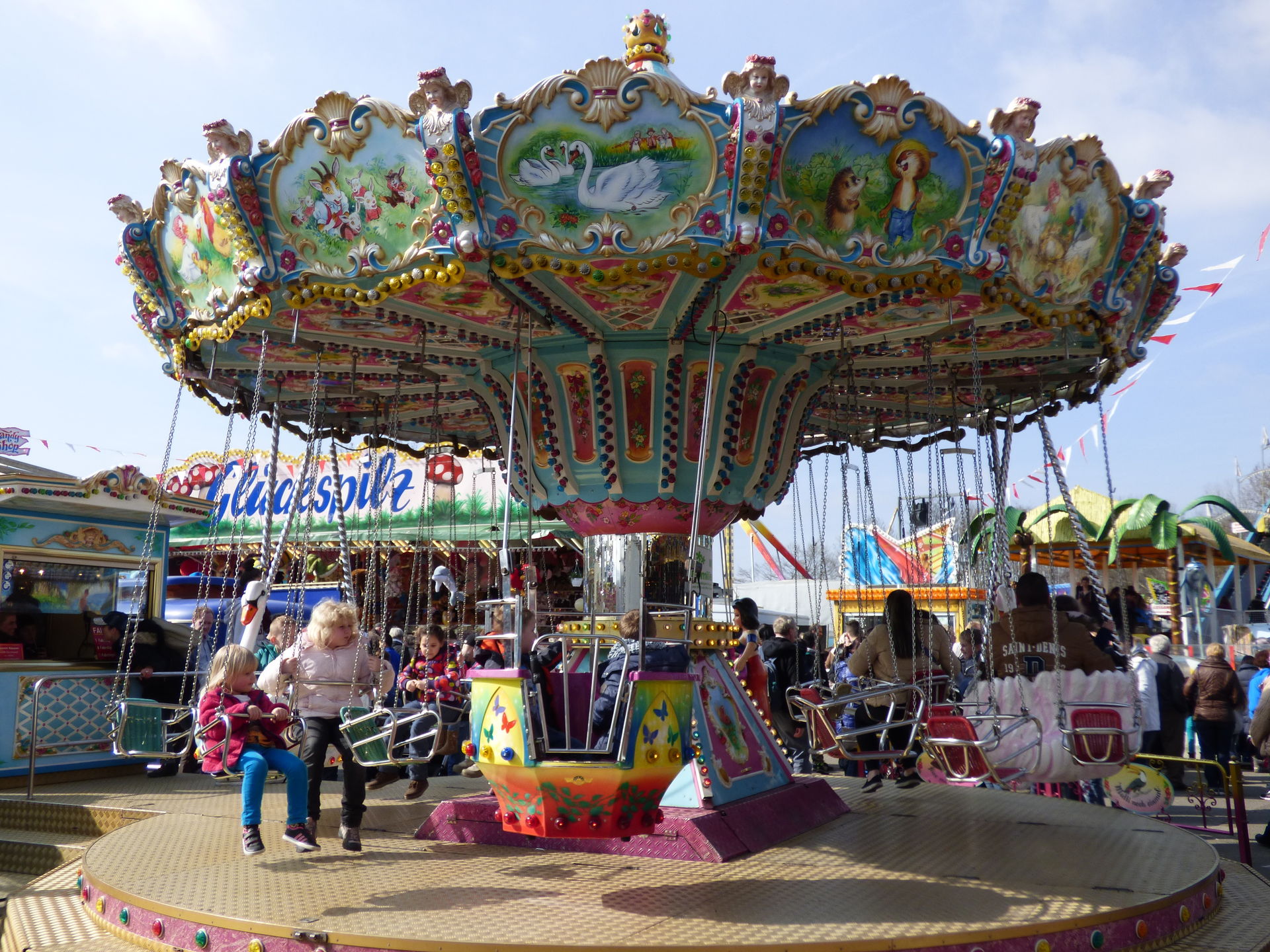Columbia Rad, welches wie alle anderen Fahrgeschäft auch mit stark ermäßigten Preisen die Besucher nahezu magisch anzog. Für 2,50 Euro konnte man hier in die Lüfte entschweben.