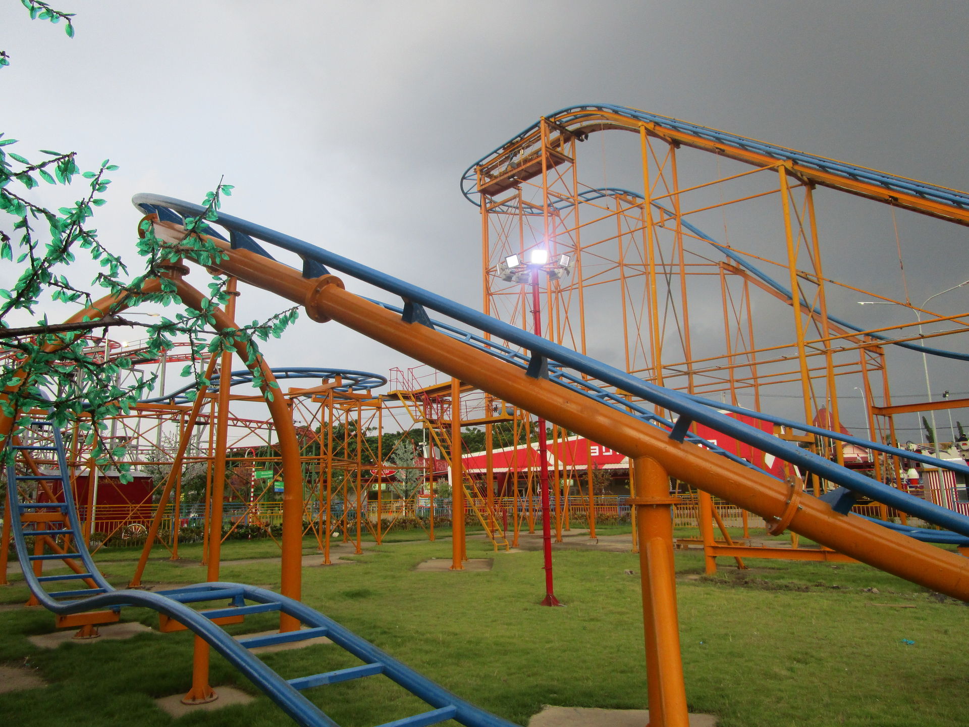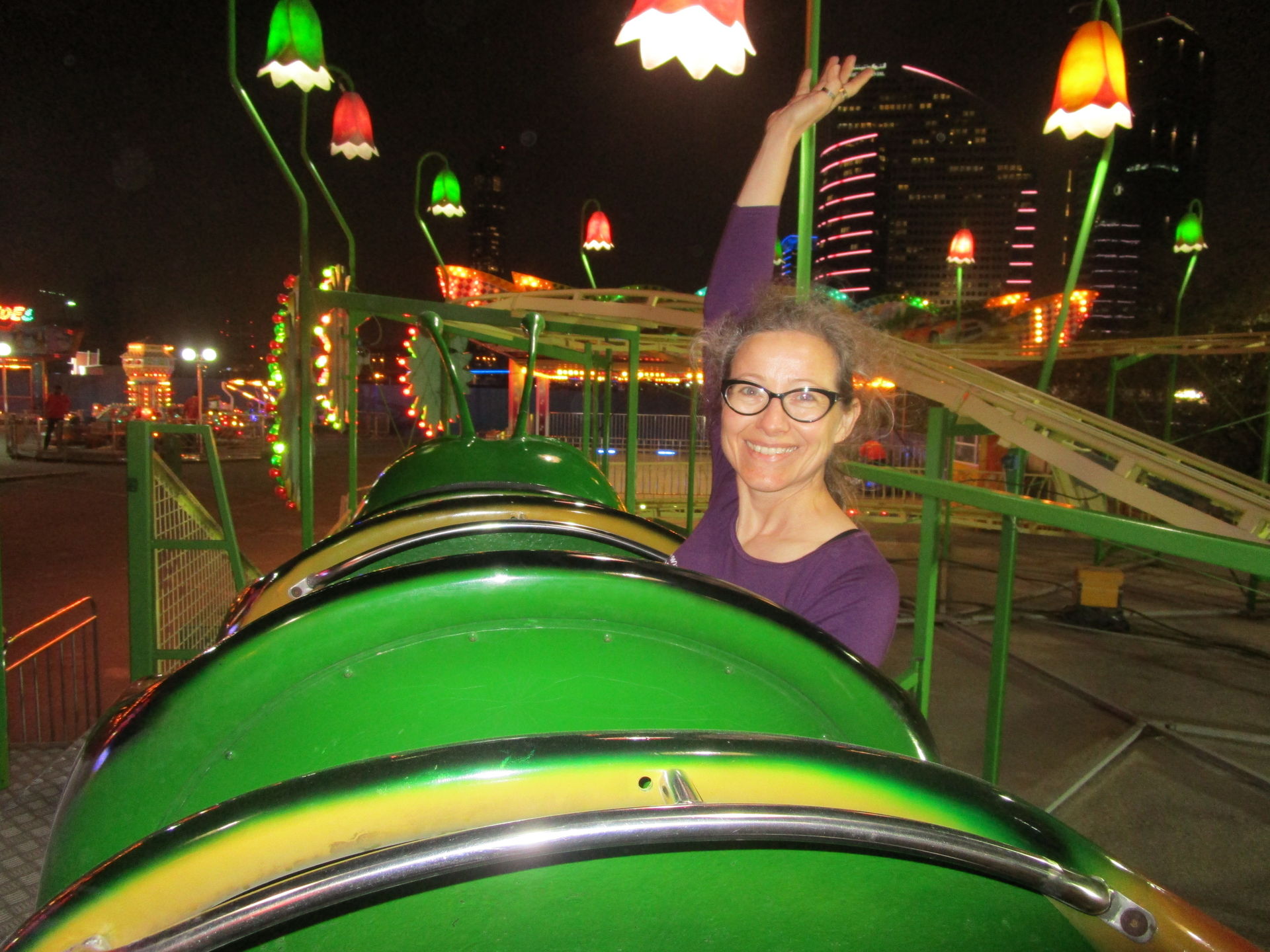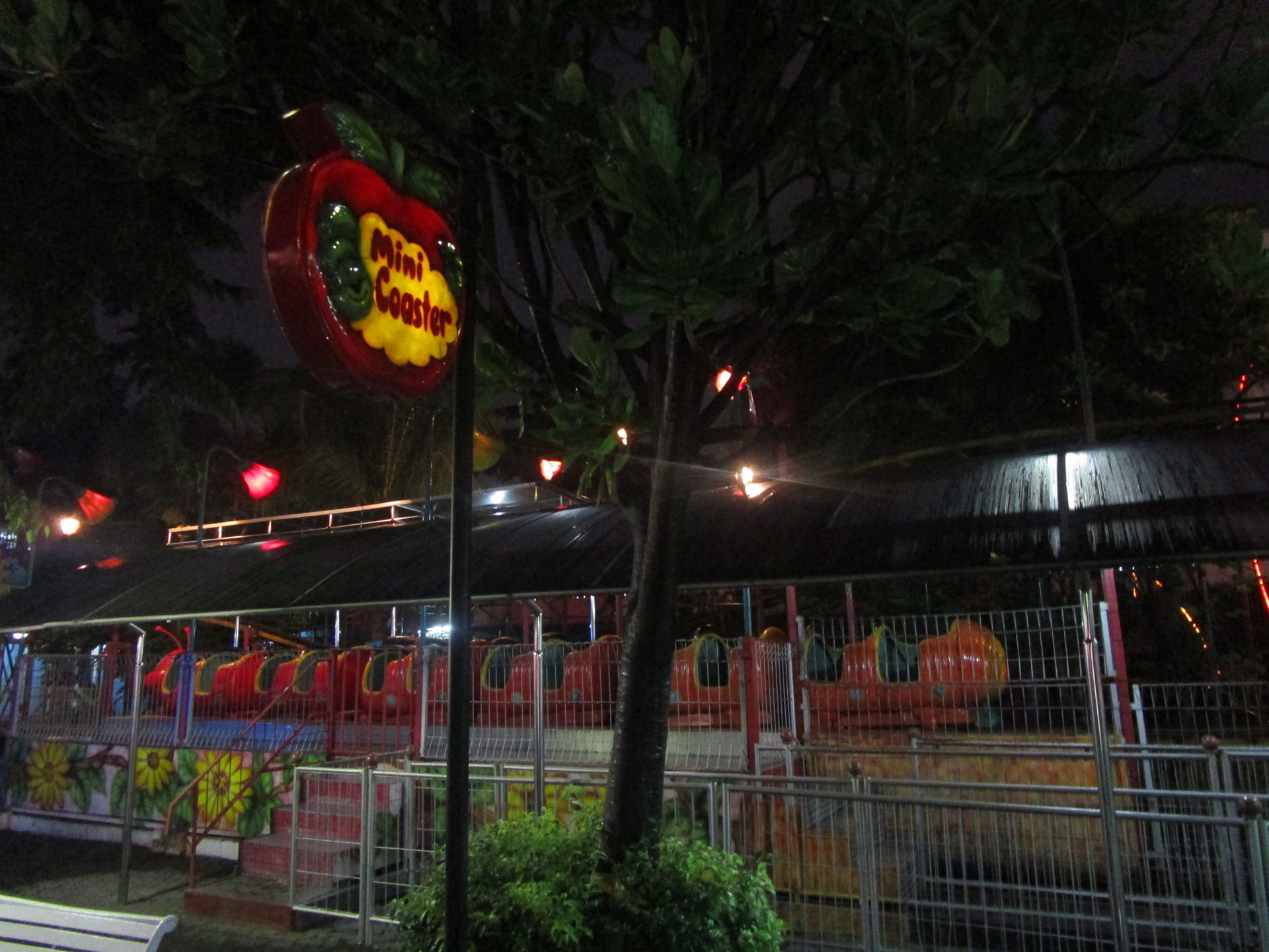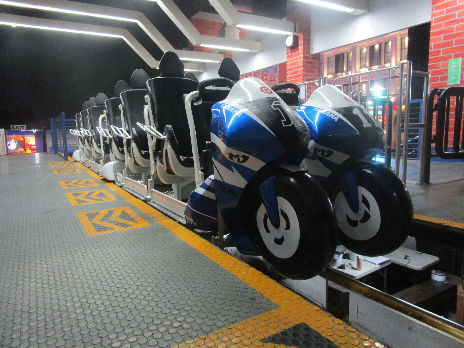 Dreimal nachfragen später finden wir uns in der Einkaufszentrumsspielzone mit allerlei elektrisch betriebenen Unterhaltungsapparaten für den Nachwuchs wieder und entdecken eine sehr skurrile, an einen Mack Spinning Coaster erinnernde Ausgabe einer solchen Drehbahn mit unfassbar langer Fahrdauer, die aber richtig viel Gaudi macht, was nicht zuletzt an der engen Mallarchitektur liegt, die man während der Fahrt mit den Händen ertasten könnte, wenn man wollte.