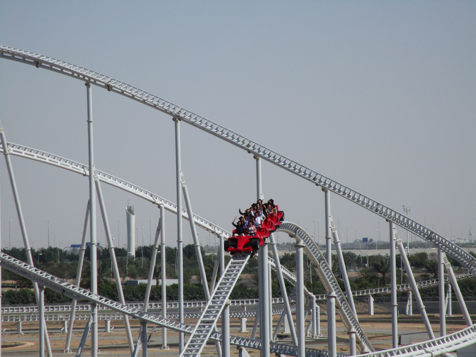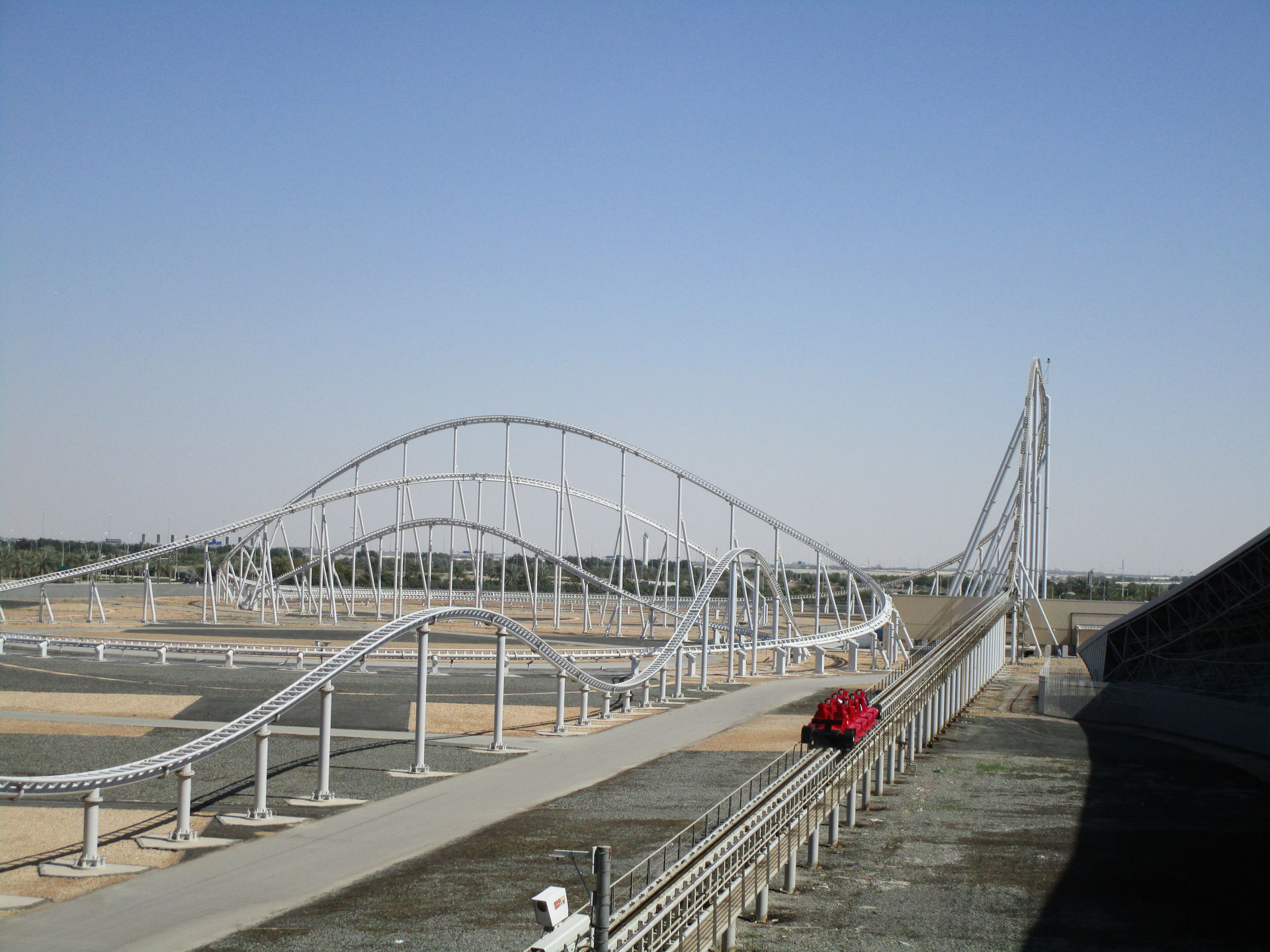 Wir sind hier, um unsere vorgefestigte Meinung zu verifizieren, dass Formula Rossa einem Fahrspaßvergleich mit Kingda Ka und Top Thrill Dragster nicht ansatzweise standhalten kann. Immerhin fehlt diesem Wüstenflitzer die Höhe, um zu beweisen, dass er wirklich die Numero Uno in Sachen Velocita ist.