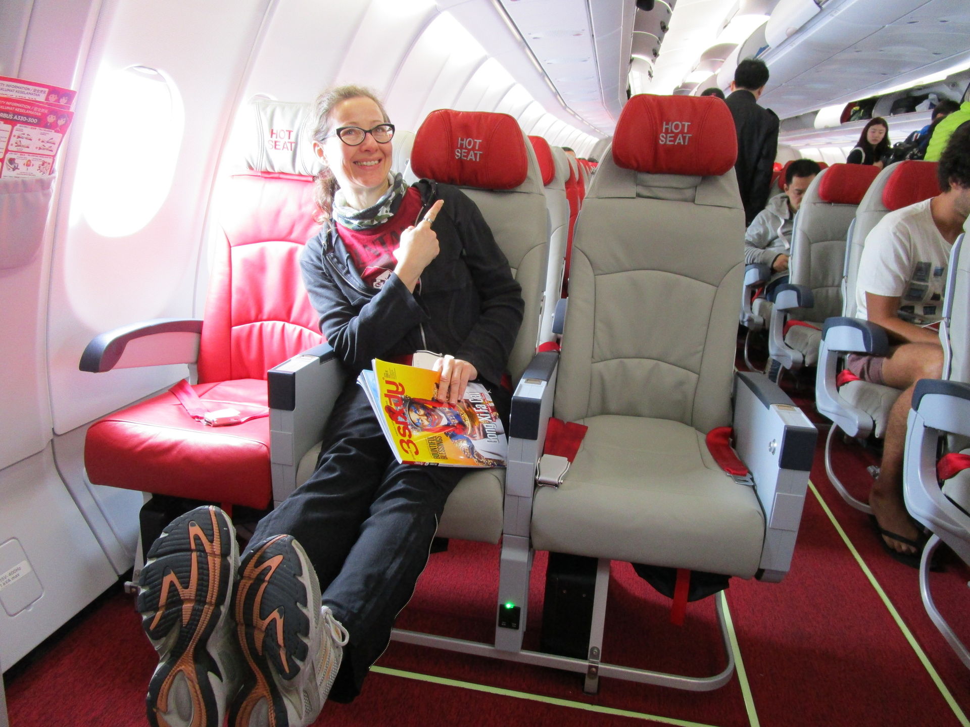 Air Asia ist toll. Den Hot Seat, also den Sitz am Notausgang gibt es gegen ein kleines Geld zum ohnehin schon günstigen Flug dazu.