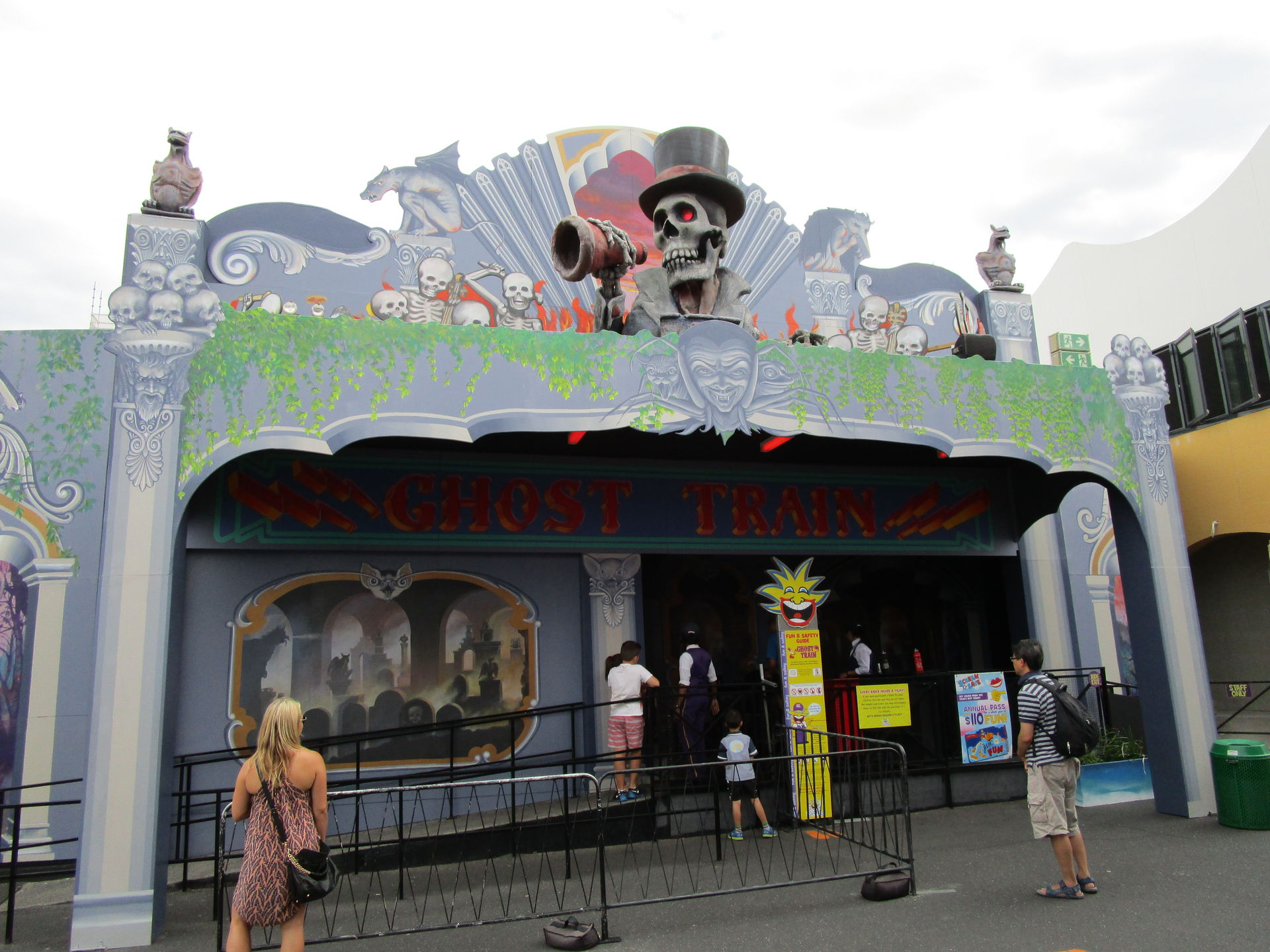 Der Ghost Train trägt seinen Namen zu Recht. Hier nehmen wir in einem Wägelchen Platz, welches tatsächlich die altmodische Form einer Lokomotive besitzt.