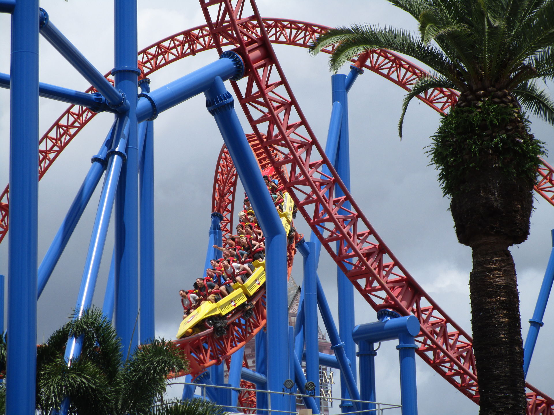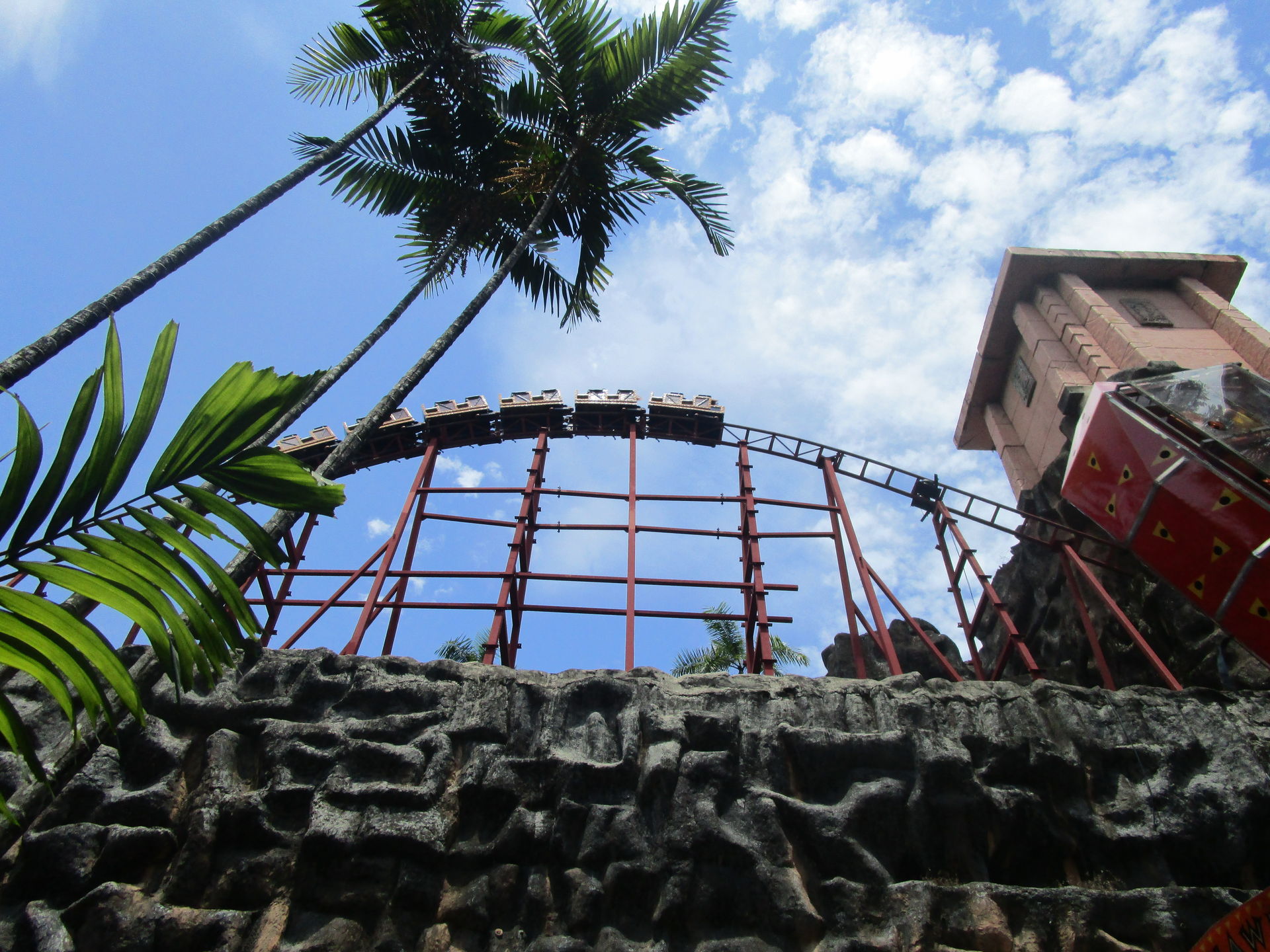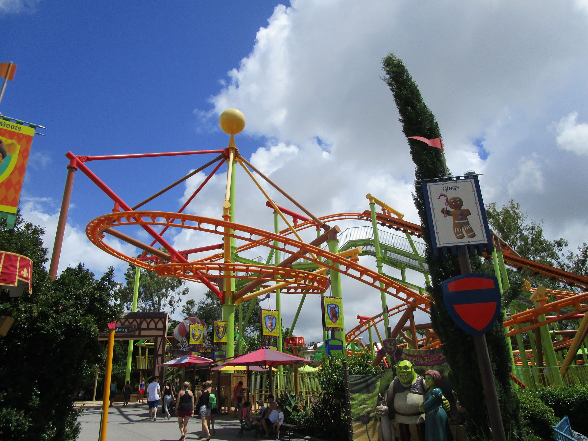 Völliger Quatsch! Diese Bahn kann echt was! Sie hat definitiv einen knackigen Launch, eine sehr lange Fahrtstrecke, sie ist 100% rückenverträglich und der Beweis, dass sie die 240km/h auch wirklich fährt, wird einem dadurch erbracht, dass man es nicht schafft, seine Arme senkrecht oben zu halten. Das war wohl nichts mit einmal fahren und abhaken. Bis auf jeweils einen Besuch von Launcher Nummer 3 und 4 des Tages fliegen alle anderen Attraktionen zugunsten unseres neuen knallroten Lieblingsrennwagens aus Lichtenstein ersatzlos von der Agenda.