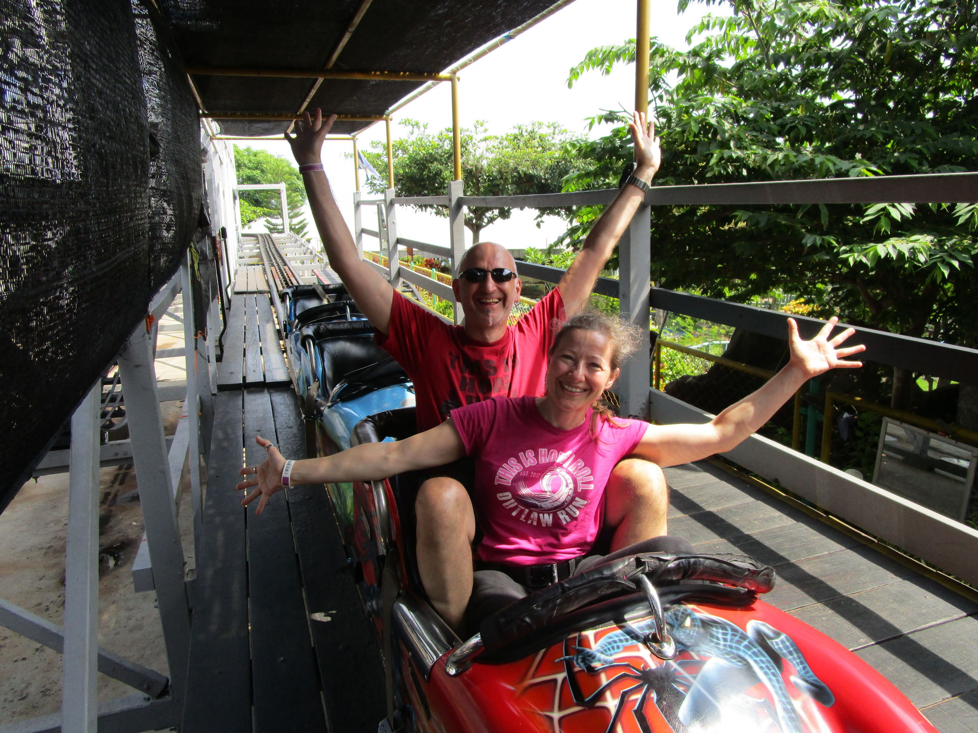Wenn wir etwas nicht mögen, dann ist es hektisch und auf den allerletzten Aufruf zum Boarding am Flugsteig einzutrudeln. Wir machen uns daher zeitig genug auf den Weg zurück Richtung Dubai Airport. Nicht ganz angekommen merken wir, dass unser Plan mehr als großzügig kalkuliert ist und so können wir das in nächster Nähe befindliche Sparky's Family Fun Center in der Al Ghurair Mall noch anfahren. Diese Entscheidung erweist sich allerdings als ein unerwarteter Adrenalinboost. Da wir bereits auf der Anfahrt im Berufsverkehr feststecken, keinen Parkplatz finden und wieder in einer riesigen und konfusen Mallarchitektur Mühe haben, den Roller Coaster zu finden, tickt die Uhr bis zur Weiterreise schneller als geplant.