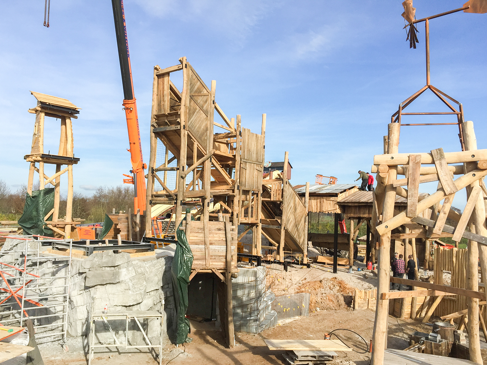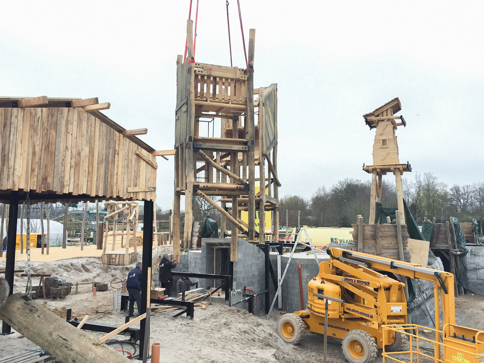 Die Förderanlage wird montiert. Im Hintergrund der Start zur Hängebrücke.