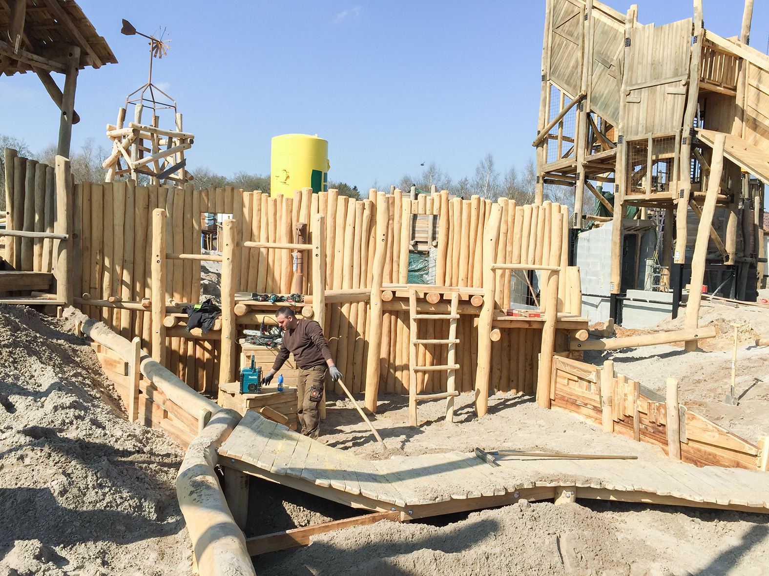 In den fertiggestellten Bereichen wird bereits der Untergrund hergerichtet und gewährt gleichzeitig einen guten Fallschutz.