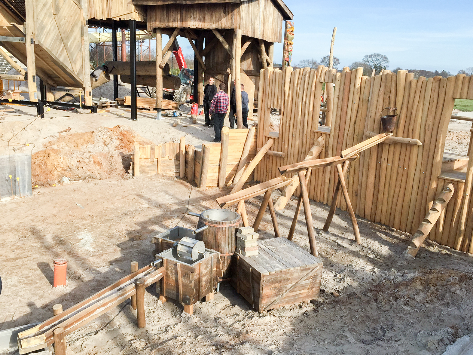 Detailgetreu werden die Holzarbeiten für die Minenanlage ausgeführt.