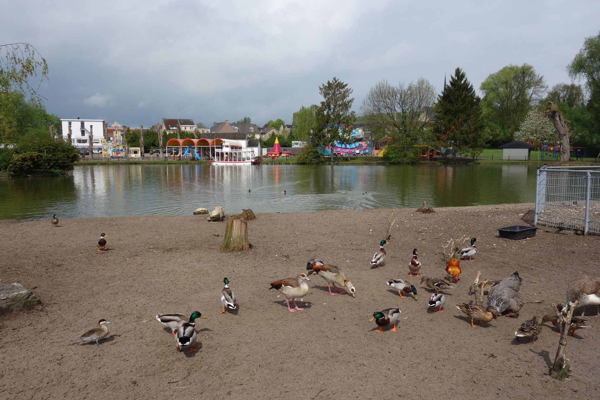 Wie am Vortag gab es aber immer wieder Lichtblicke. So auch bei meiner Ankunft in Valkenburg, als sich gerade ein paar Sonnenstrahlen durch die Wolkendecke zwängen wollten. Etwas am Rande des Stadtzentrums befindet sich der kleine Familienpark De Valkenier, der nun also mein erstes Tagesziel sein sollte. Es empfiehlt sich übrigens im Voraus zu planen, wie lange man etwa bleiben möchte. Denn die beiden Parkplätze in unmittelbarer Nähe zum Parkeingang sind öffentliche Parkplätze, bei denen man Parkscheine für eine bestimmte Parkdauer ziehen muss. Mit 1,50¤ hatte ich also etwa 50 Minuten zur Verfügung, um den Park zu erkunden. Der zum Park gehörende Parkplatz befindet sich fast auf der anderen Seite und kostet 5,50¤ für den Tag.