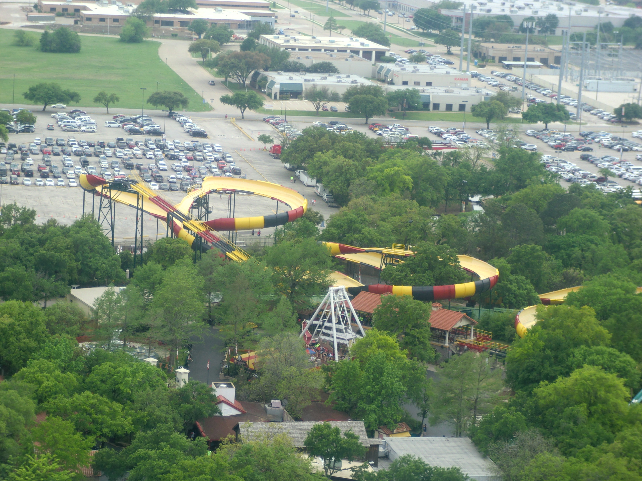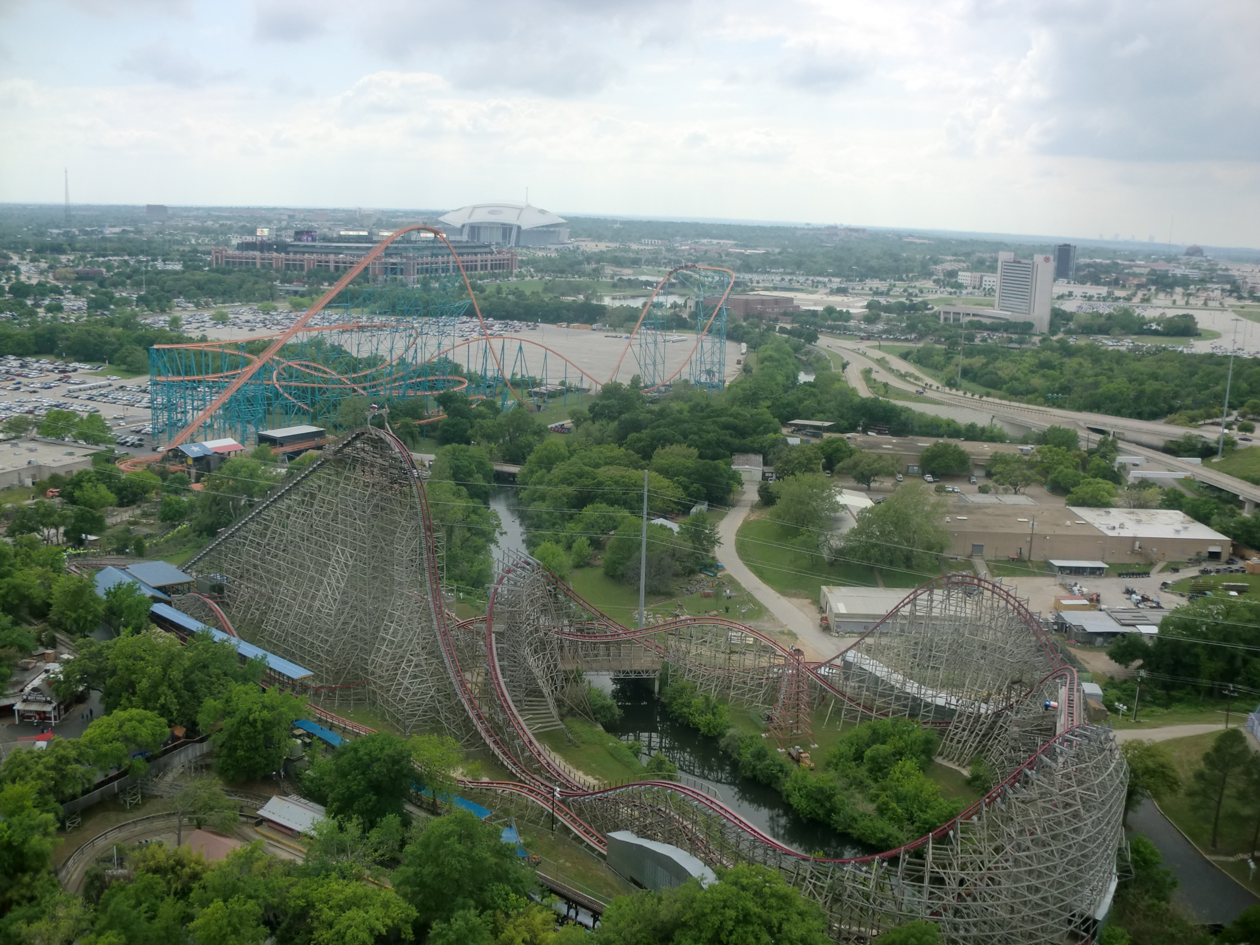 Zuhause habe ich mal wieder gemerkt, dass ich viel zu wenig Fotos gemacht habe. Das kommt einfach davon, wenn man wie ein kleines Kind, staunend und voller Vorfreunde durchs texanische Coastermekka läuft und alles Andere vergisst. Deshalb gibt es zu den nächsten zwei Bahnen nur ein paar wenige Worte.