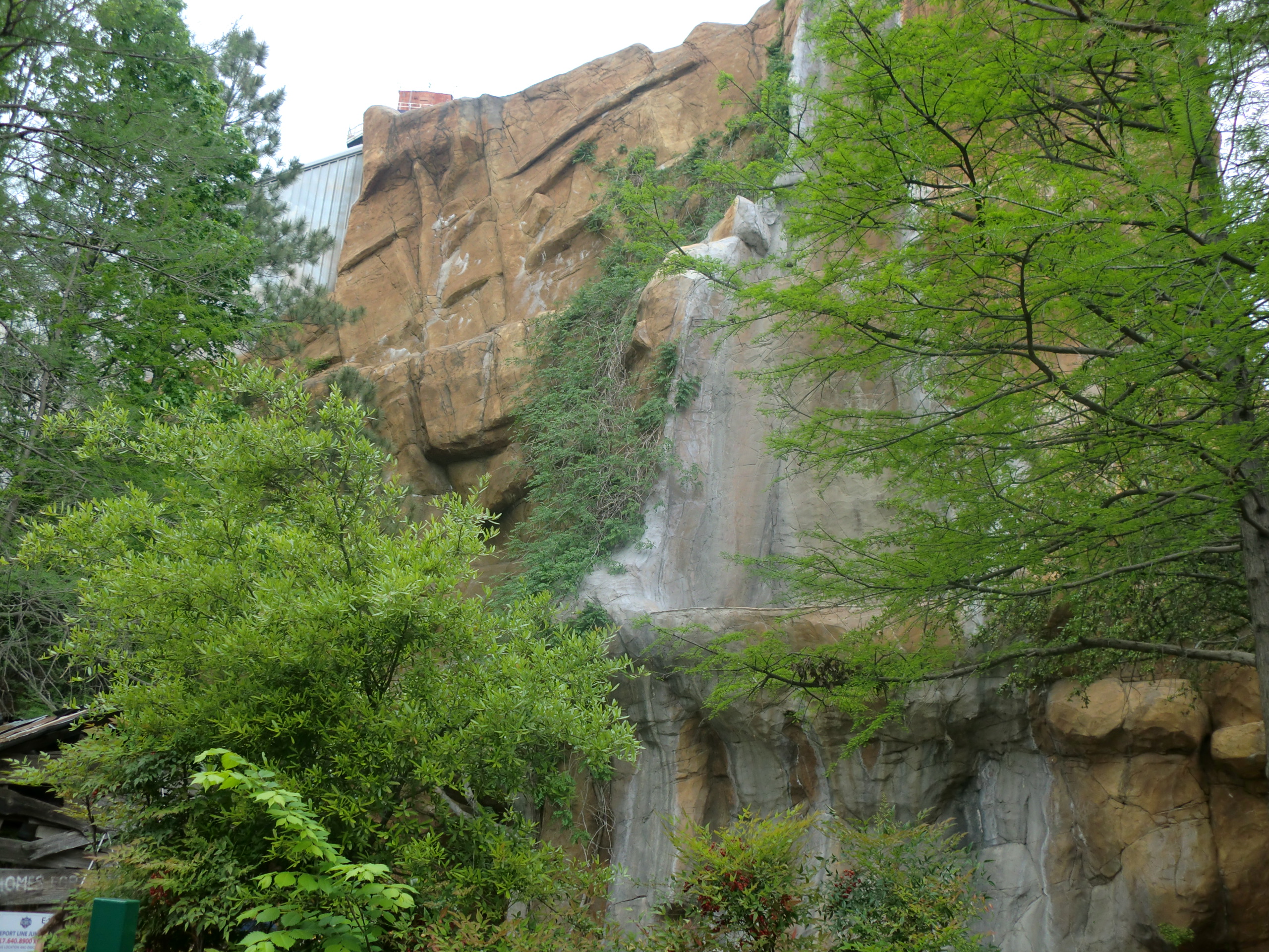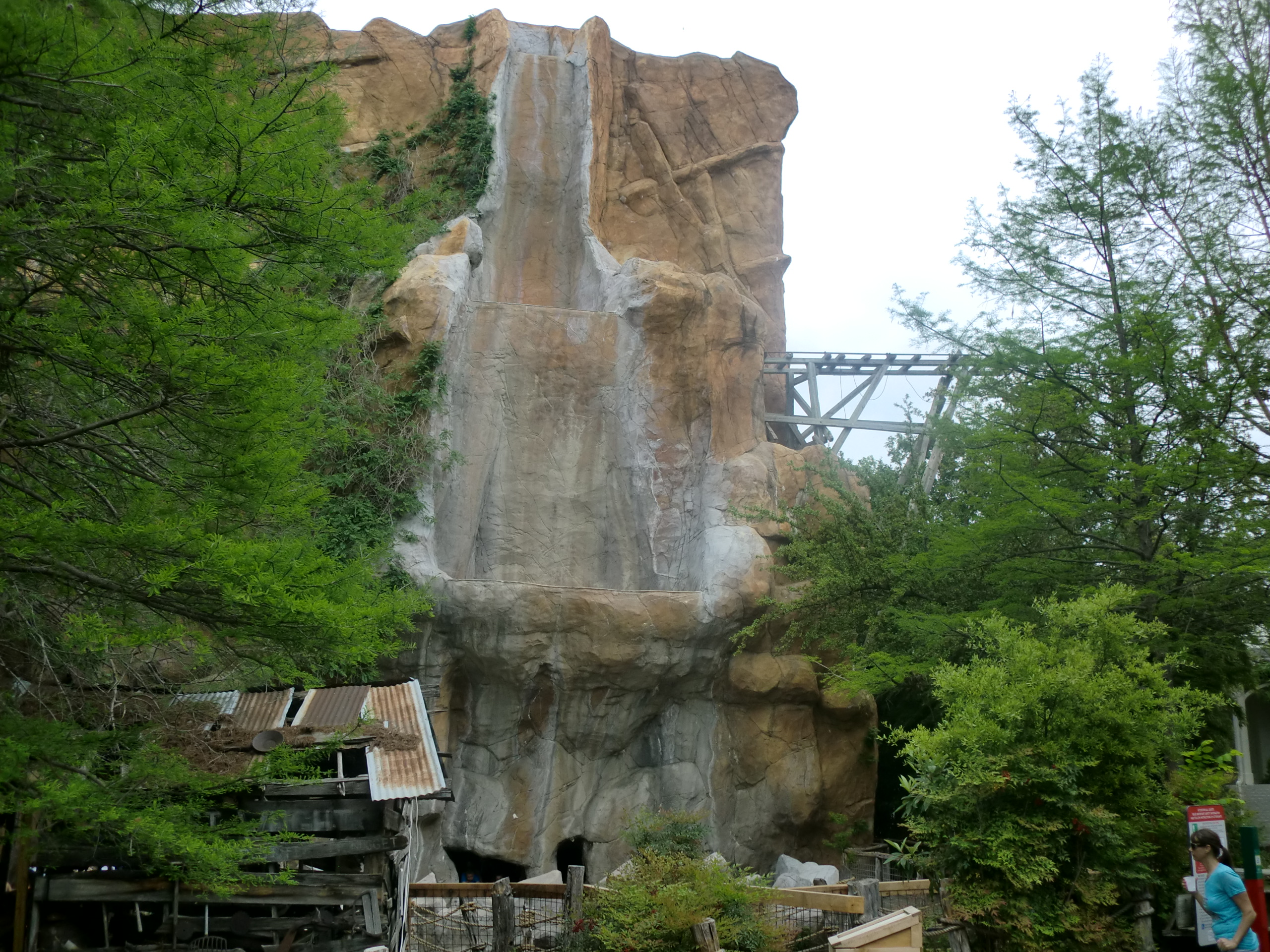 Eine Bahn die man schnell mal überstehen kann, wenn man nicht weiß, dass es sie gibt. Der Zugang liegt nicht direkt am Rundkurs sondern ist etwas weiter hinten in der Westernstadt versteckt. Auch das große Gebäude mit Felsverkleidung ist hinter einigen Bäumen gut versteckt. Leider funktionierte der Wasserfall hier nicht.