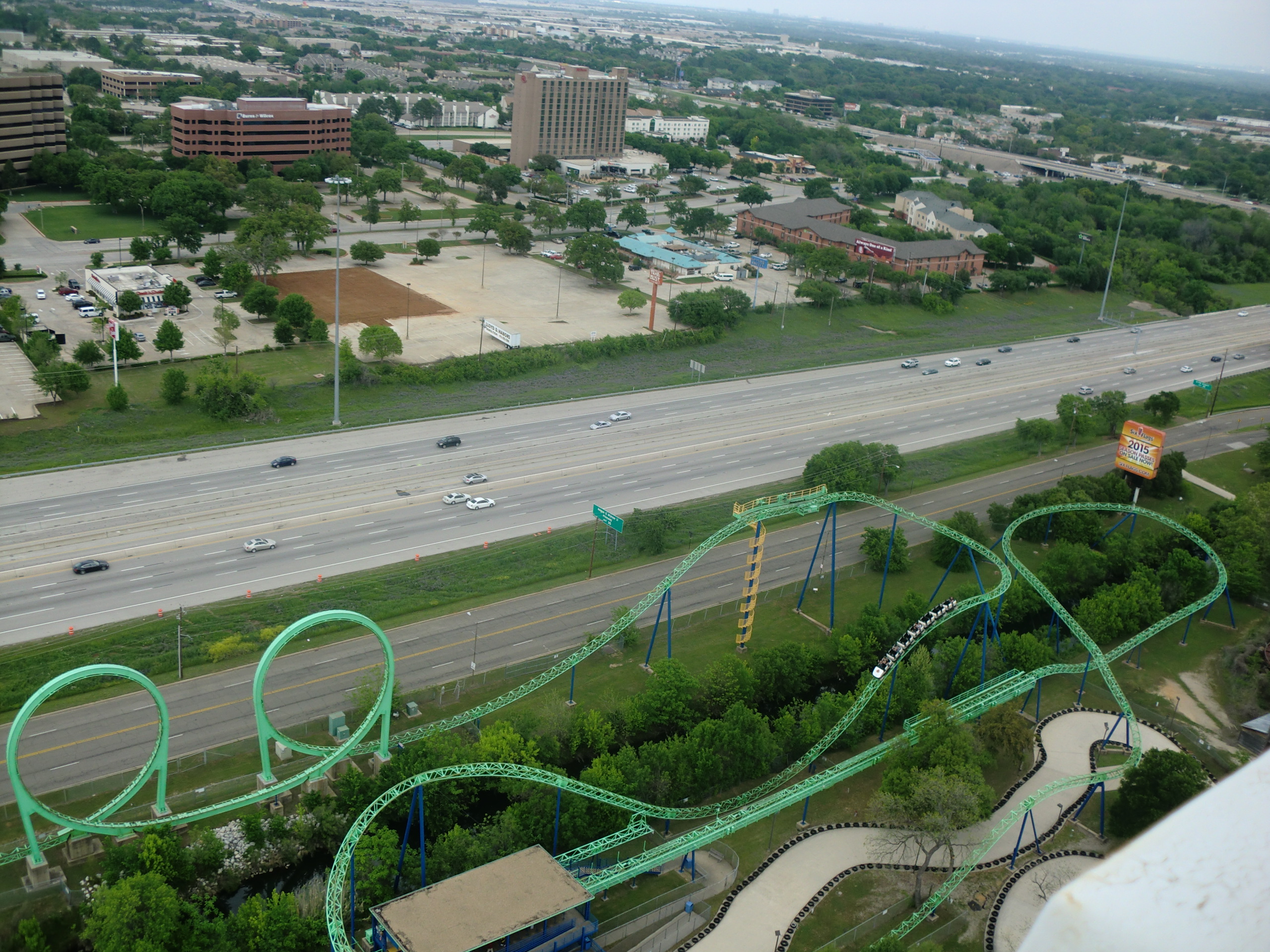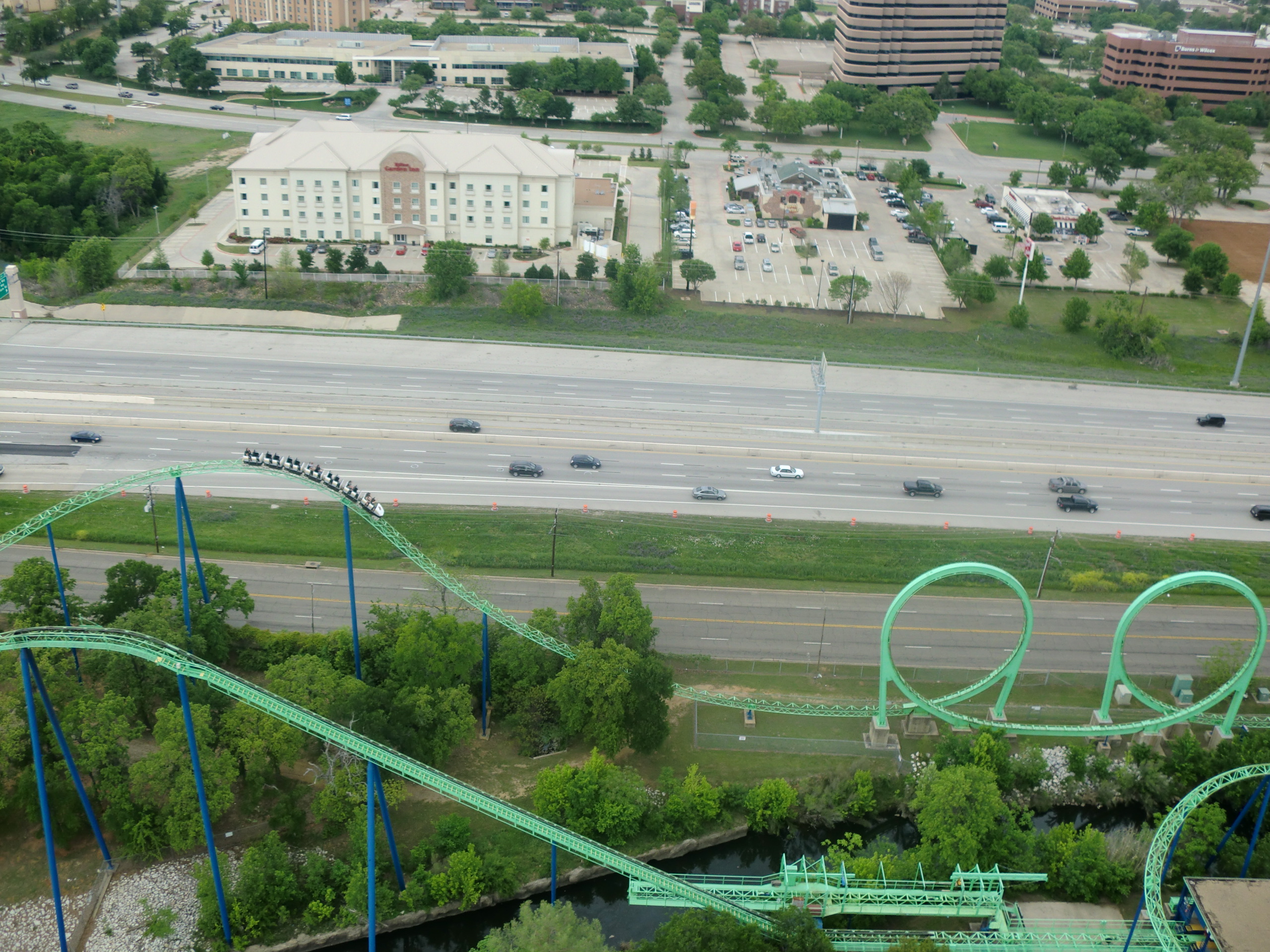 Fiesta Texas stand mit Over Texas der zweite Texas Six Flags Park an. Da beide Parks ausschließlich am Wochenende geöffnet hatten, stand nach Fiesta Texas erst mal noch ca. 4,5h Autofahrt an. Nach Parkschluss also ab auf die Interstate 35 Richtung Arlington. Mann, ist das Autofahren in den USA entspannt. Kein Hupen und kein Drängeln. Tempomat rein und ab geht es. Sehr entspannt. Wirklich. Und langweilig. Meine Güte ist das langweilig! Da uns die kalte Platte von Johnny Rockets noch ziemlich im Magen lag, haben wir das Abendessen direkt mal ausfallen lassen und sind die Strecke zeitsparend und zielorientiert durchfahren. Danke Six Flags!