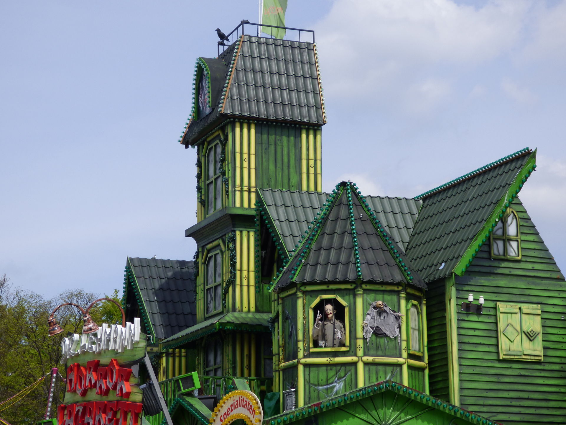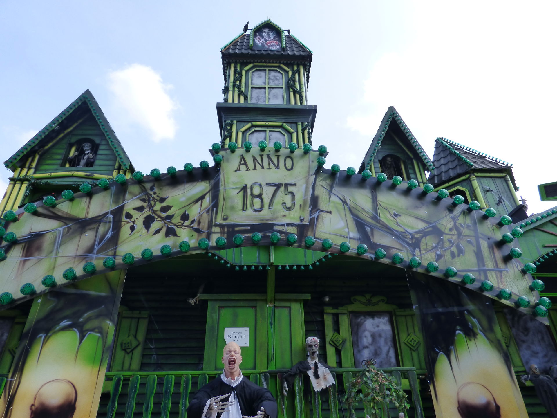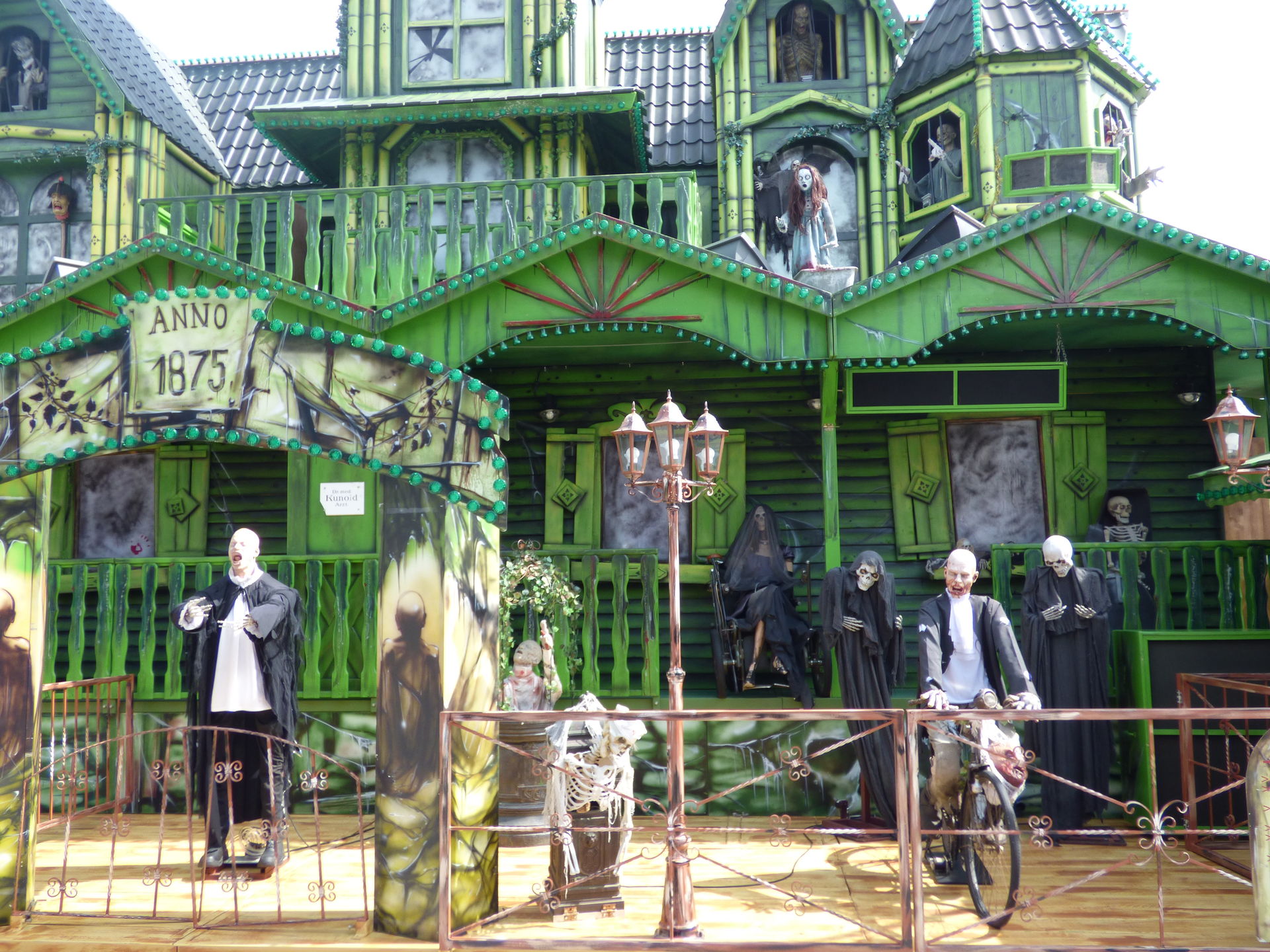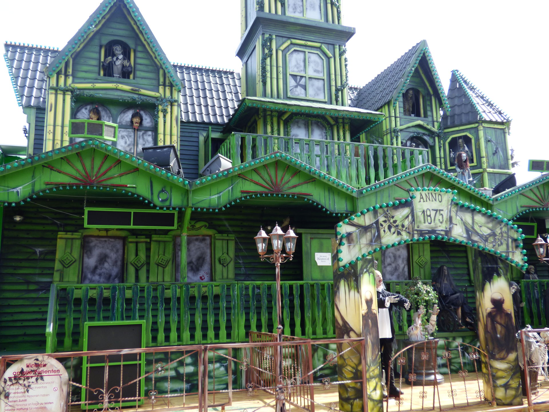 Das Horror Laufgeschäft sieht von außen wirklich klasse aus mit vielen Details und schön schaurig. Ich bin jetzt schon gespannt auf einen Besuch, Himmelfahrt soll das Lazarett laut Homepage in Witten auf der Kirmes stehen. Dann werde ich es dort mal testen.