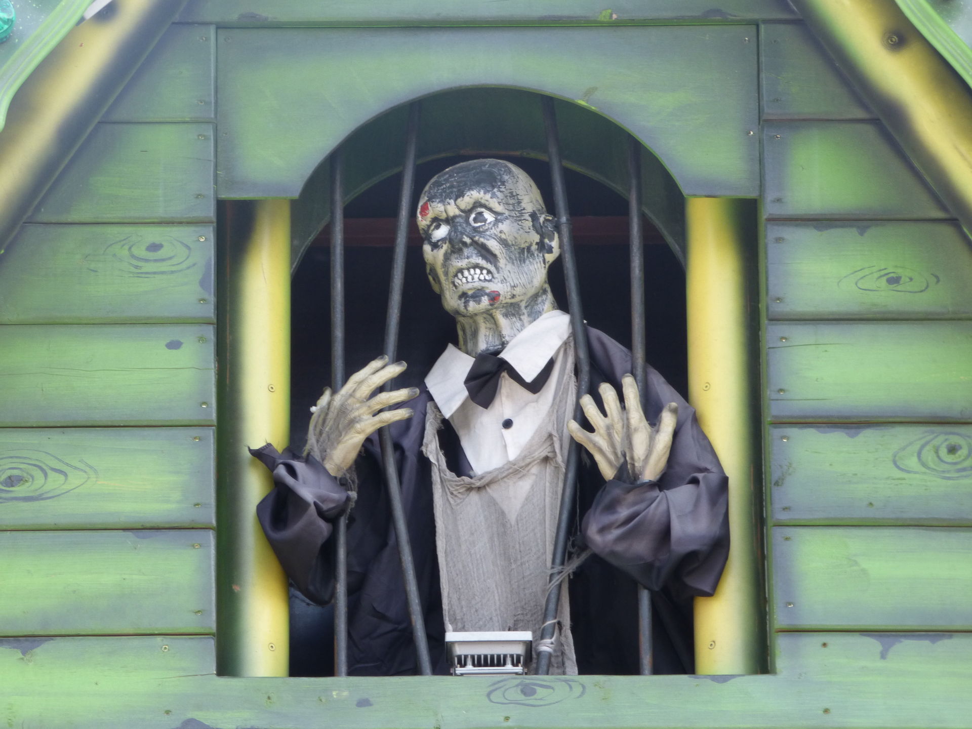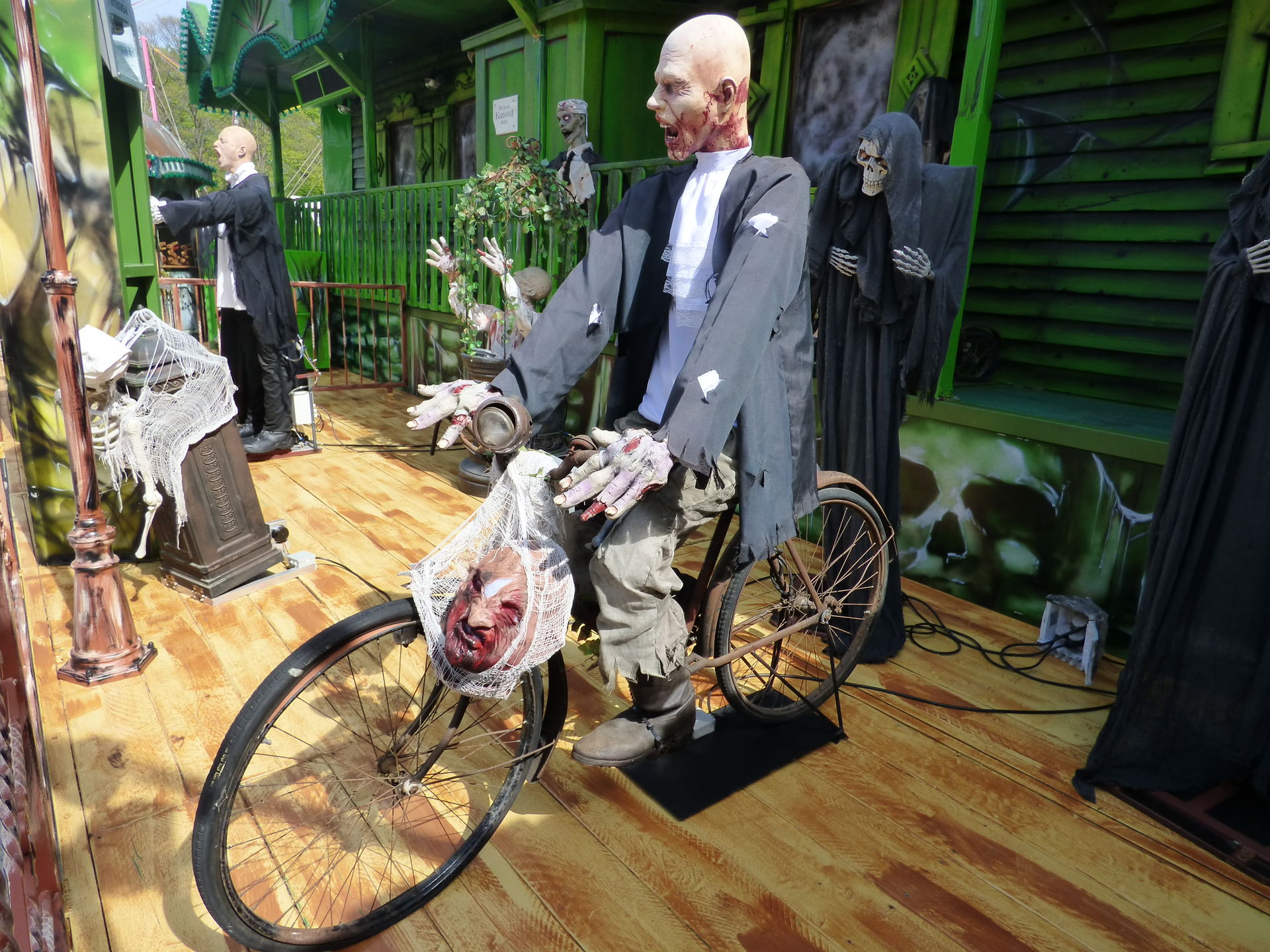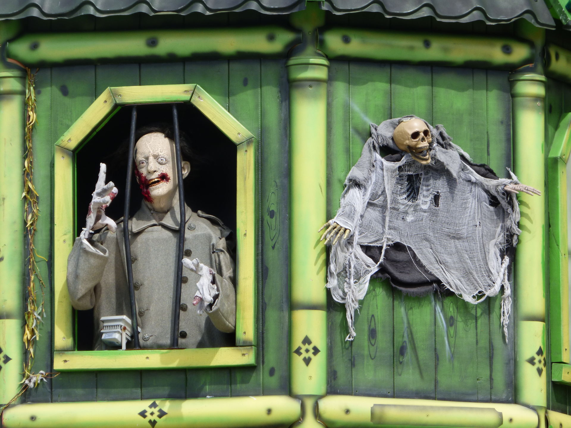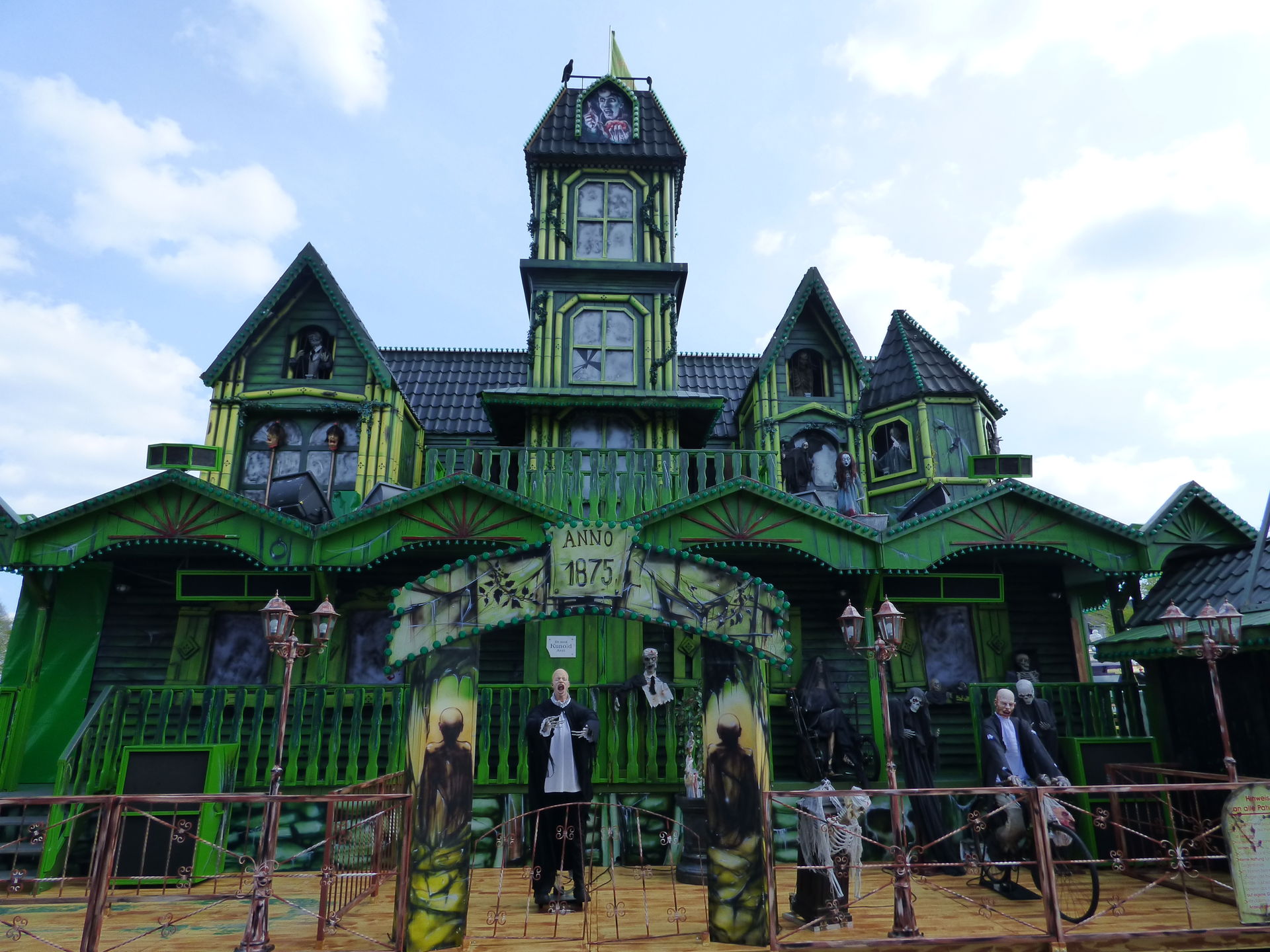 Das Horror Laufgeschäft sieht von außen wirklich klasse aus mit vielen Details und schön schaurig. Ich bin jetzt schon gespannt auf einen Besuch, Himmelfahrt soll das Lazarett laut Homepage in Witten auf der Kirmes stehen. Dann werde ich es dort mal testen.