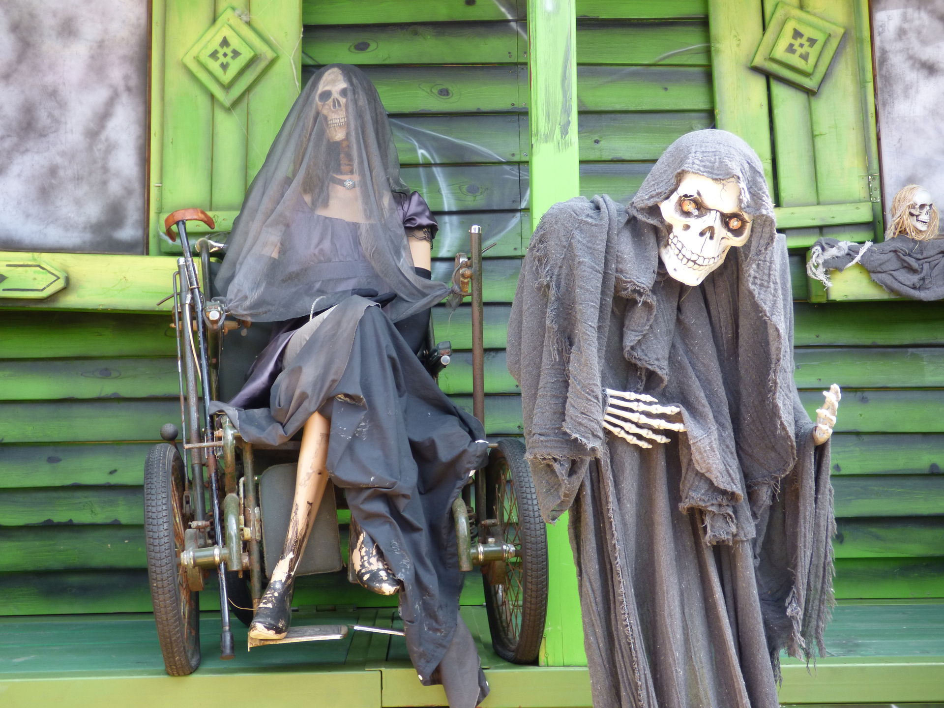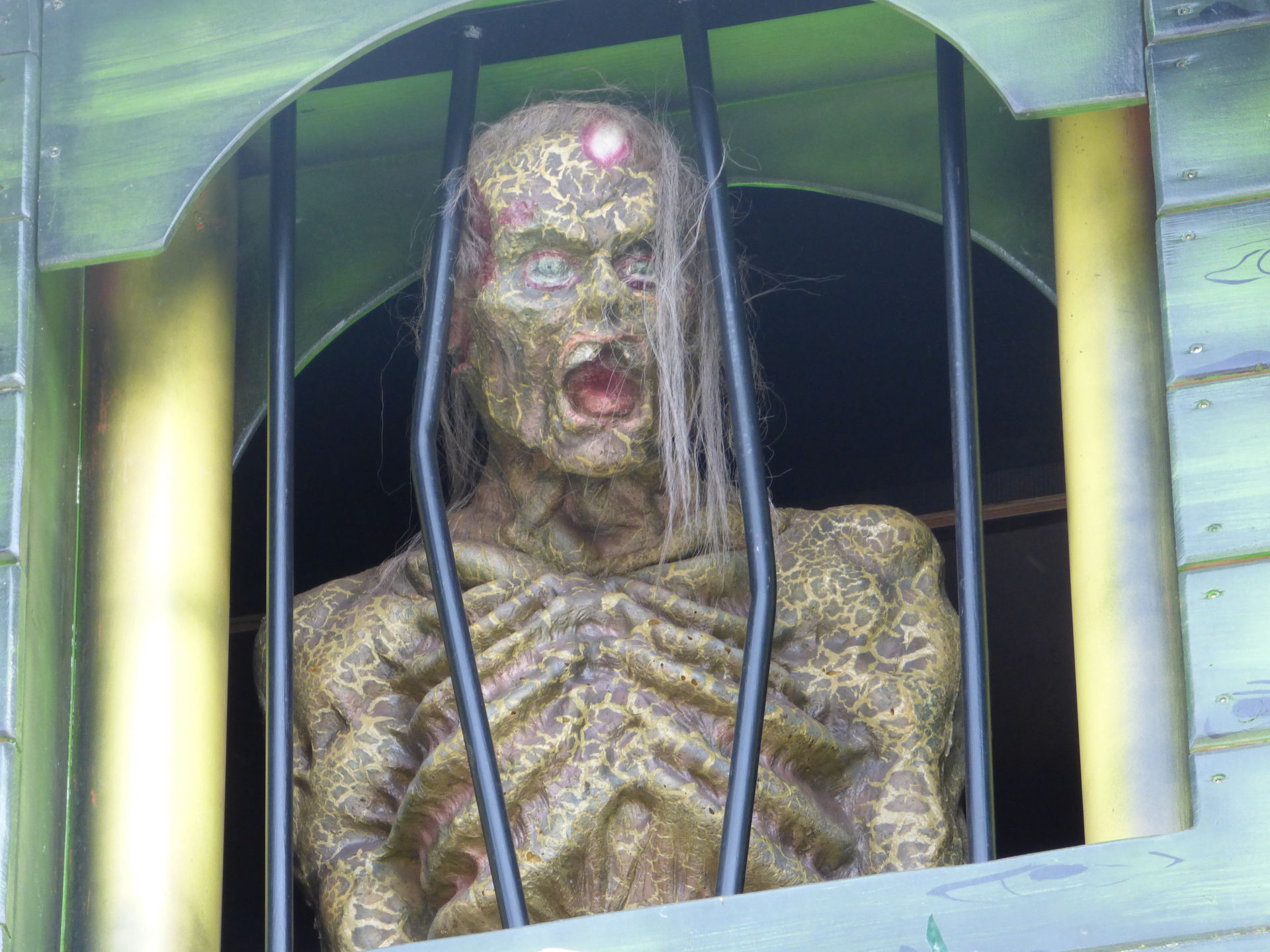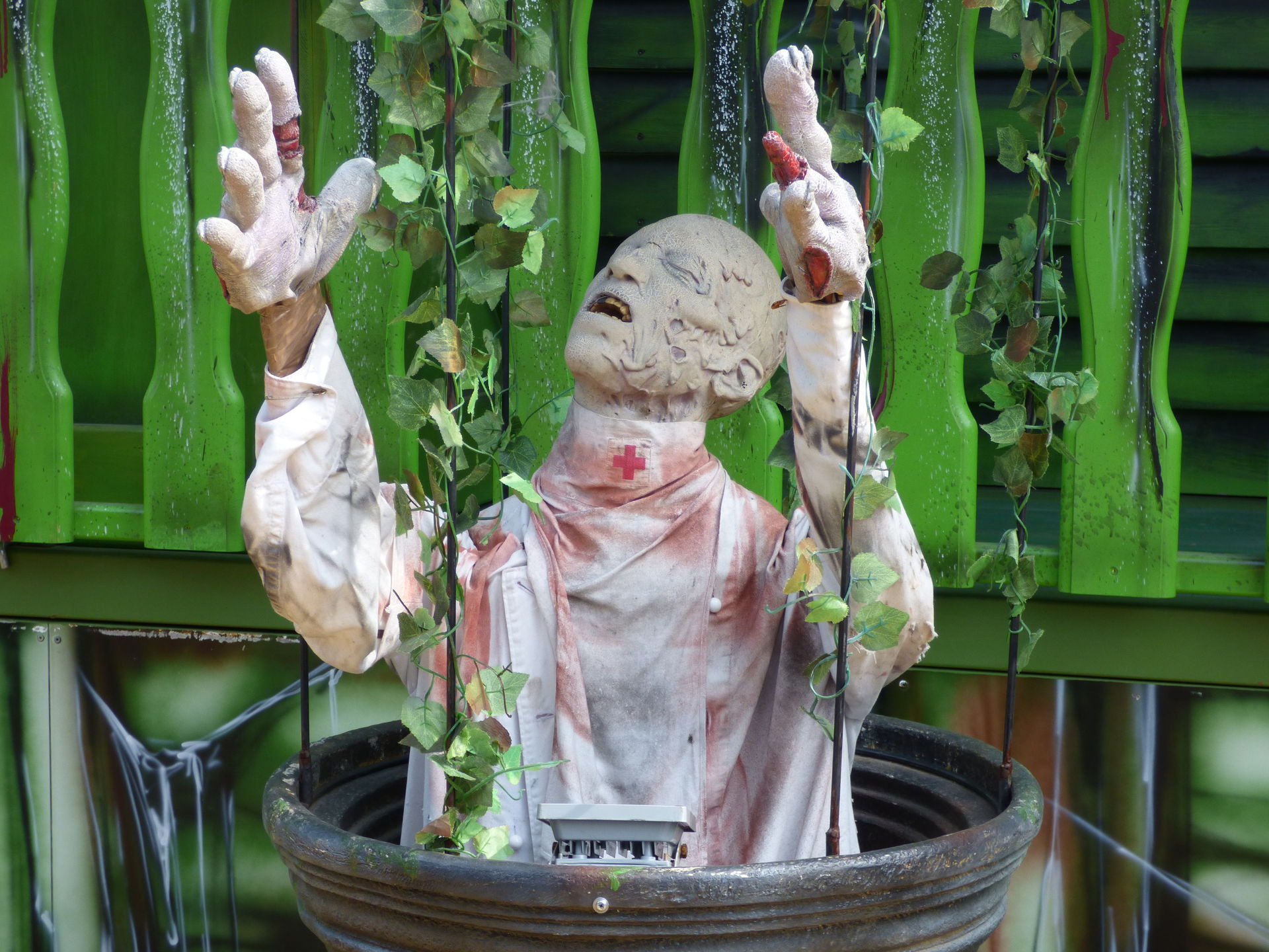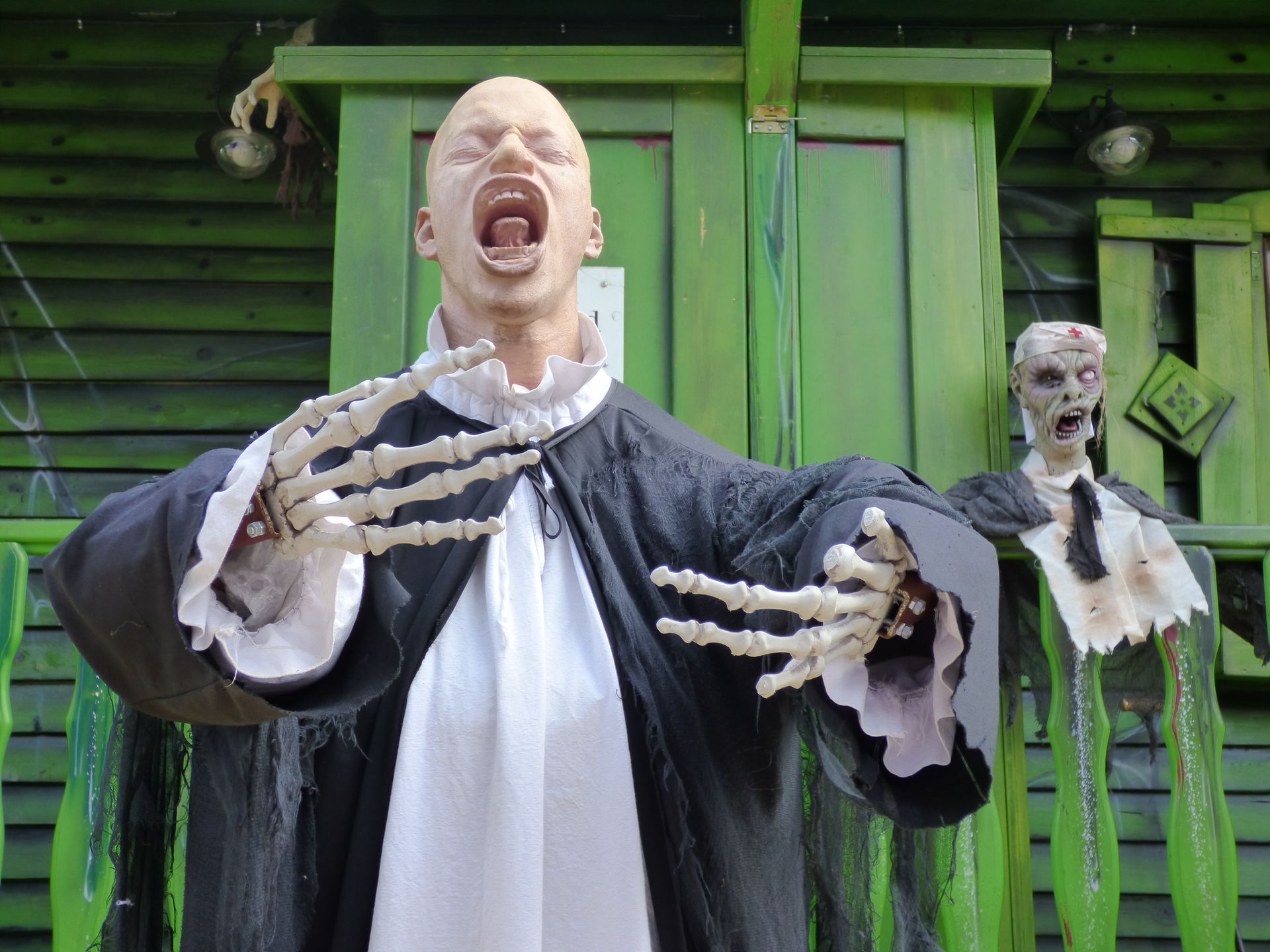 Das Horror Laufgeschäft sieht von außen wirklich klasse aus mit vielen Details und schön schaurig. Ich bin jetzt schon gespannt auf einen Besuch, Himmelfahrt soll das Lazarett laut Homepage in Witten auf der Kirmes stehen. Dann werde ich es dort mal testen.
