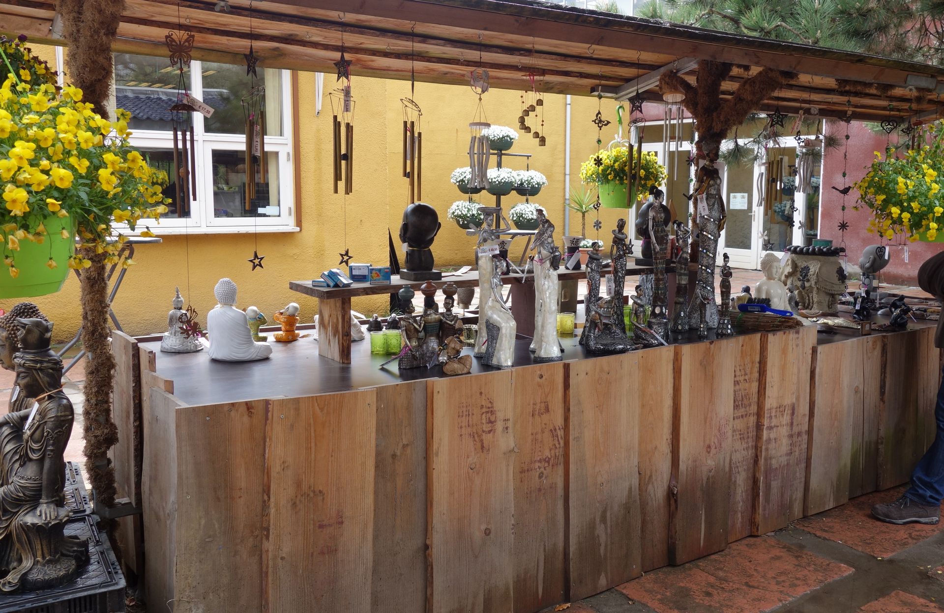Der kleine Platz hinter dem Eingang war übersäht von Figuren, Büsten und Krimskrams.