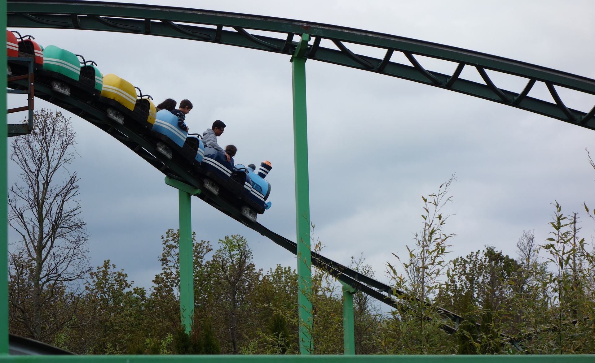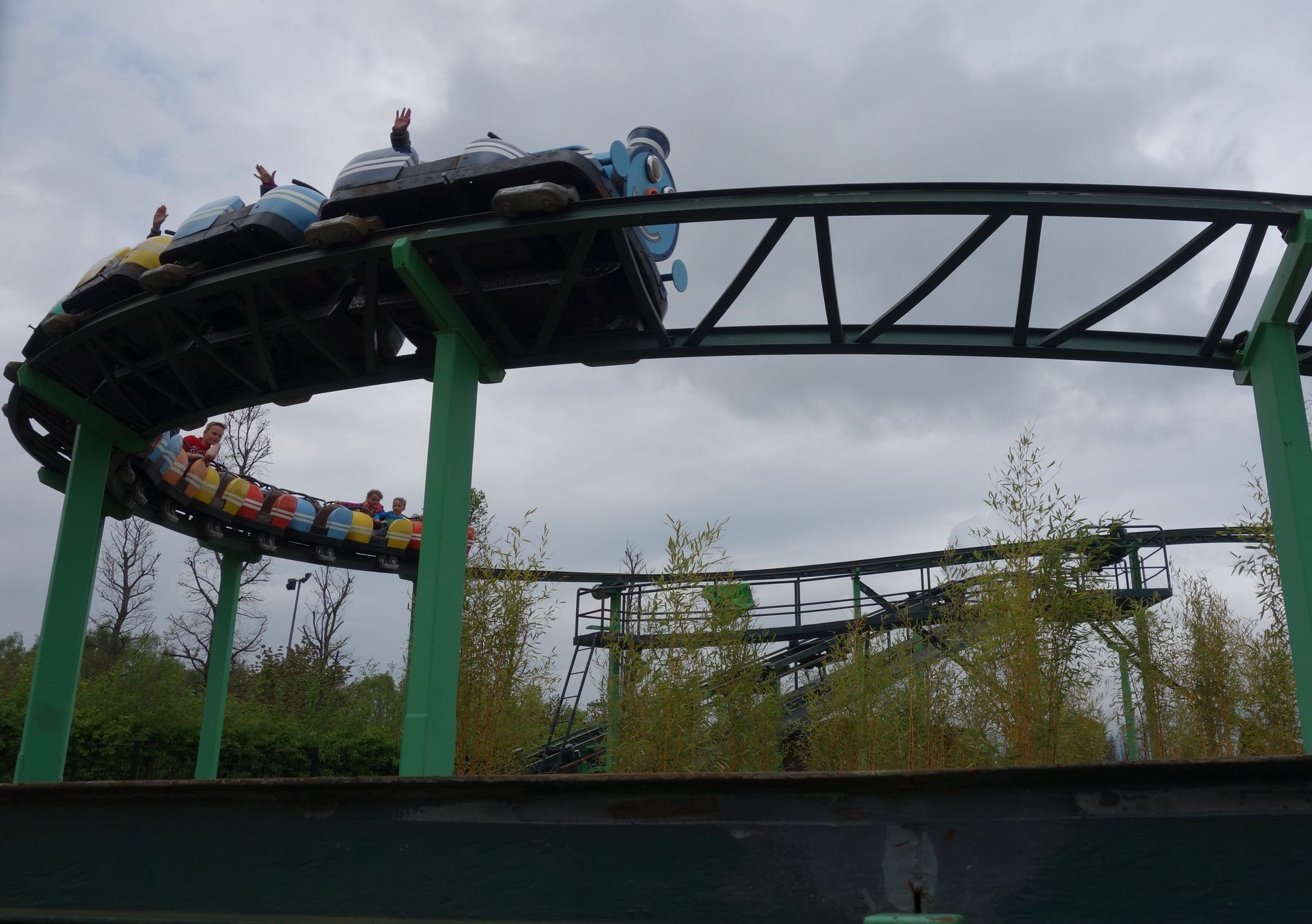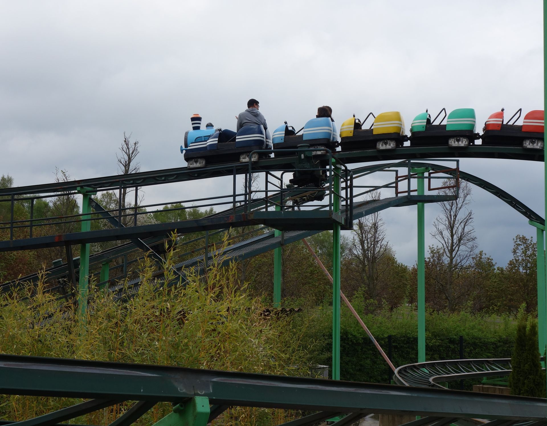 Noch klarer wurde das am Ende meiner Fahrt, denn der Zug stoppte zu früh. Die funktionierenden Reibräder hatten ihn noch gar nicht "im Griff". Der junge Ride-Op musste also nach hinten laufen und ihn ein Stück nach vorne schieben. Bisher nicht der beste Eindruck, den der Park auf mich machte...