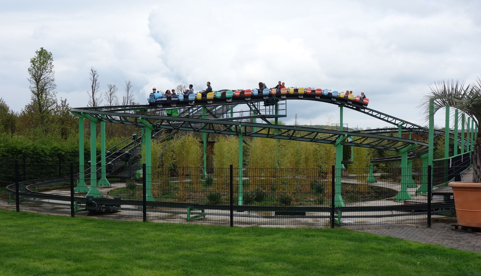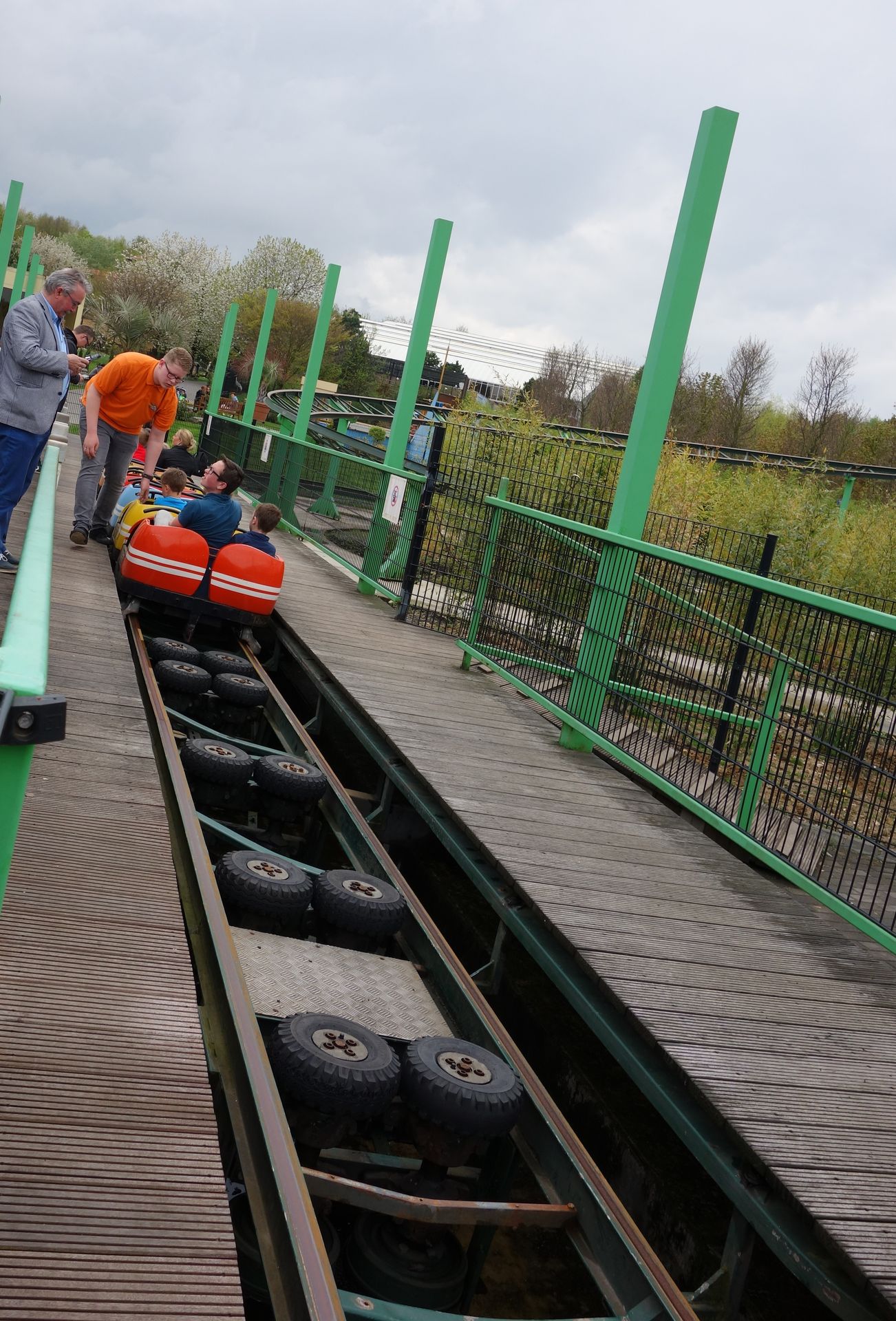 Mein letztes Ziel an diesem 26. April sollte sich in Landgraaf befinden. Den Alpine Coaster dort hatte ich zwar schon, dennoch hatte ich im Vorfeld mal kurz überlegt, auf einem der wenigen kostenfreien Parkplätze an der Zufahrt zu parken. Zwei Kilometer Fußmarsch waren mir die 4¤ dann aber doch nicht wert, und so fuhr ich direkt auf den Parkplatz des Mondo Verde. Der war aufgrund des nach wie vor miesen Wetters natürlich relativ leer, und so konnte ich meinen Ibi quasi direkt vor dem Eingang abstellen.