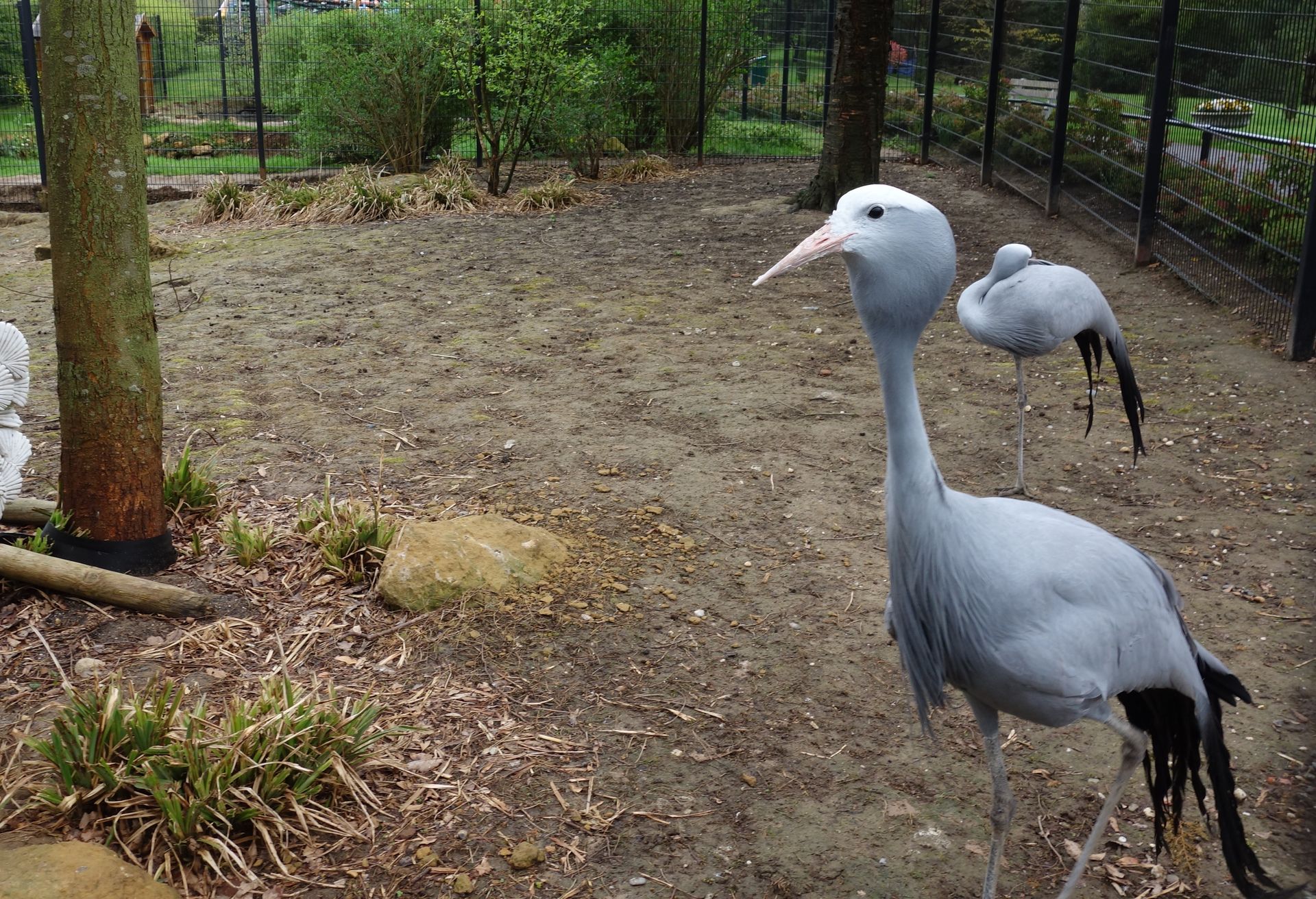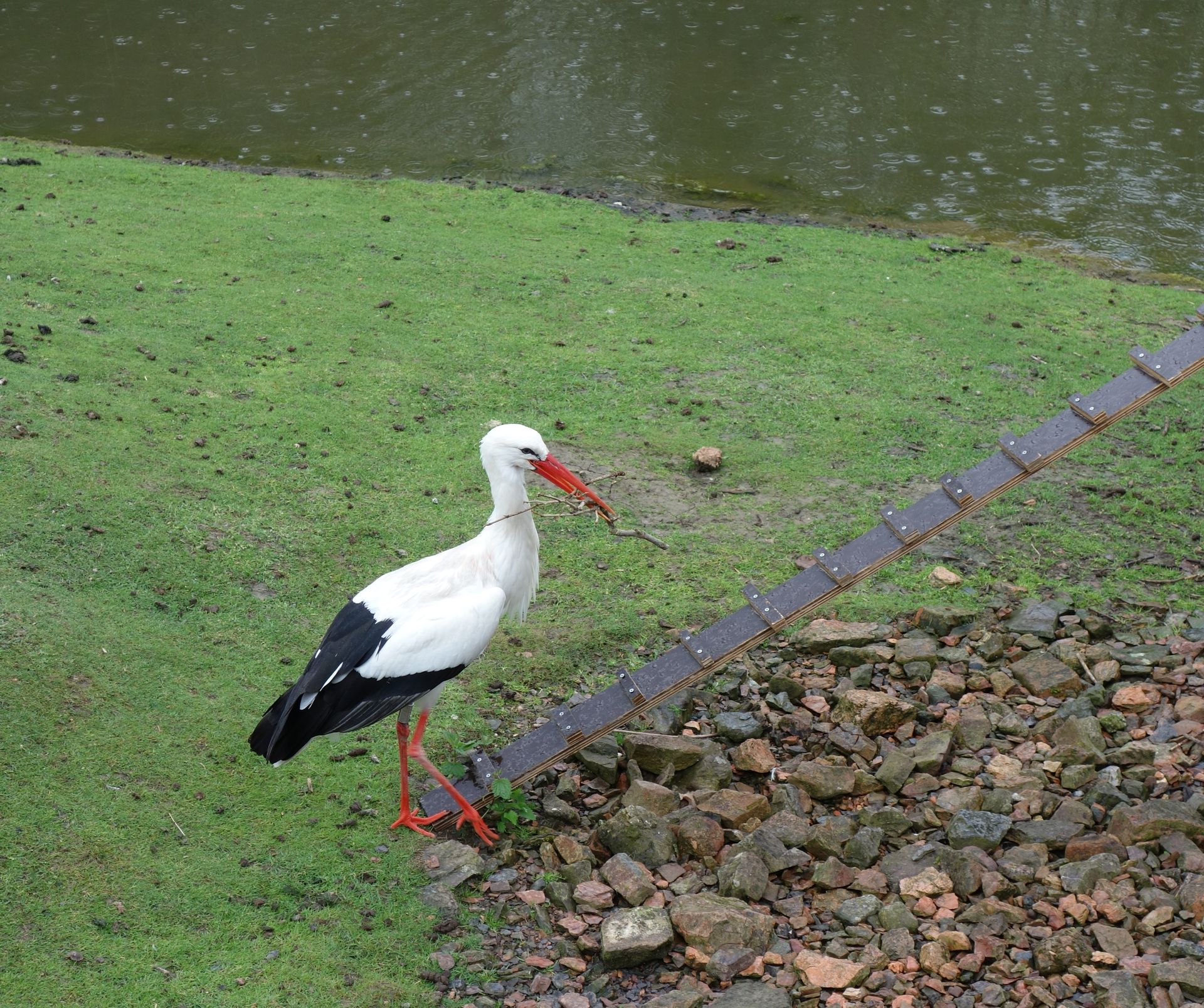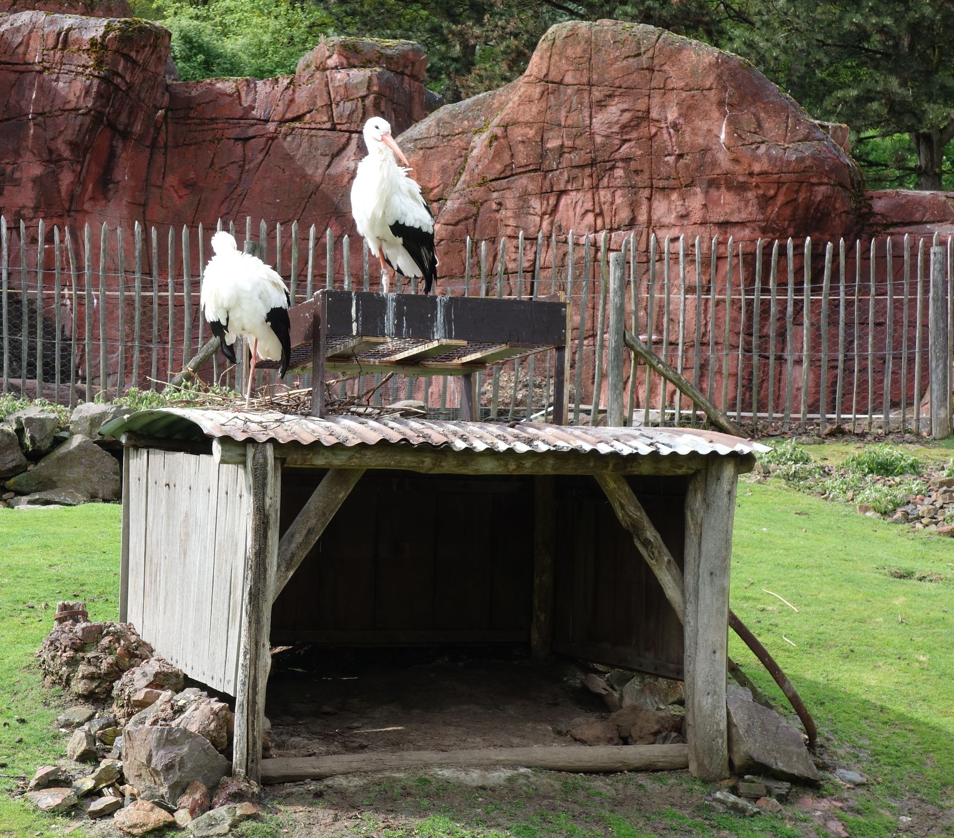 Vor dem überdachten Gehege bauten gerade Störche ihr Nest.