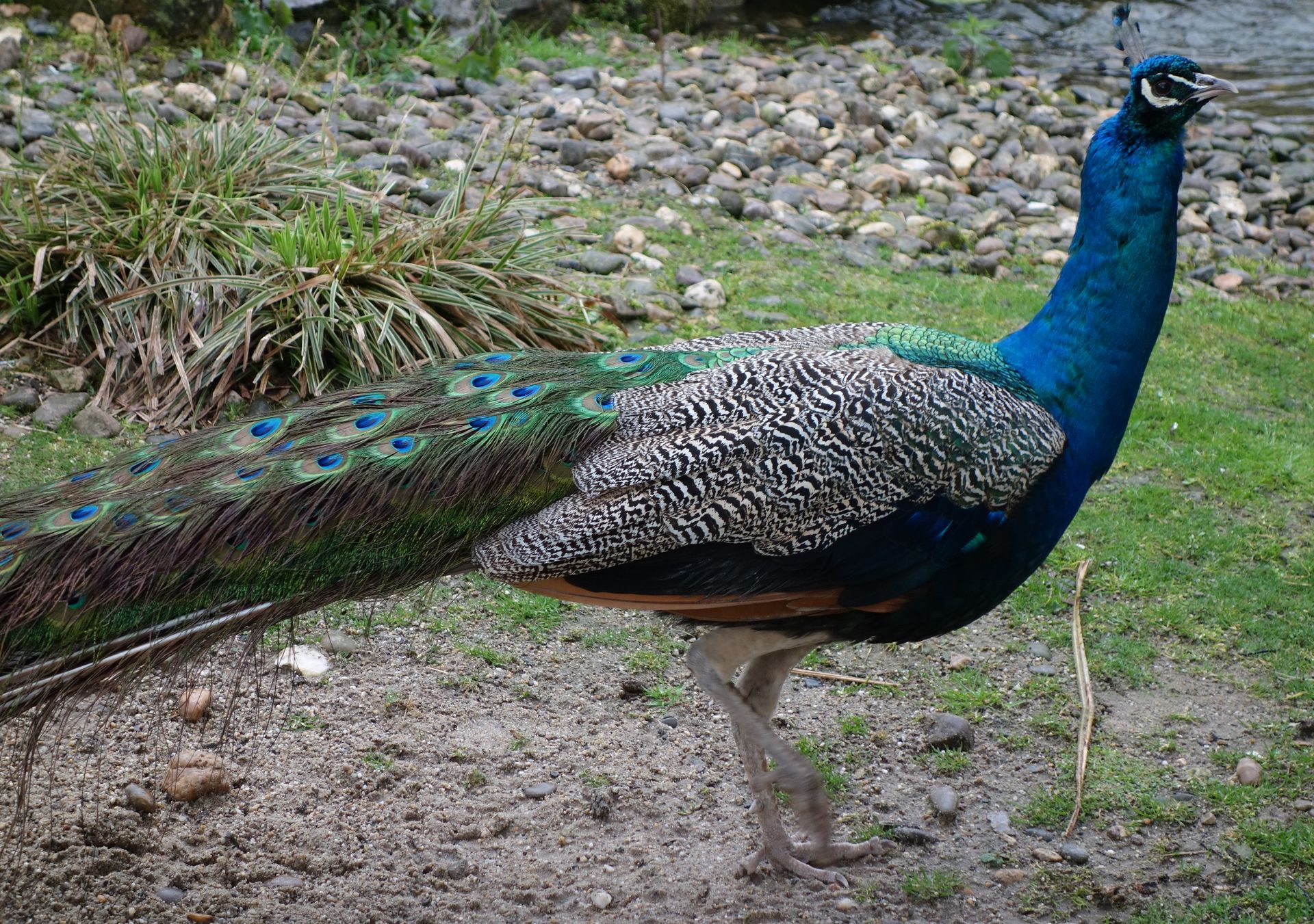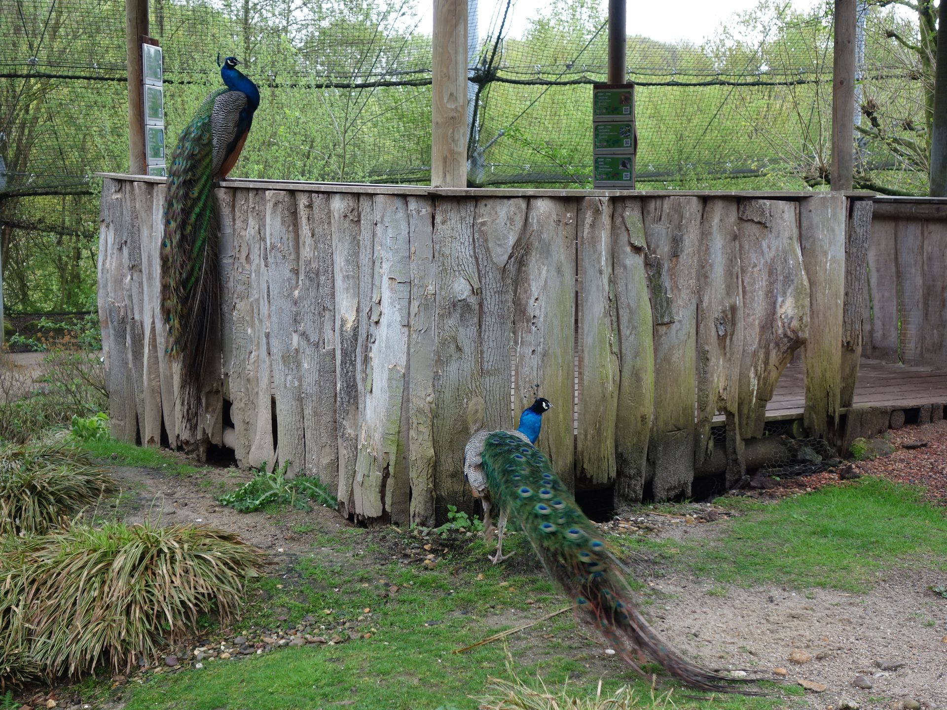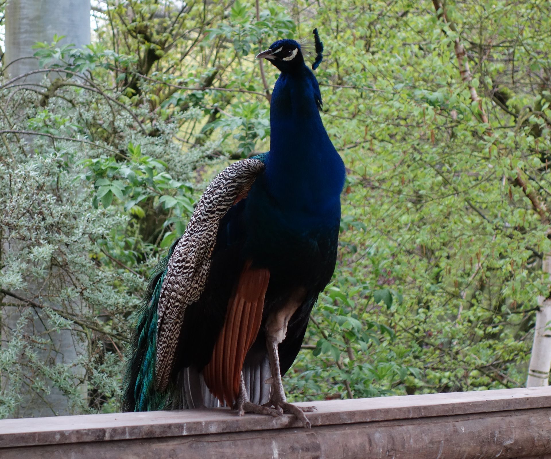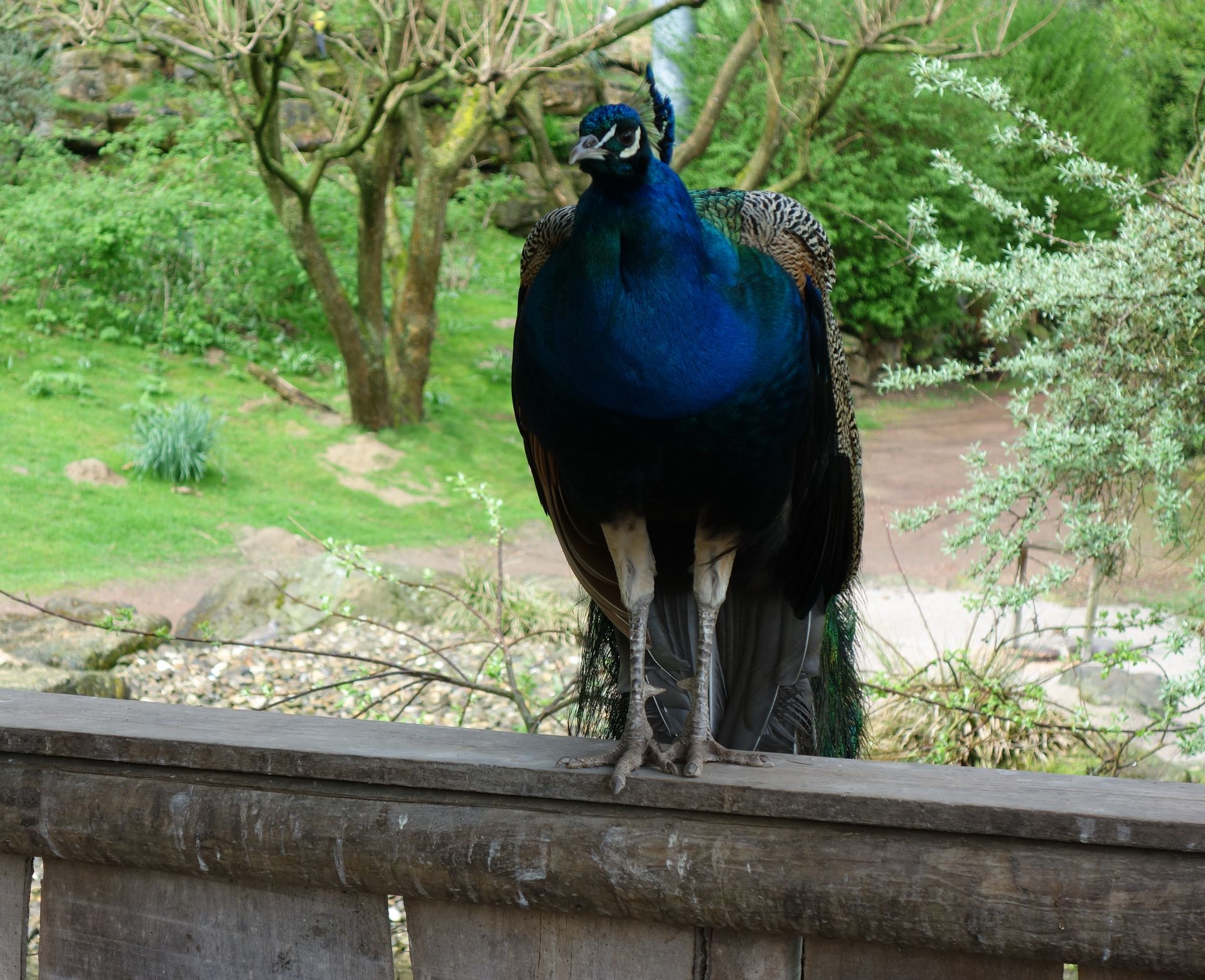 Zum Beispiel diesem Pfau, der seelenruhig auf dem Geländer der Hütte sitzen blieb.