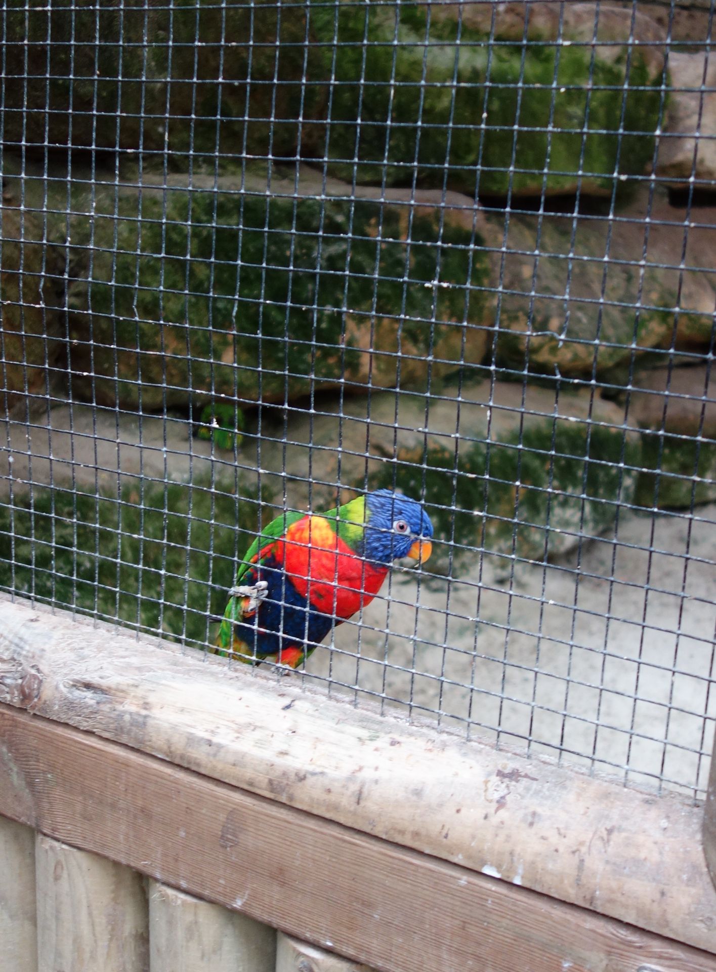 Der kleine Frechdachs war schneller als ich dachte. Die an den Gitterzaun gehaltene Kamera konnte ich nach dem Foto geradeso wegziehen, ehe er mir ins Objektiv picken konnte.