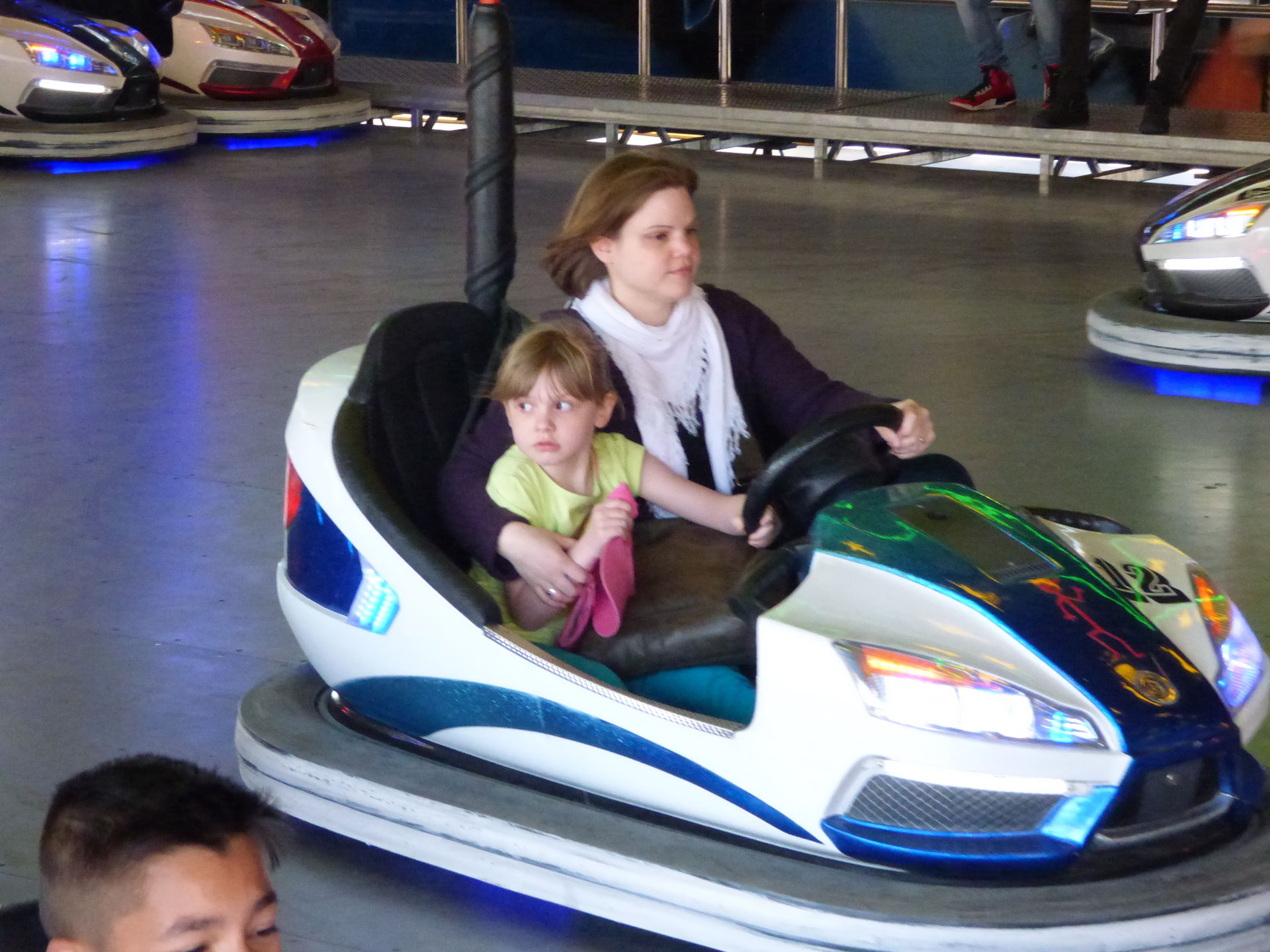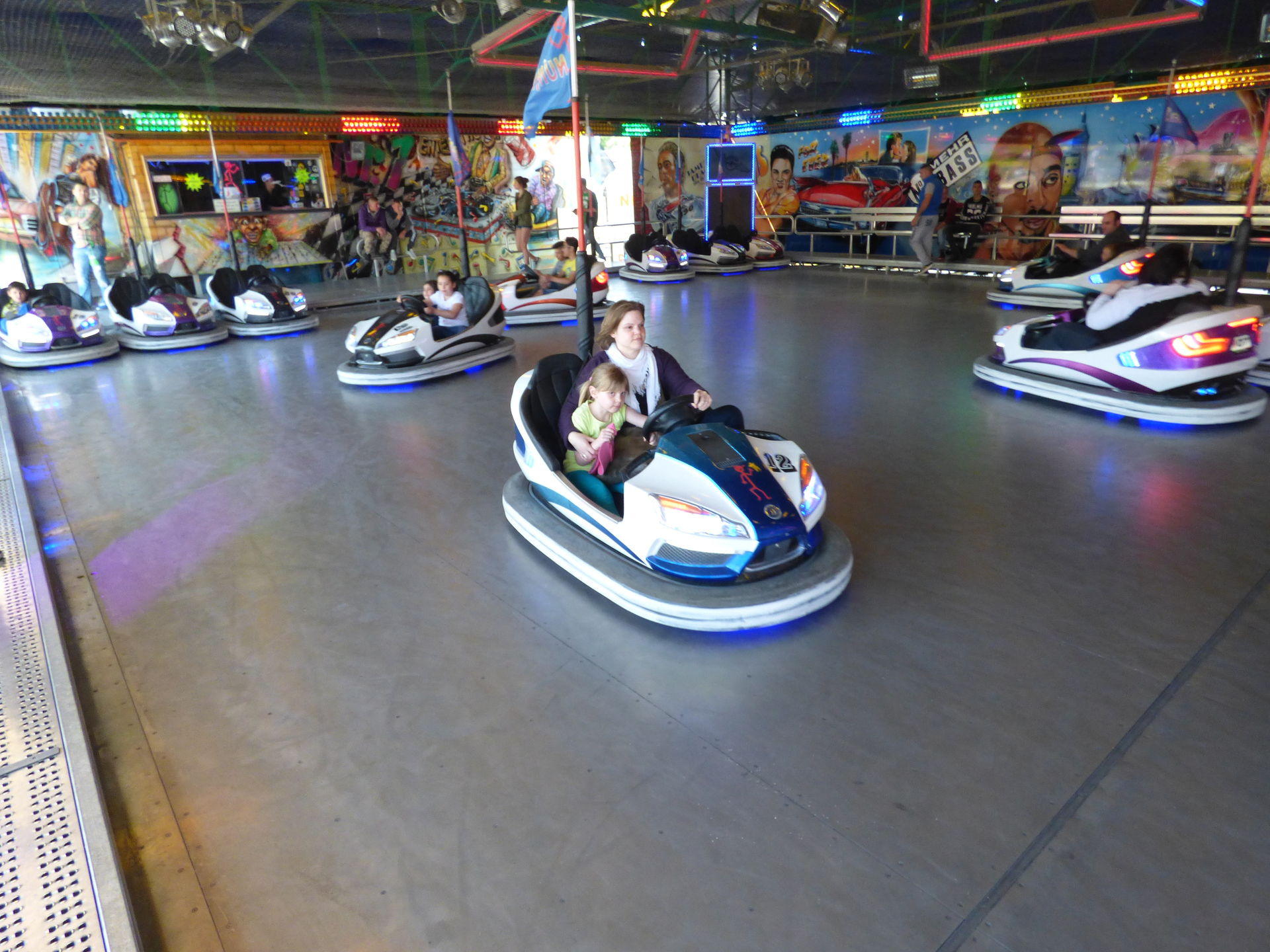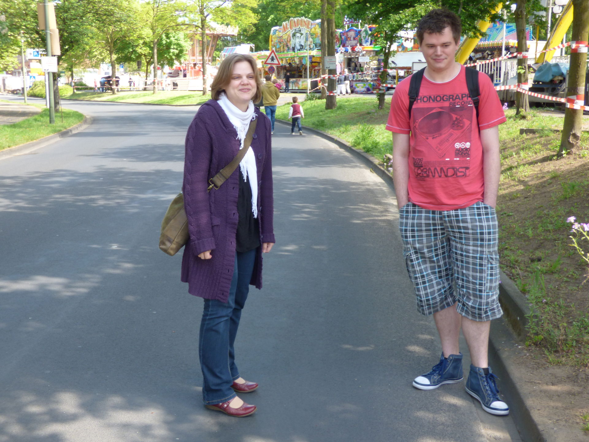 Autoscooter, auf dem Anke und Mia eine Runde drehten. Dann schlenderten wir bei herrlichstem Wetter gemütlich wieder zurück.