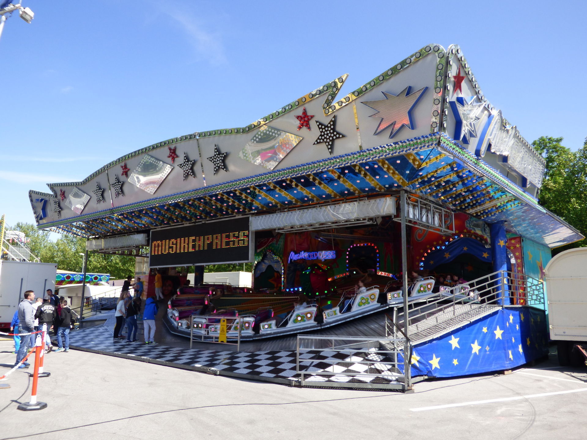 Unsere erste Station, mittlerweile schon Tradition seit vielen Jahren am Vatertag, war die Himmelfahrtskirmes im beschaulichen Lünen. Wir kamen um 11:30 direkt auf dem Parkplatz hinter dem Riesenrad an. Die Sonne strahlte uns bereits entgegen und es sollte ein herrlicher Kirmestag werden.