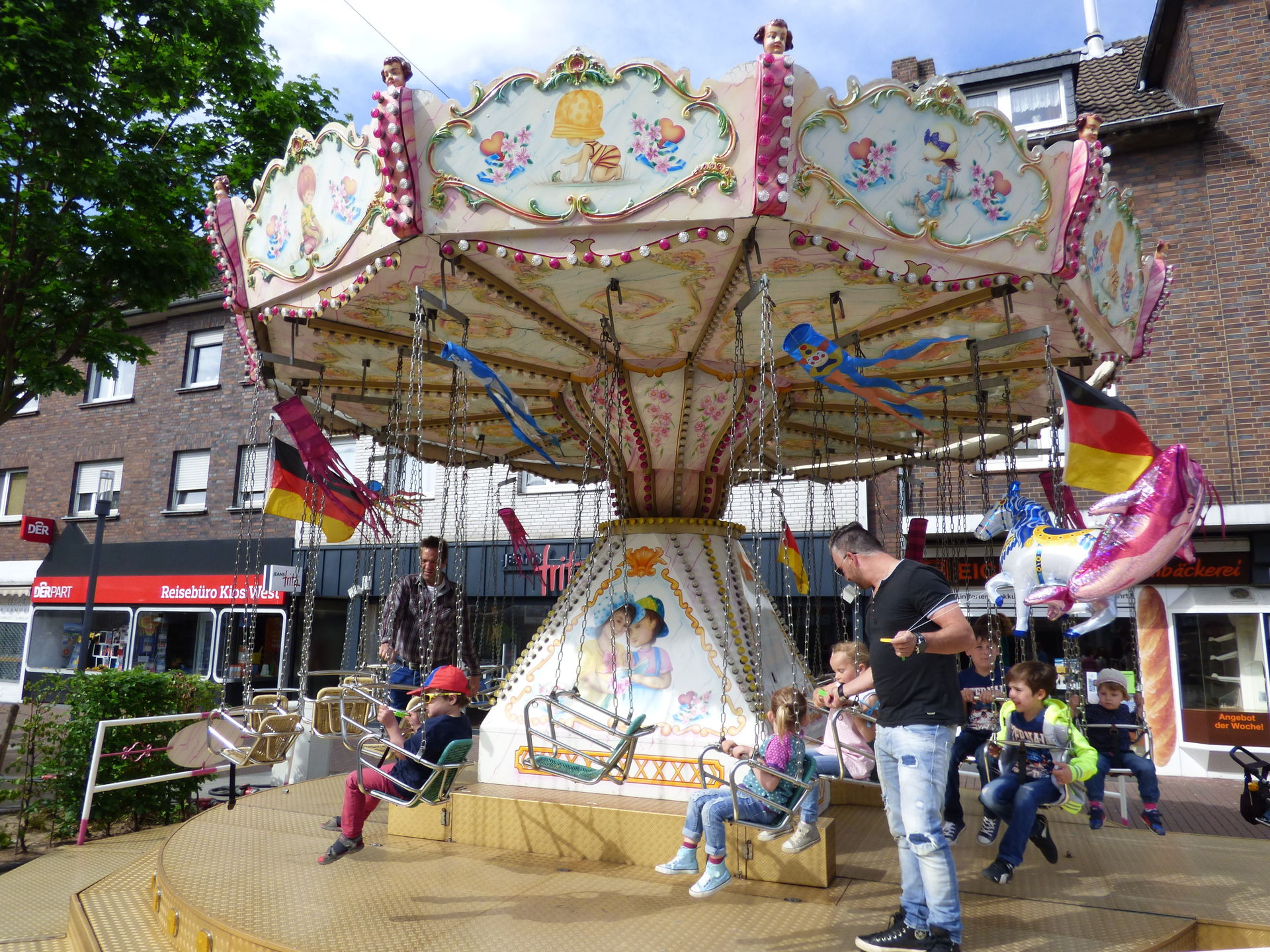 Für Mia gab es eine Runde auf dem kleinen Kettenflieger und dann waren wir auch schon am ersten Ende der Kirmes angelangt. Hier baute die