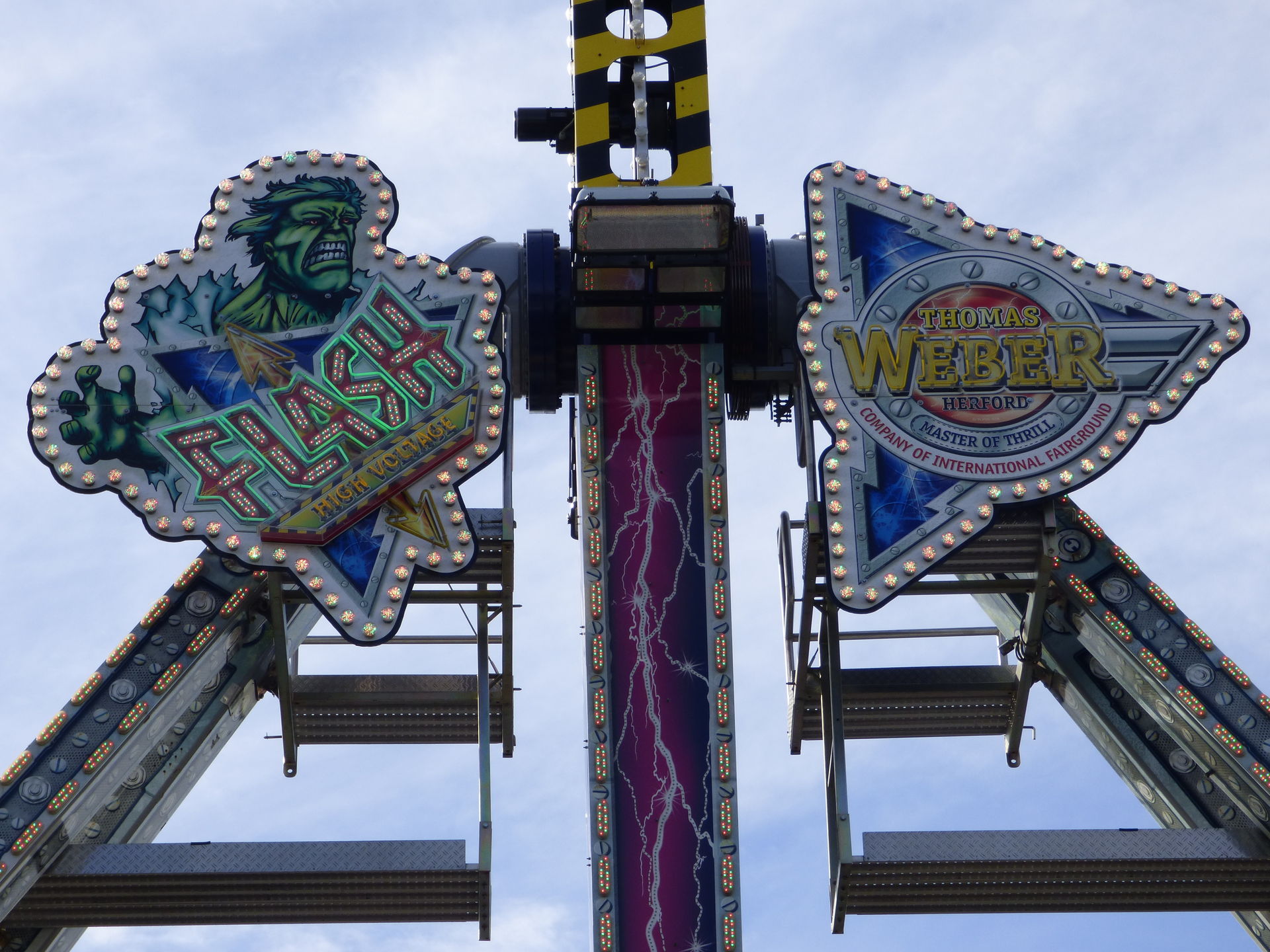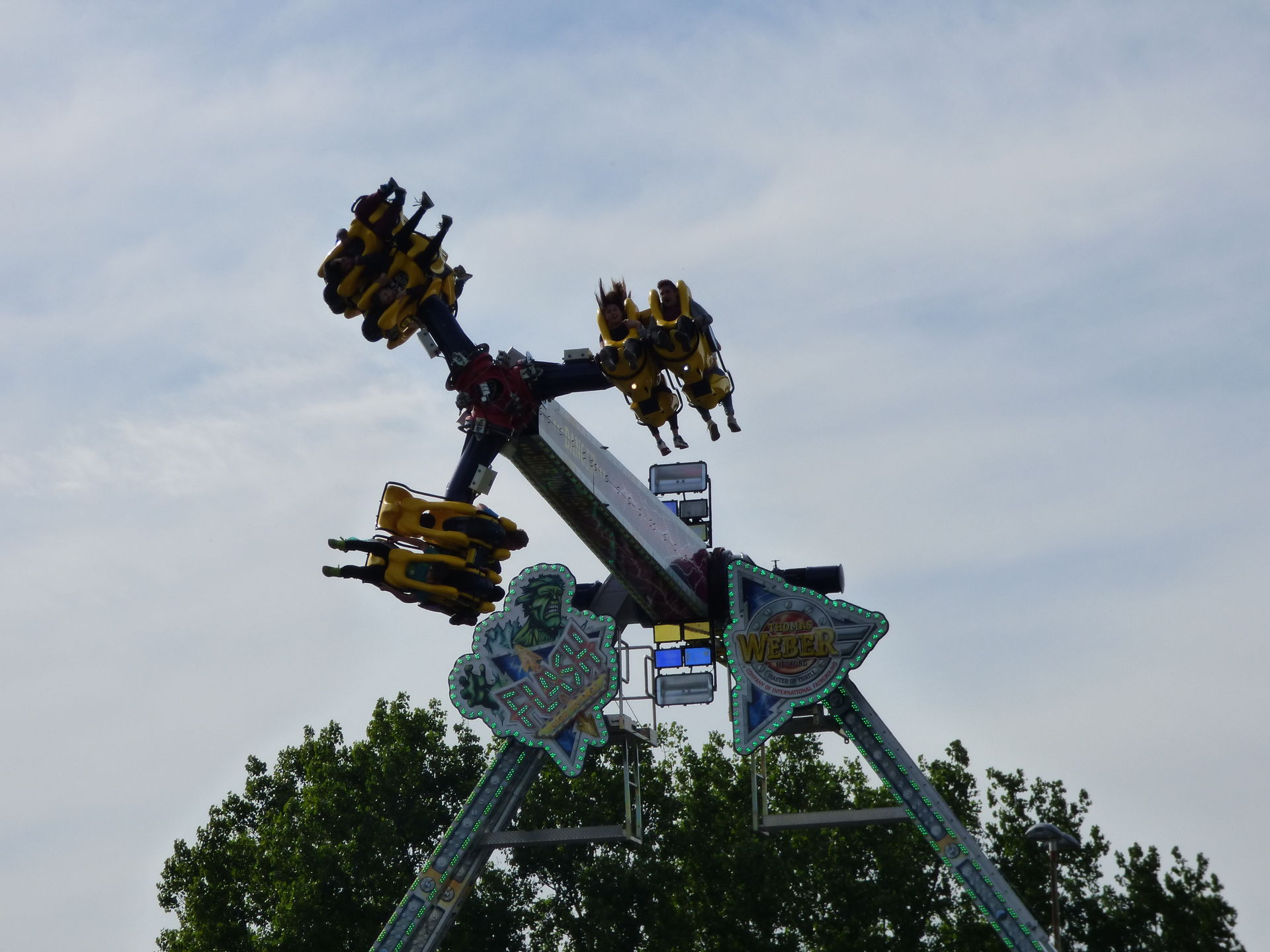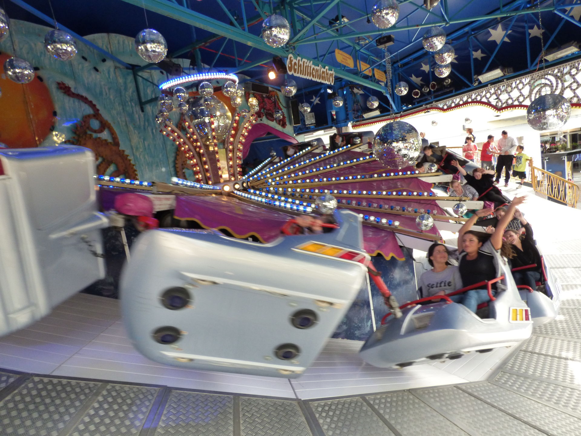 Love Express. Baut der seinen Schriftzug oben drüber eigentlich überhaupt nicht mehr auf? Oder hat der das Ding geschrottet? Fällt halt auf, dass auf den gesamten letzten Plätzen wo ich das Ding gesehen habe, der Schriftzug oben nicht montiert wurde. Oder wird der gerade LED-technisch überarbeitet? Eine Frage für unsere Kirmesexperten.