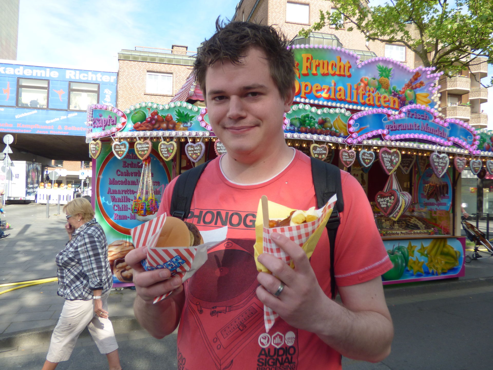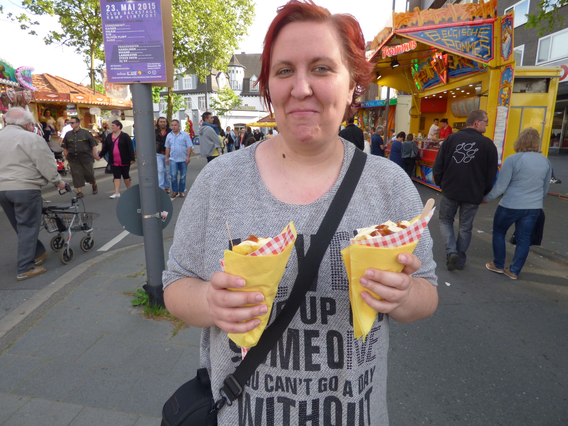 Nachdem wir uns am Flash satt gesehen hatten kam dann bei einigen der große Hunger. Also erstmal lecker was essen bevor die Kirmes Reise weitergeht.