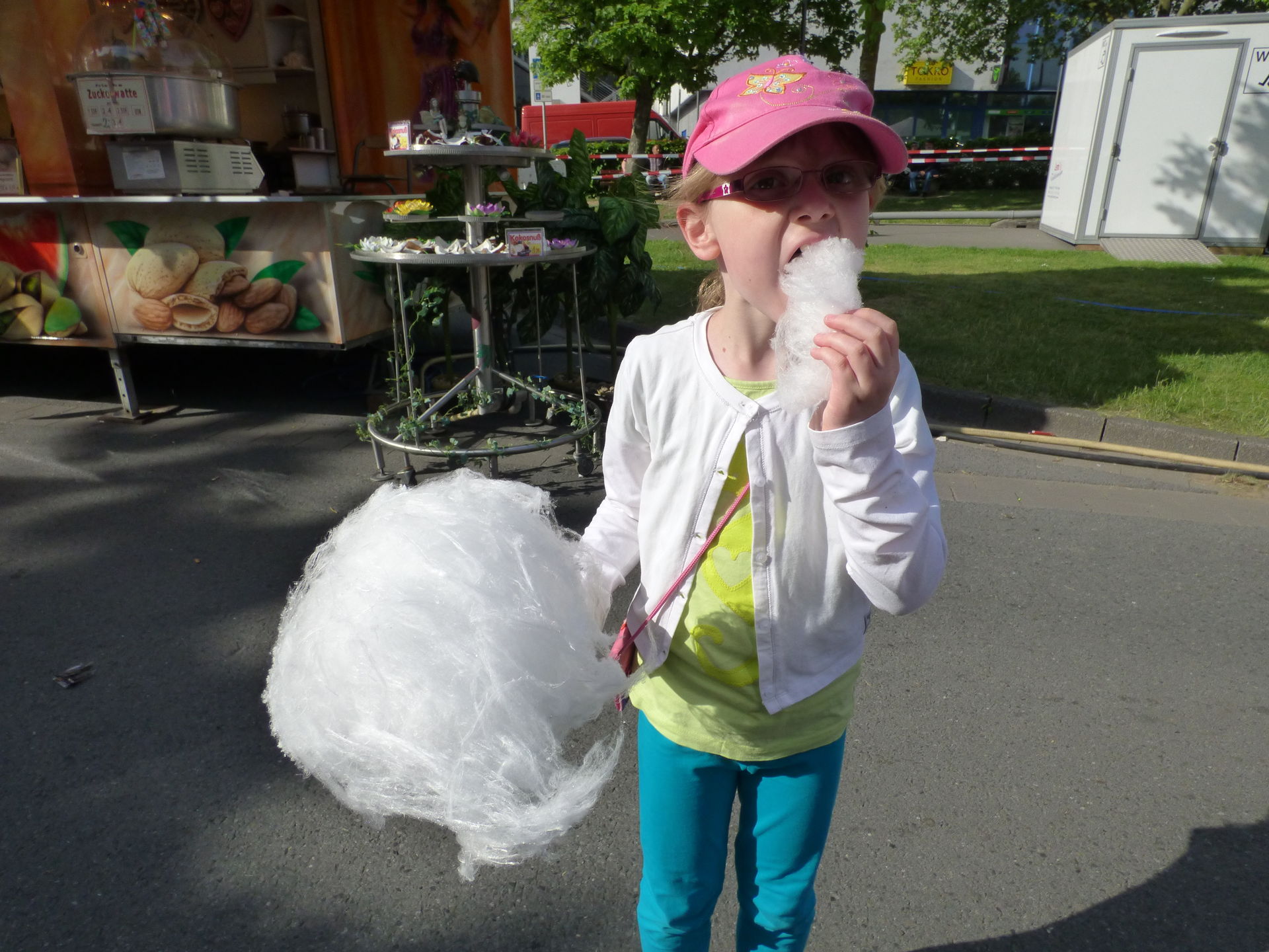 Für Mia gab es, wie schon auf den beiden Plätzen vorher, eine ganze Menge zu entdecken und zu fahren. Als nächstes gab es mal wieder eine Kinderschleife, die sie natürlich sofort wieder magisch anzog. Anschließend ging es schnurstracks auf die andere Seite zum Fadenziehen.