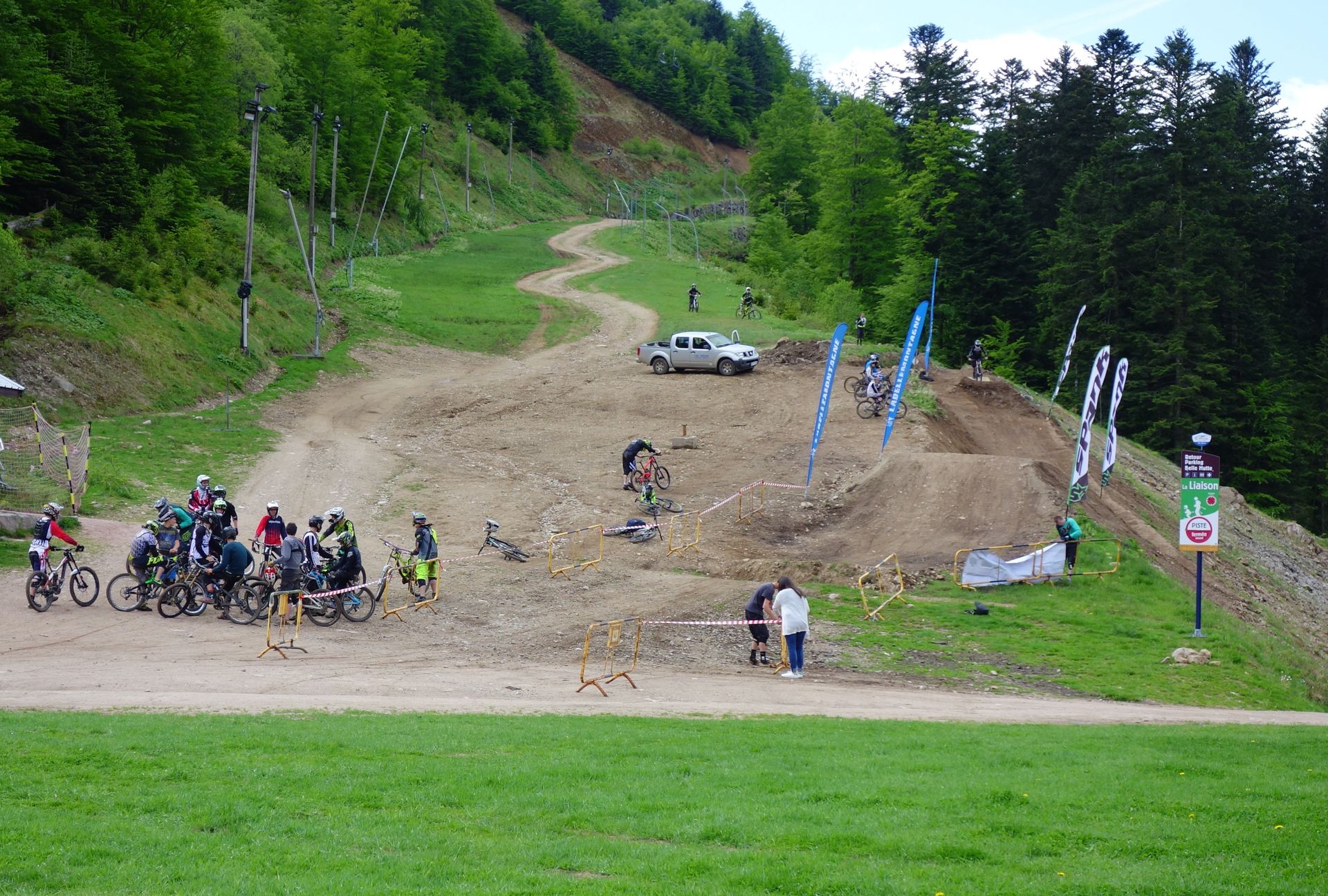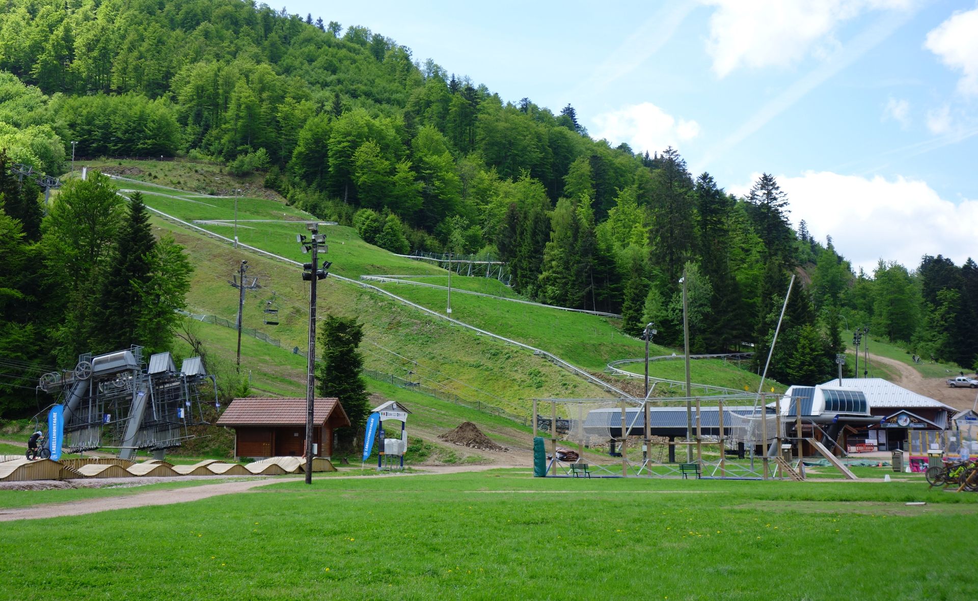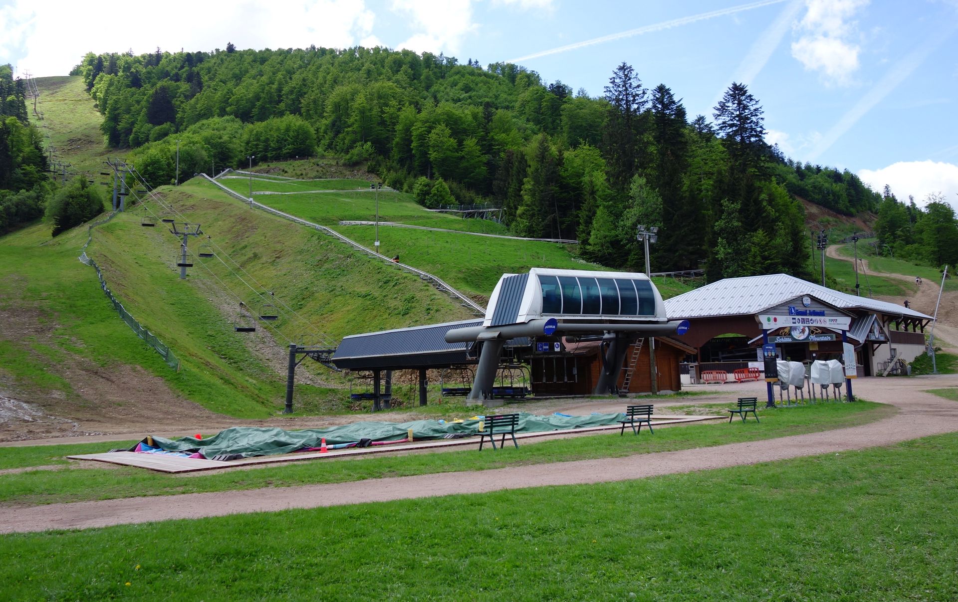 Nach etwas weniger als zwei Stunden Fahrt erreichten wir gegen Mittag unser zweites Ziel an diesem 17. Mai. Mitten in den Vogesen finden sich unzählige Skigebiete. Um auch im Sommer Touristen anlocken zu können, bieten viele davon neben den diversen Skiliften Downhill-Strecken für Mountainbiker oder Sommerrodelbahnen. So auch das Skigebiet La Bresse - Hohneck, das nach dem Ausfall zuvor nun also unseren ersten fahrenden Alpine Coaster zu bieten hatte.