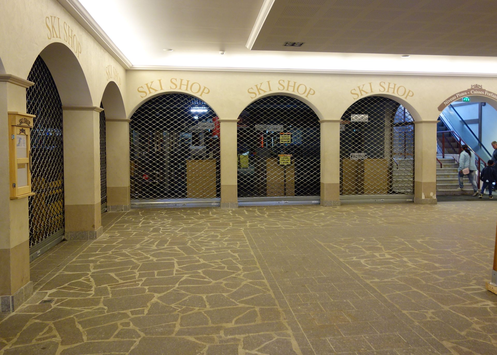 Der Ski Shop neben den Toiletten im Keller des Gebäudes war logischerweise geschlossen.