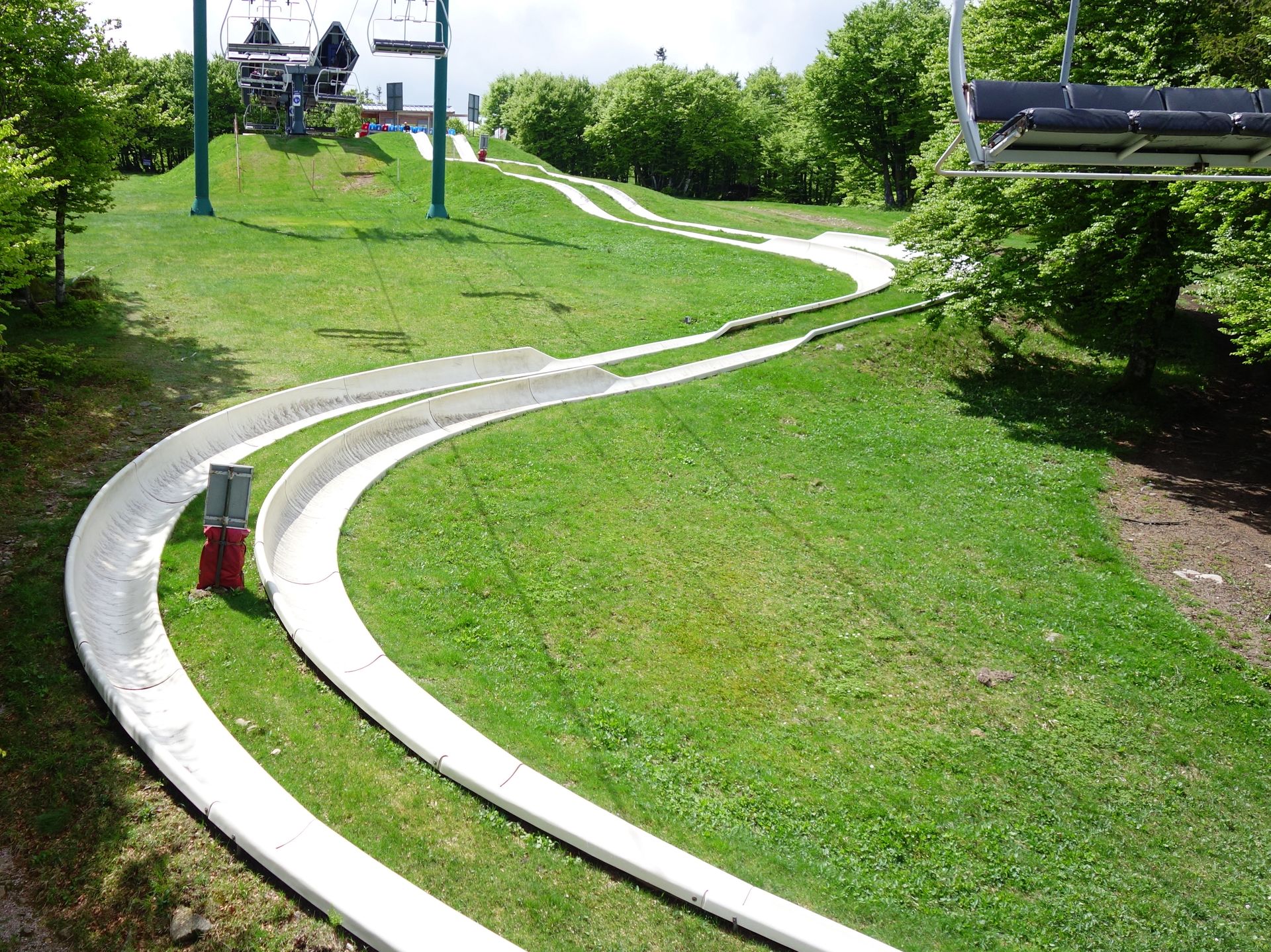 Ein kompletter Umlauf (also Auffahrt mit dem Sessellift und Abfahrt mit der Rodelbahn) kostet stolze 6,50¤. Wer möchte, kann natürlich auch zu Fuß nach oben wandern und nur ein Ticket für die Abfahrt kaufen. Wir gönnten uns aber zweimal das Komplettpaket, schließlich wollten wir ja beide Bahnen testen.