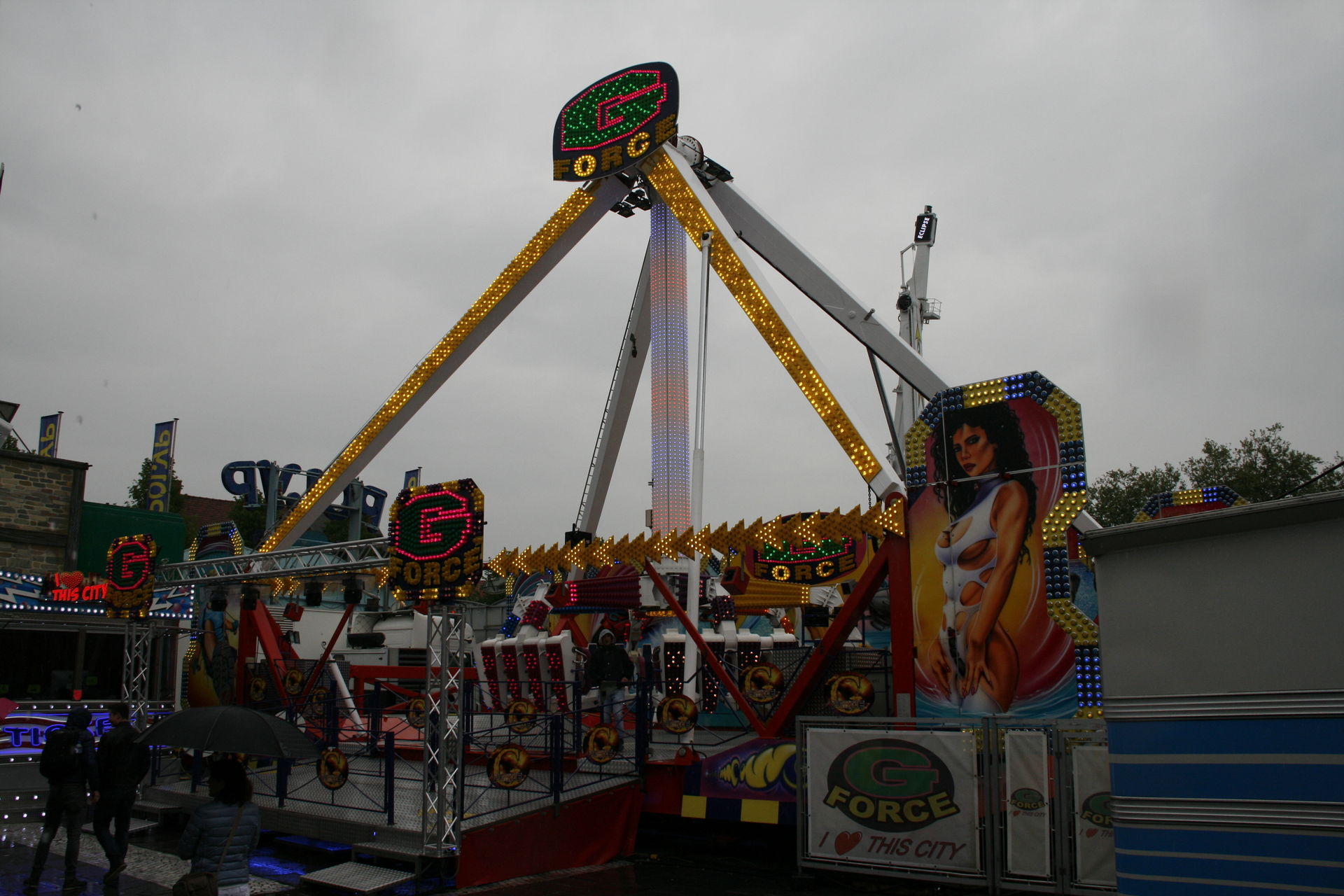 Hauptgrund des Besuchs: Das Unikat Popcorn Party von van Herck. Macht Spaß, fährt sich wie ein Break Dance mit 4er Gondeln.