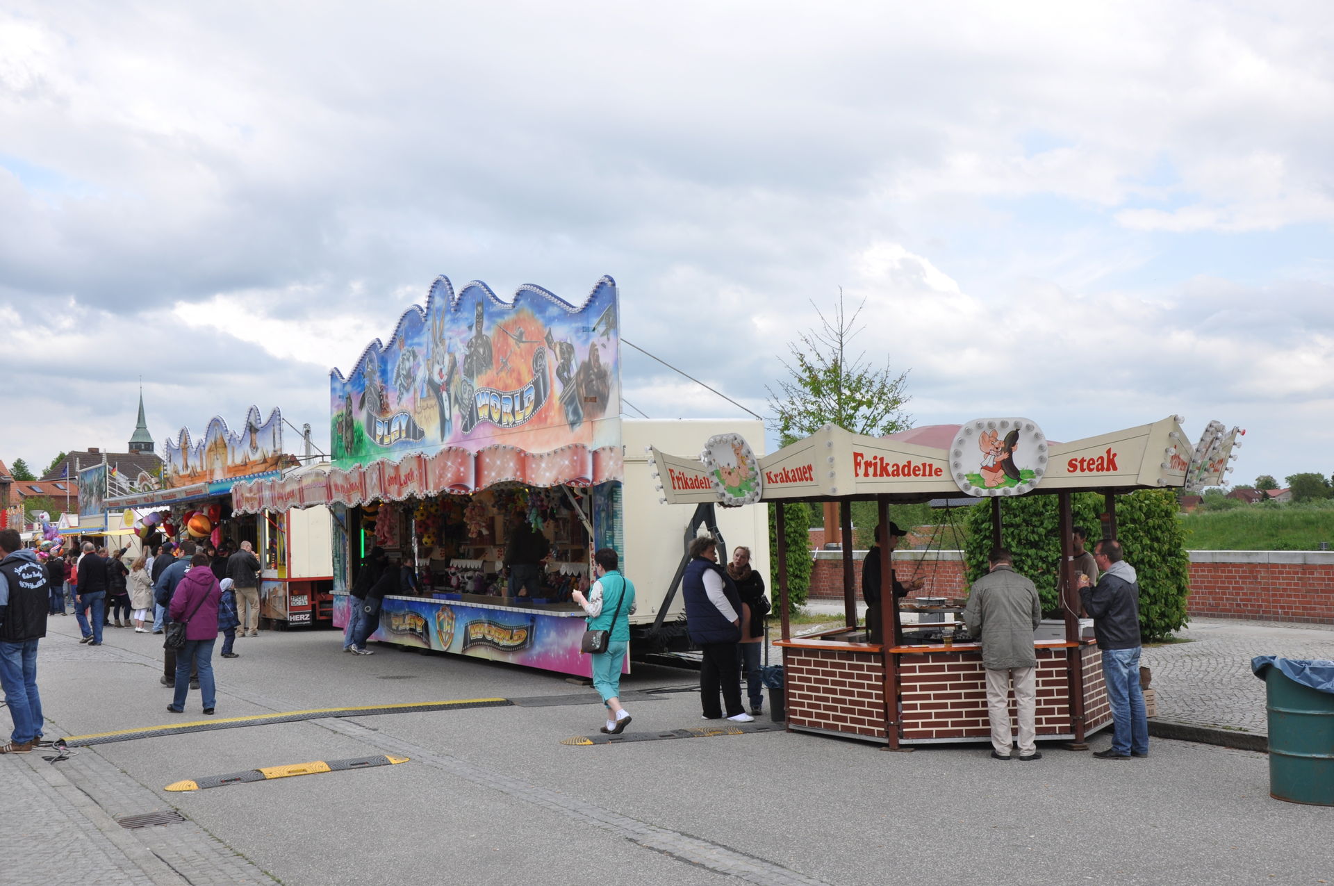 Das Pfingstfest fand direkt am Hafen statt. Auf dem Stadtplan oben links. Der Markt erstreckt sich über eine Länge von 150m bis 200m. Auf der linken Seite wechseln sich Reihengeschäfte und Essenstände ab. Auf der rechten Seite beginnt es mit der Kinderschleife „Rund um Hamburg“. Dann folgen auch hier Reihengeschäfte und Essenstände. Danach geht es mit den Fahrgeschäften weiter. Nach einem Kinderkarussel folgt der obligatorische Auto Scooter. Den Abschluss bilden der „Power Racer“ und ein Hochfahrgeschäft ohne Namen. Da ich mit den Kirmesfahrgeschäften nicht so bewandert bin, kann ich leider nicht sagen um welchen Typ es sich handelt. Am interessantesten fand ich den schon erwähnten „Power Racer“. Dieser wurde auch gut rekommandiert. Hierbei scheint es sich um ein älteres Modell zu handeln.