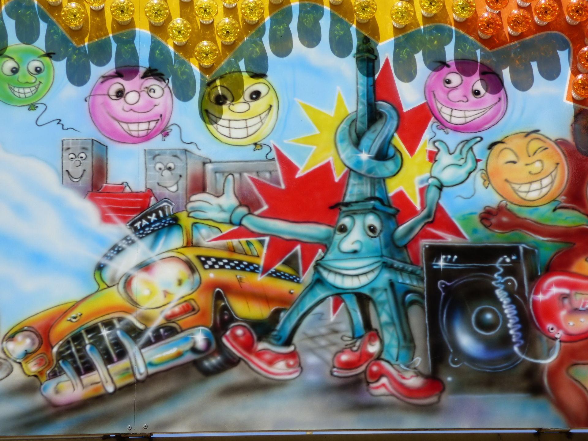 Am Ende stand dann noch eine sehr kuriose Eigenkonstruktion eines Baggerautomaten mit dem Namen "Happy Crane". Da musste ich einfach 50 Cent opfern. Ich kann diese Kontruktion gar nicht richtig erklären. Die Bagger waren irgendwelche merkwürdigen zusammengezimmerten Dinger, die über einen Seilzug gesteuert wurden und bei jeder Bewegung volle Kanne hin und her schwingen. Man hatte überhaupt keine Chance, irgendeinen Gewinn anzupeilen weil man nur 20 Sekunden Zeit hatte und am Ende dieser Zeit pendelte das Ding immer noch hin und her. Ich war so beschäftigt mit Lachen und Wundern dass ich leider vergessen habe, davon mal ein Video zu machen.