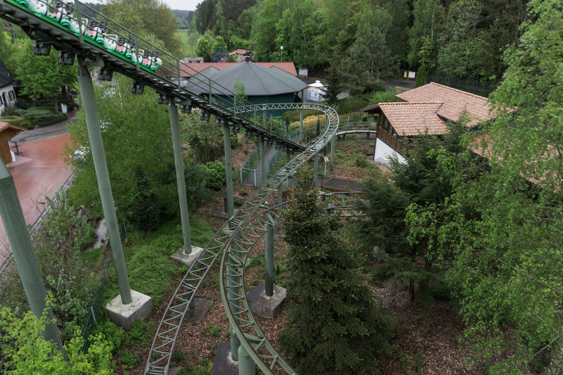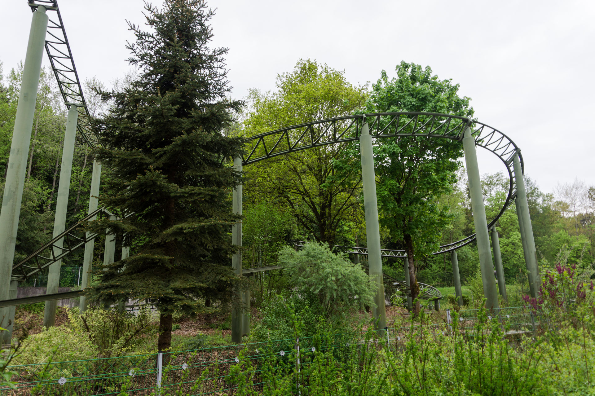 Erneut an der Zivilisation angeschlossen konnten wir die ersten Testfahrten vom Freischütz beobachten, es schien aber nicht so, dass die Anlage bald eröffnen würde, so dass es parallel zur Strecke den Berg zu erklommen galt, denn am oberen Ende dieses Weges wartete eine umgebaute Turmkonstruktion darauf dessen Inneren zu erkunden.
