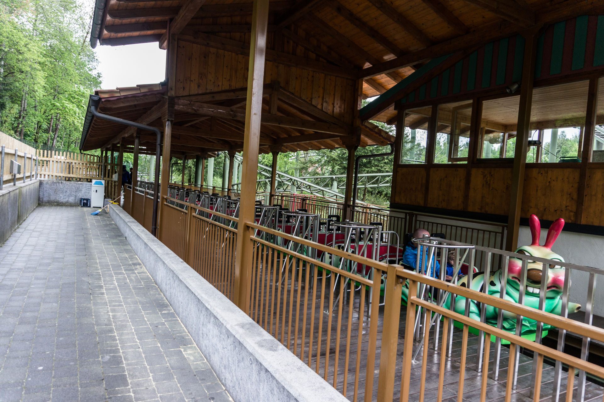 Die Achterbahn ist eine sehr ordentliche Anlage und macht durch die ausgeprägten Kräfte ordentlich was her, wäre da nicht das total unfähige Personal. Es ist mir ein großes Rätsel warum der Zug trotz überdachter Station komplett befeuchtet war und das Personal, am anderen Ende der Station stehend damit bloß niemand merkt das sie da sind, nicht einmal auf die Idee kam den Zug, ehe die ersten Gäste minutenlang auf die Fahrt warten, einfach zu reinigen, wie es lustiger Weise selbst bei Karlos Taxi im dänischen Djurs Sommerland von einem älteren Herrn gemacht wurde. Aber diese Kompetenz stellte sich im Laufe des Tages nicht nur hier als fehlend heraus.