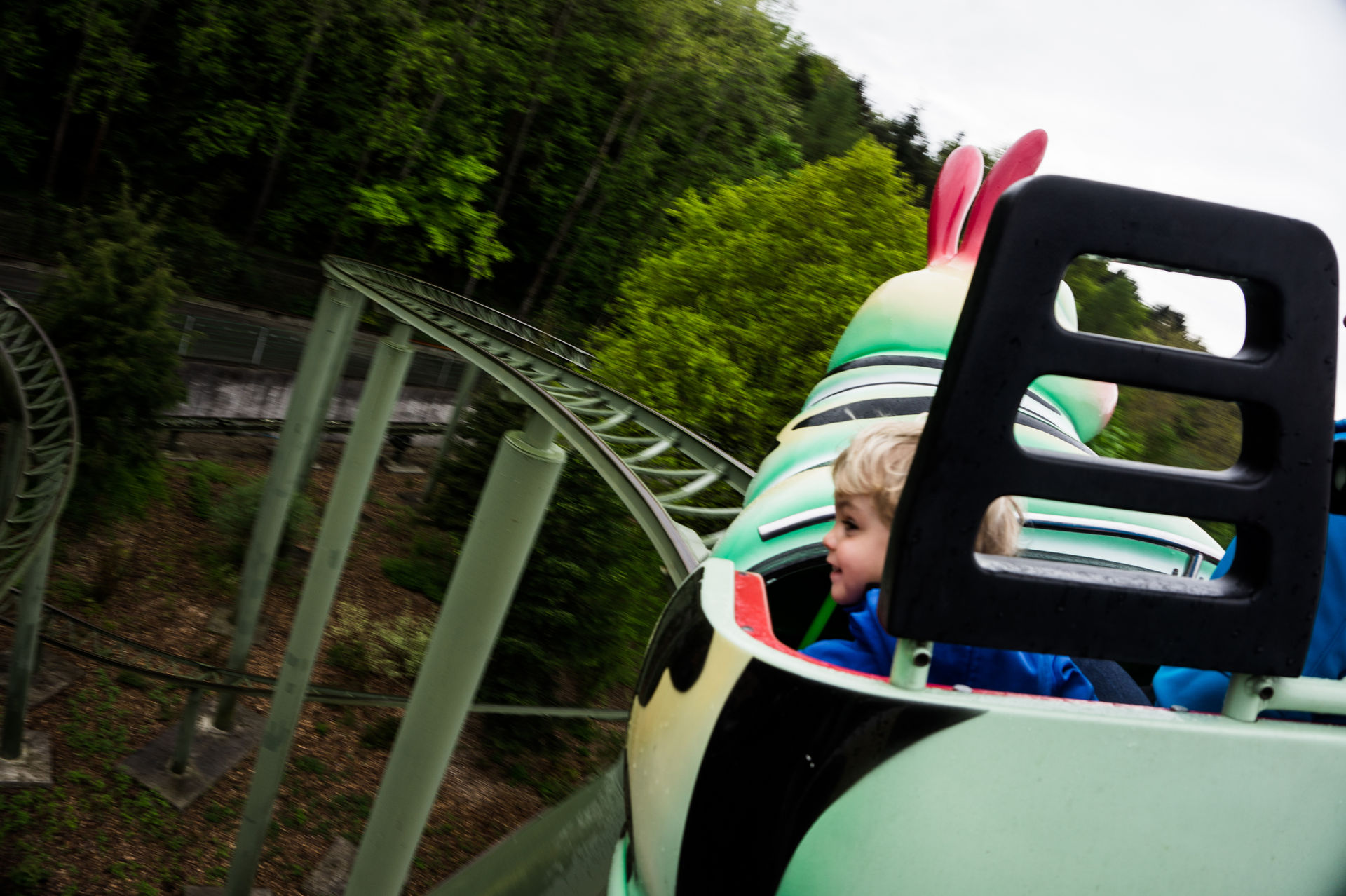 Hier in der Ecke befindet sich auch der Eingang zum Wildpark, wahrscheinlich der einzige Grund warum es sich lohnt den weiten Weg bis hierher überhaupt zu wagen. Freunde von Sommerrodelbahnen mögen das anders sehen, aber Aufpreis pflichtige Fahrgeschäfte in einem Freizeitpark, wo selbst die Heege Fahrgeschäfte frei sind, grenzen an Frechheit, darüber hinaus steht im oberen Parkbereich ja noch eine weitere Anlage. Da uns die Steigung am Olymp der Tiere zu steil erschien ging es den gleichen Weg wieder zurück.