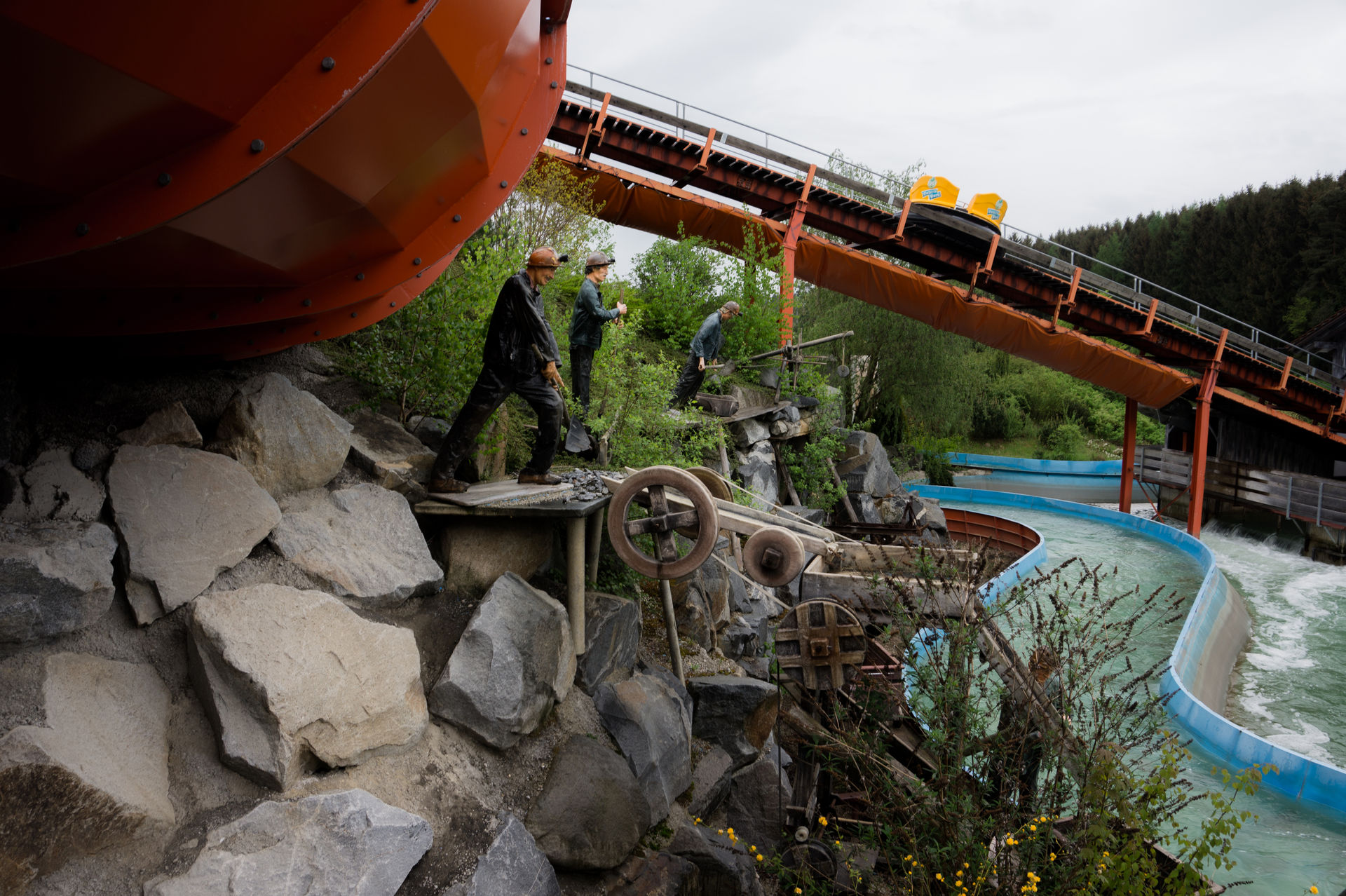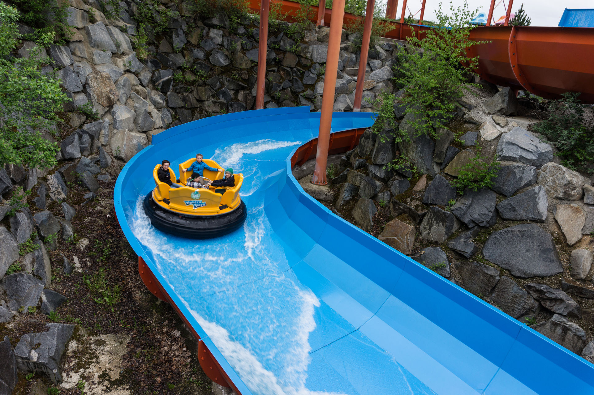 Unterhalb dieser Attraktionen zeigt sich eines der Highlights des Parks der ABC Rides Rapid River Splash Wildwasser-Rafting. Auf den ersten Blick scheint diese wunderschön gestaltete Anlage sich kaum von den kleineren Raftinganlagen des Herstellers zu unterscheiden, jedoch wurde hier auf eine kompakte Bauweise zu Gunsten eines Strömungskanals vor dem Lifthügels, inklusive Wasserfall, nicht verzichtet. Der Lift zeigt sich hier in einer sehr einfachen Ausführung, was leider ein wenig Schade ist, denn der 45° Lift der Anlage Lost World aus dem Erse Park Uetze ist durchaus ein kleines Highlight, wie auch die Vertikalversionen. Oben angekommen nimmt das Boot langsam aber sicher an Fahrt auf und spätestens nach der ersten Kurvenkombination dreht man sich wie verrückt. Dazu kommt ein durchaus ausgeprägtes Aufschwingen der Boote, so dass die Talfahrt durchaus sehr unterhaltsam ist. Am Ende der Rutschpartie wartet der obligatorische Splash auf die Fahrgäste, wie bei den Anlagen des Herstellers jedoch typisch tendiert der Nässegrad der Fahrt gegen null.